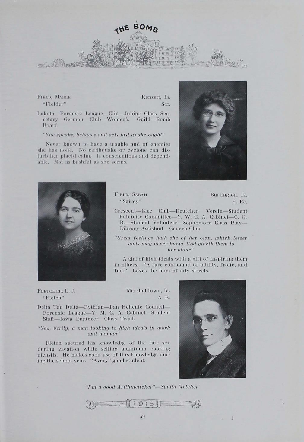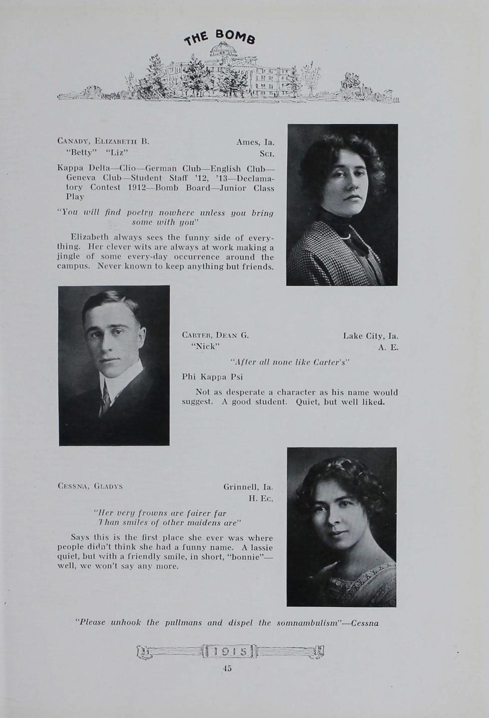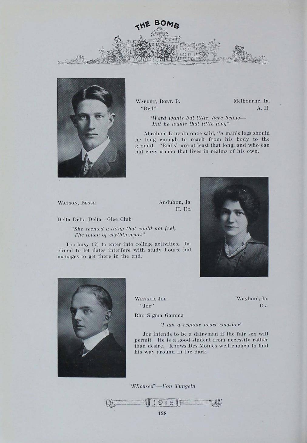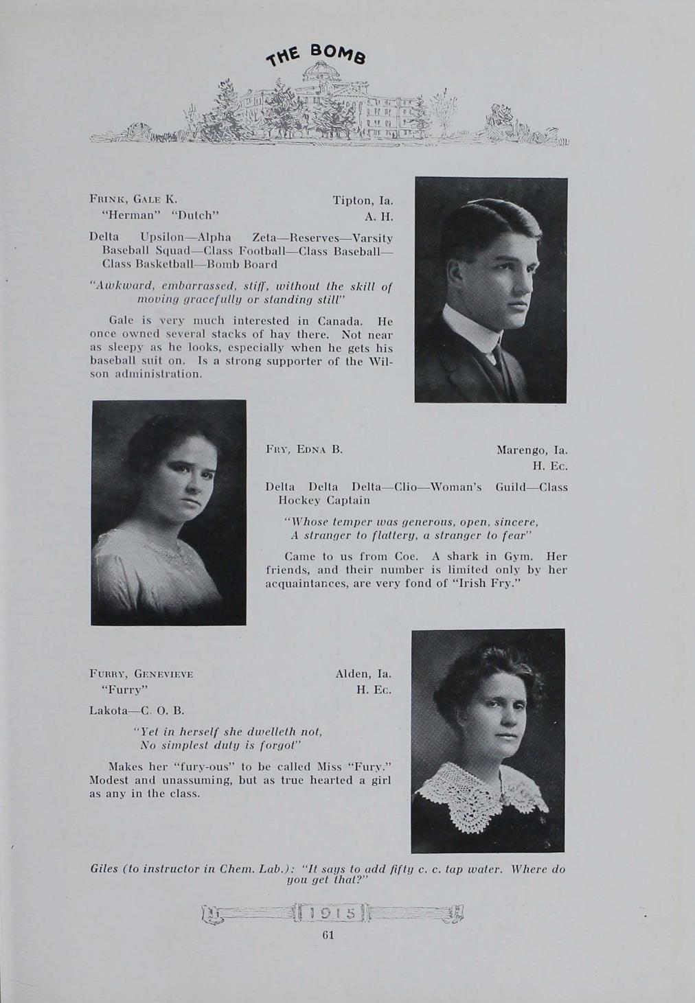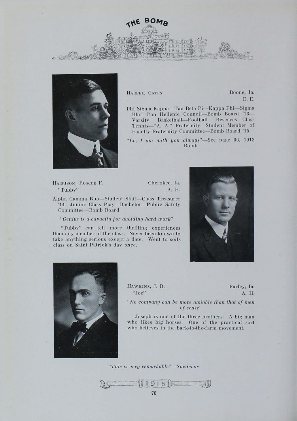 - "1915 Bomb", The Bomb (Iowa State) School Yearbooks, Iowa State University Library Digital Collections
