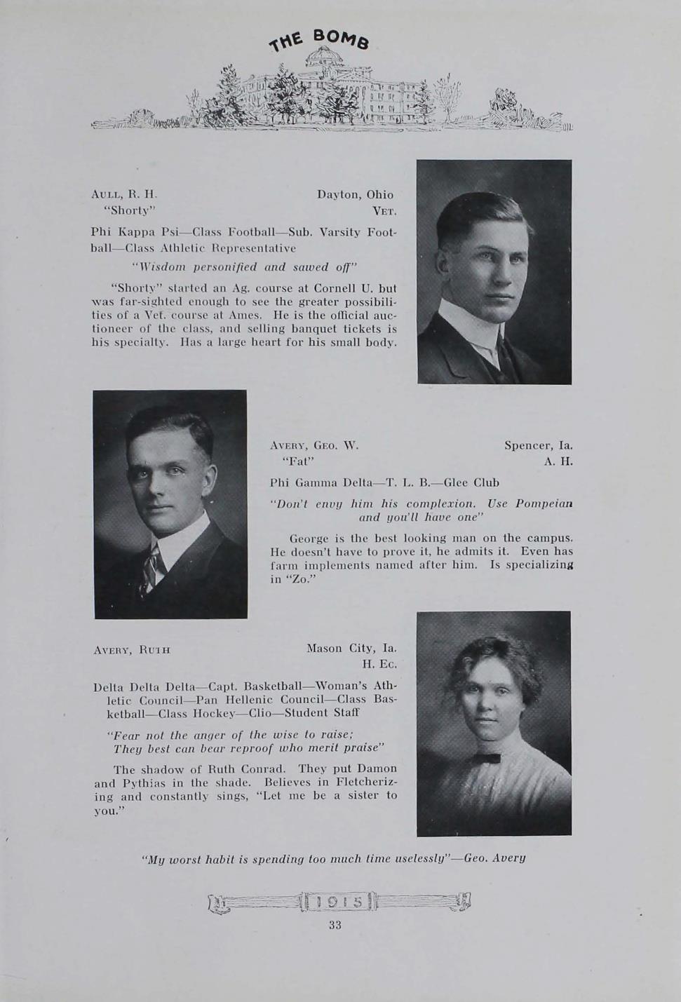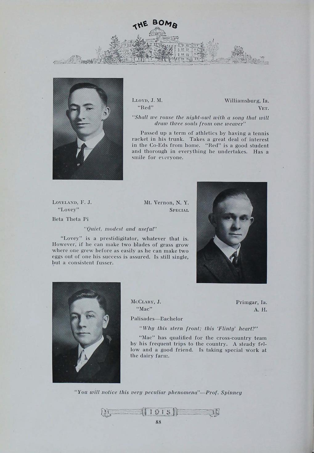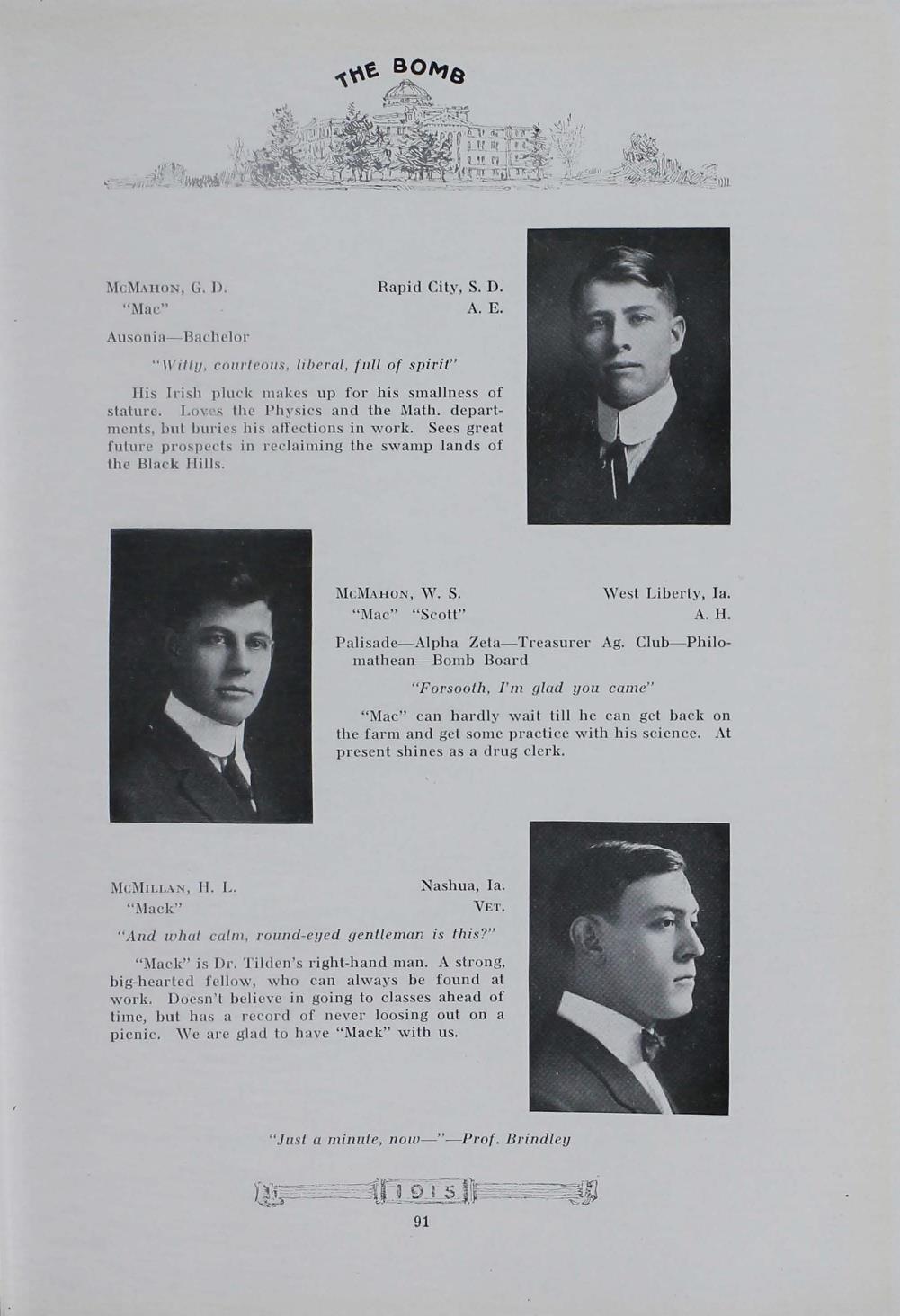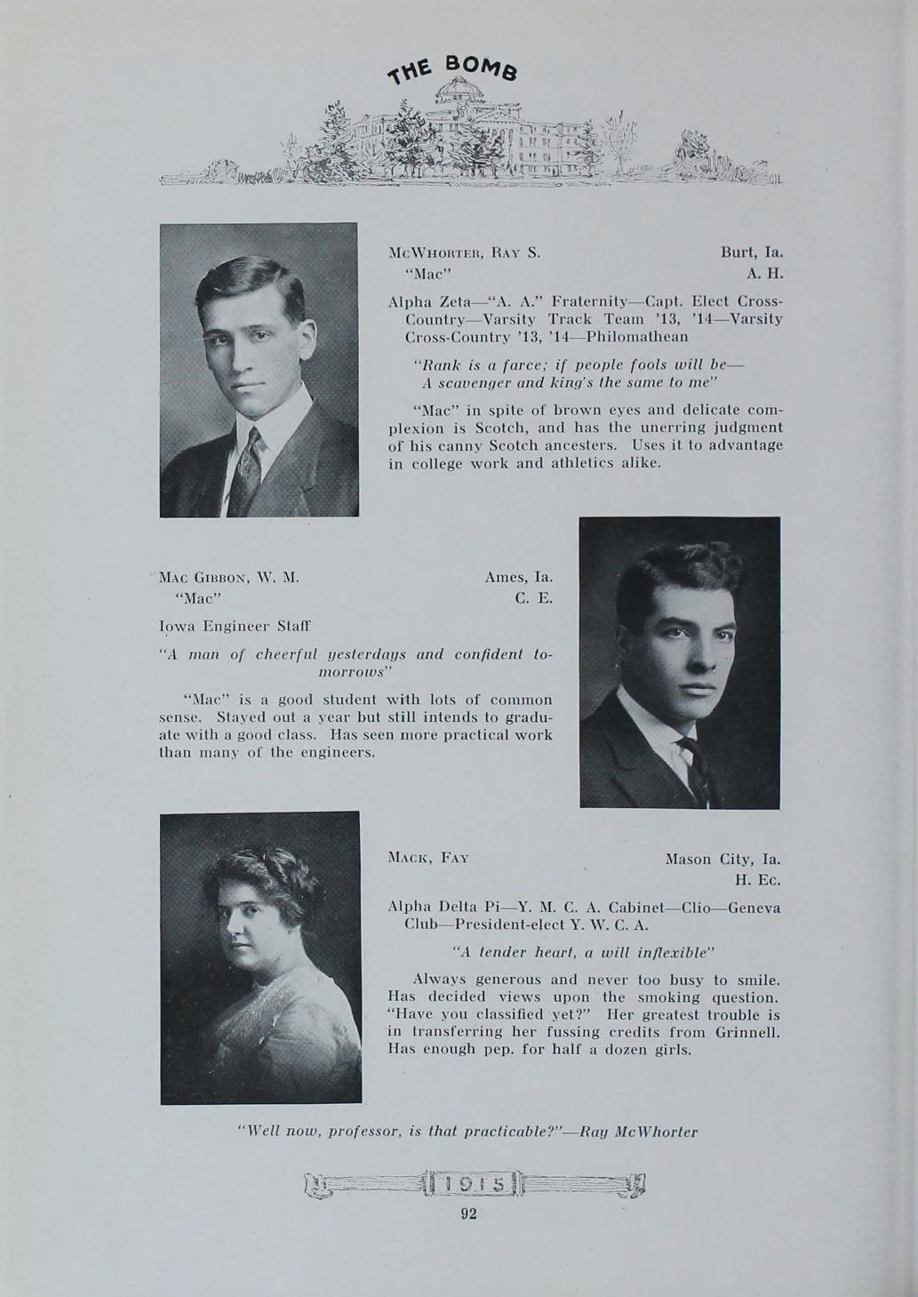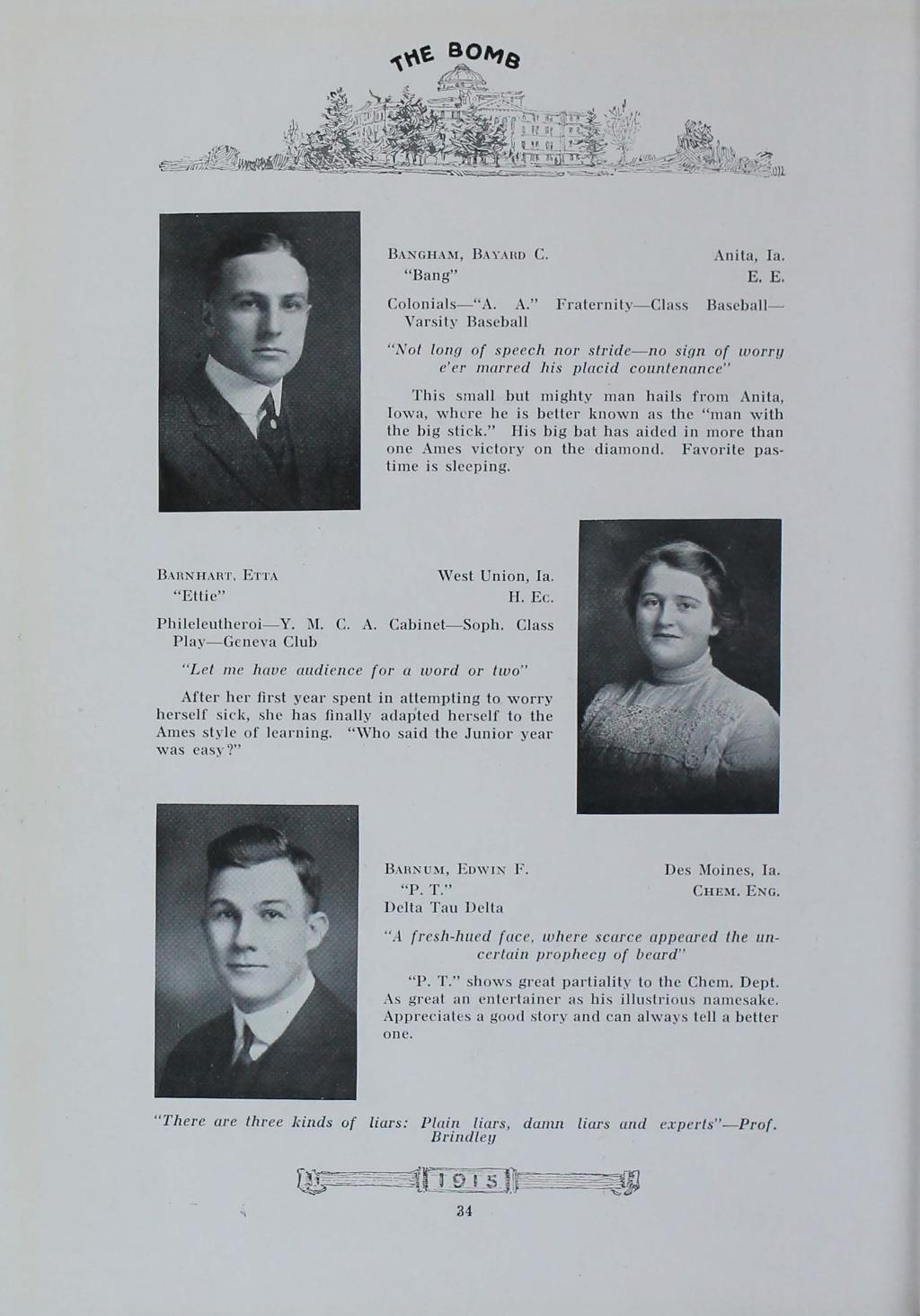 - "1915 Bomb", The Bomb (Iowa State) School Yearbooks, Iowa State University Library Digital Collections
