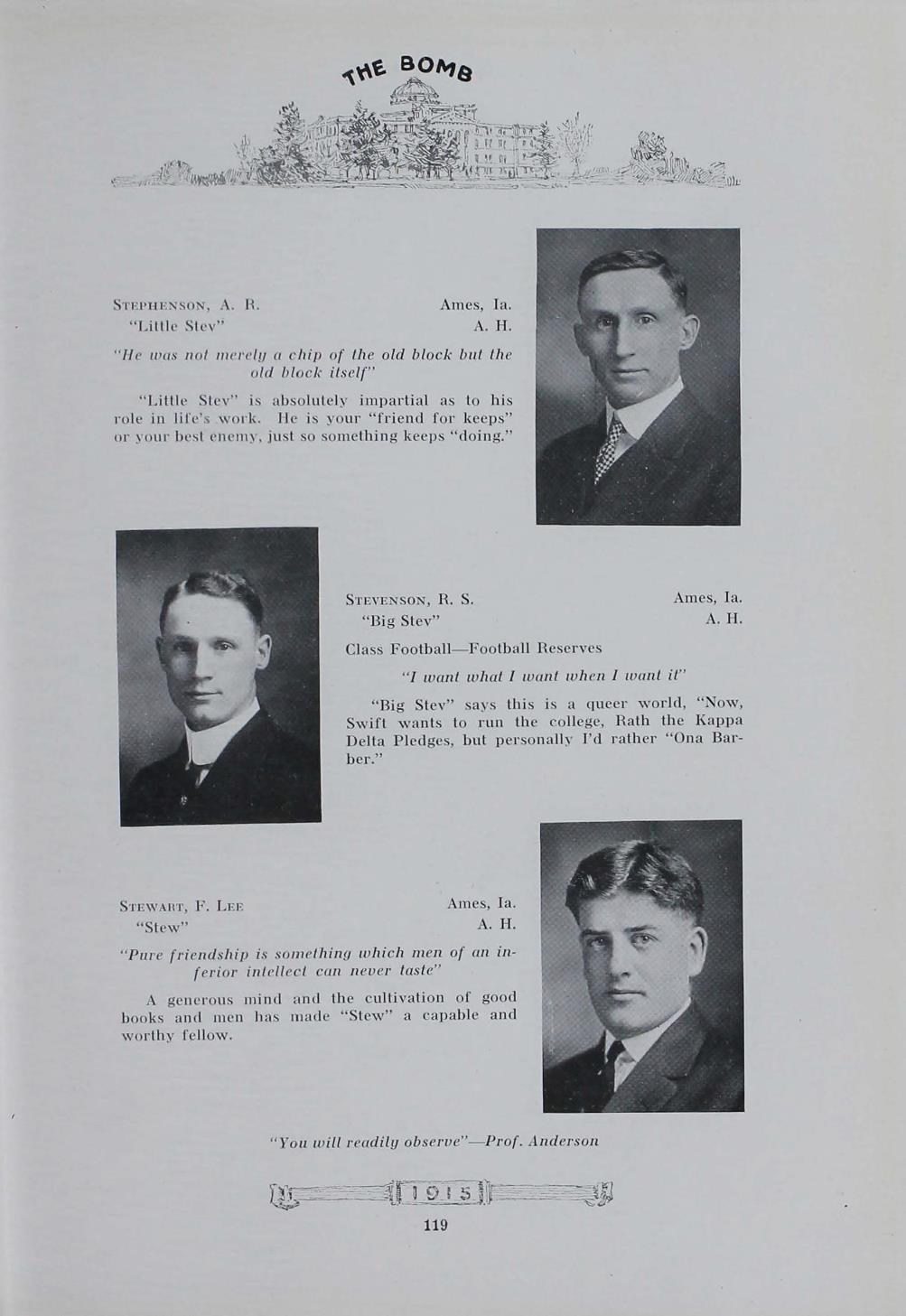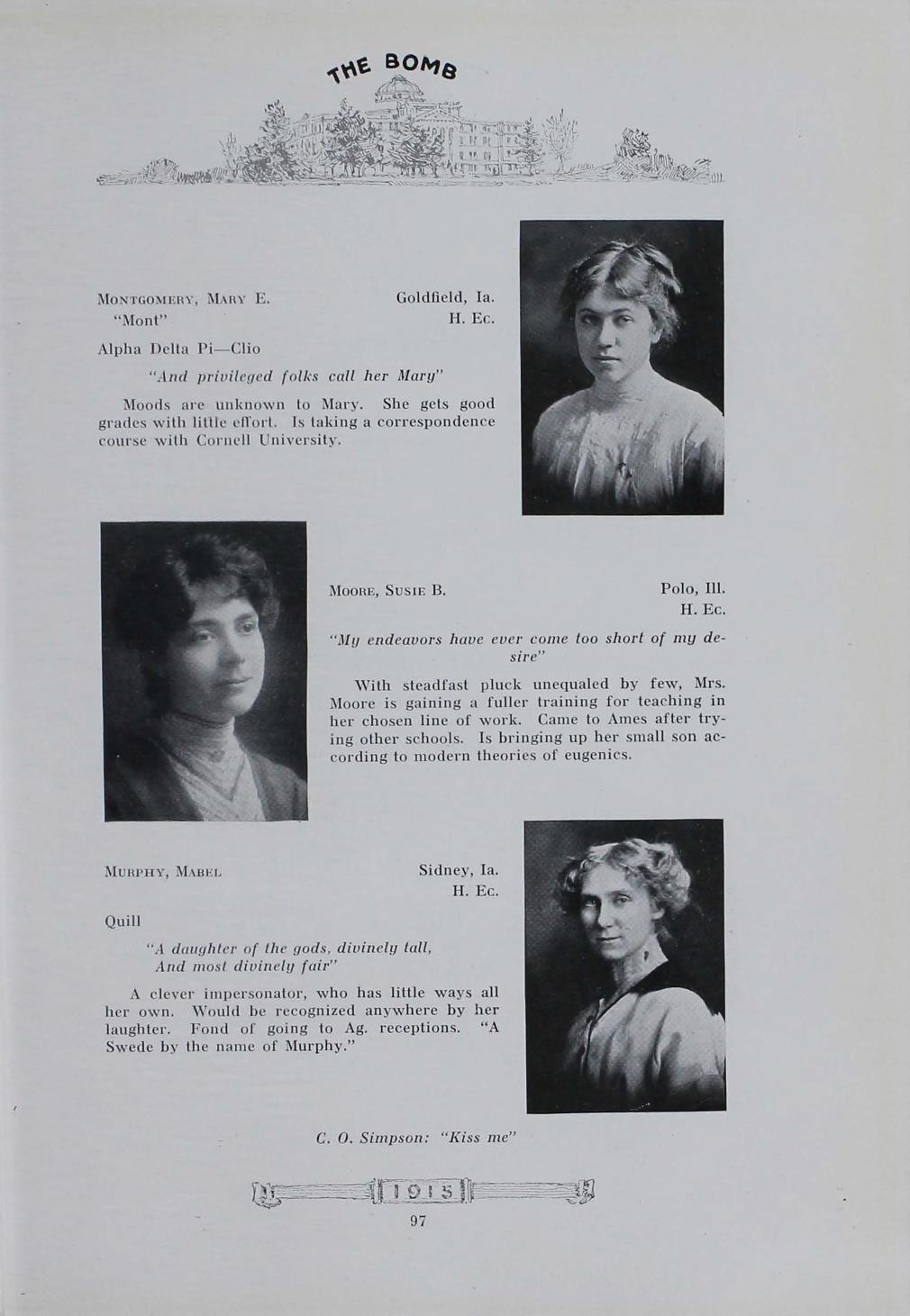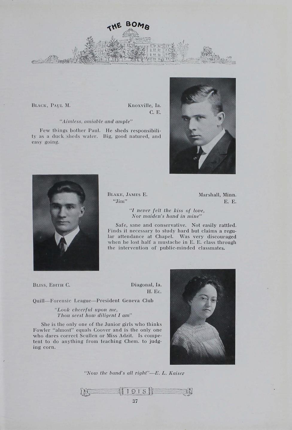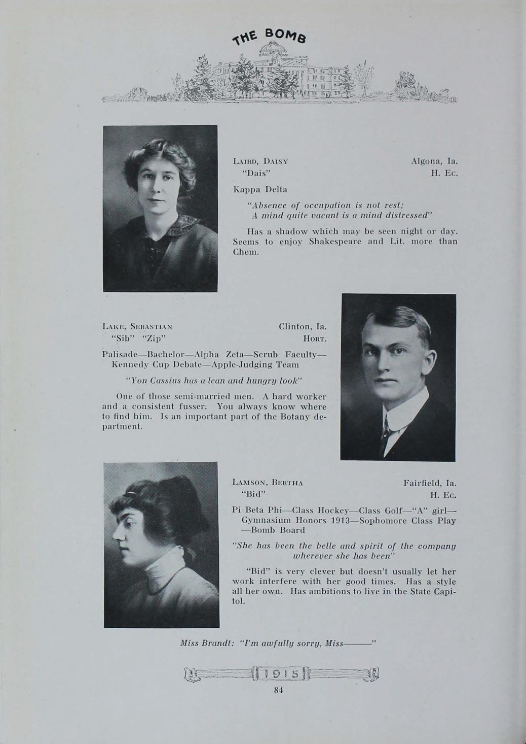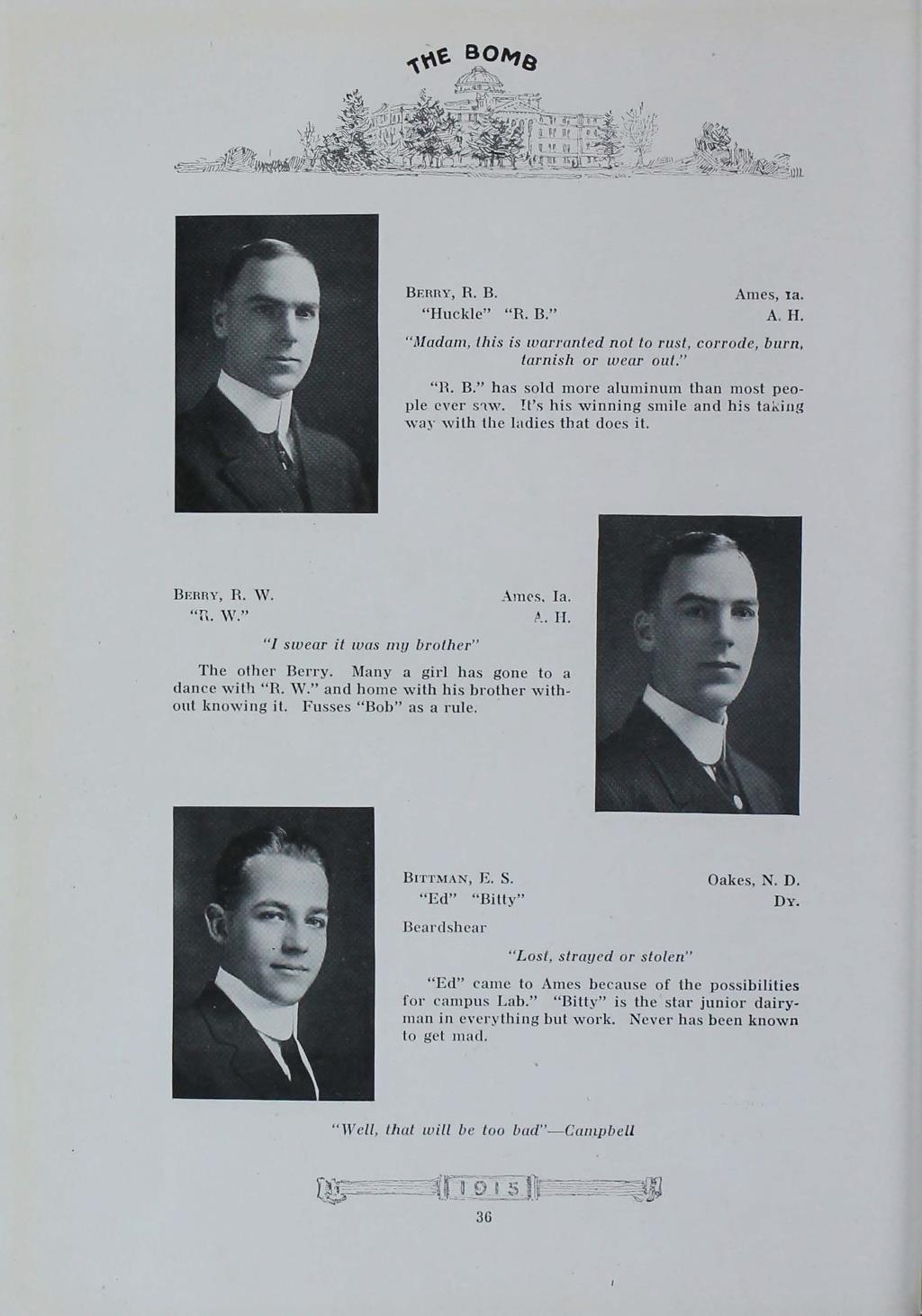 - "1915 Bomb", The Bomb (Iowa State) School Yearbooks, Iowa State University Library Digital Collections