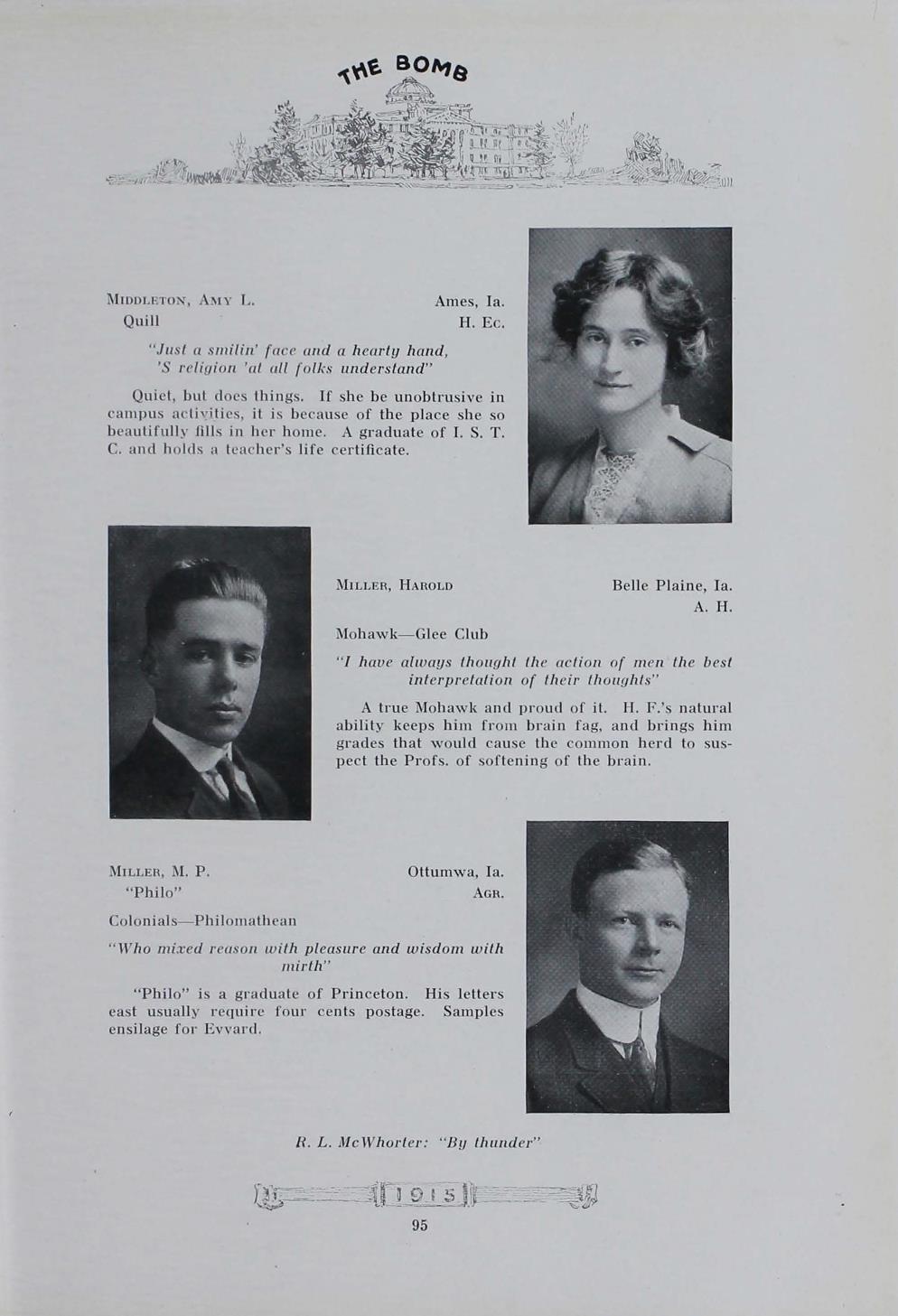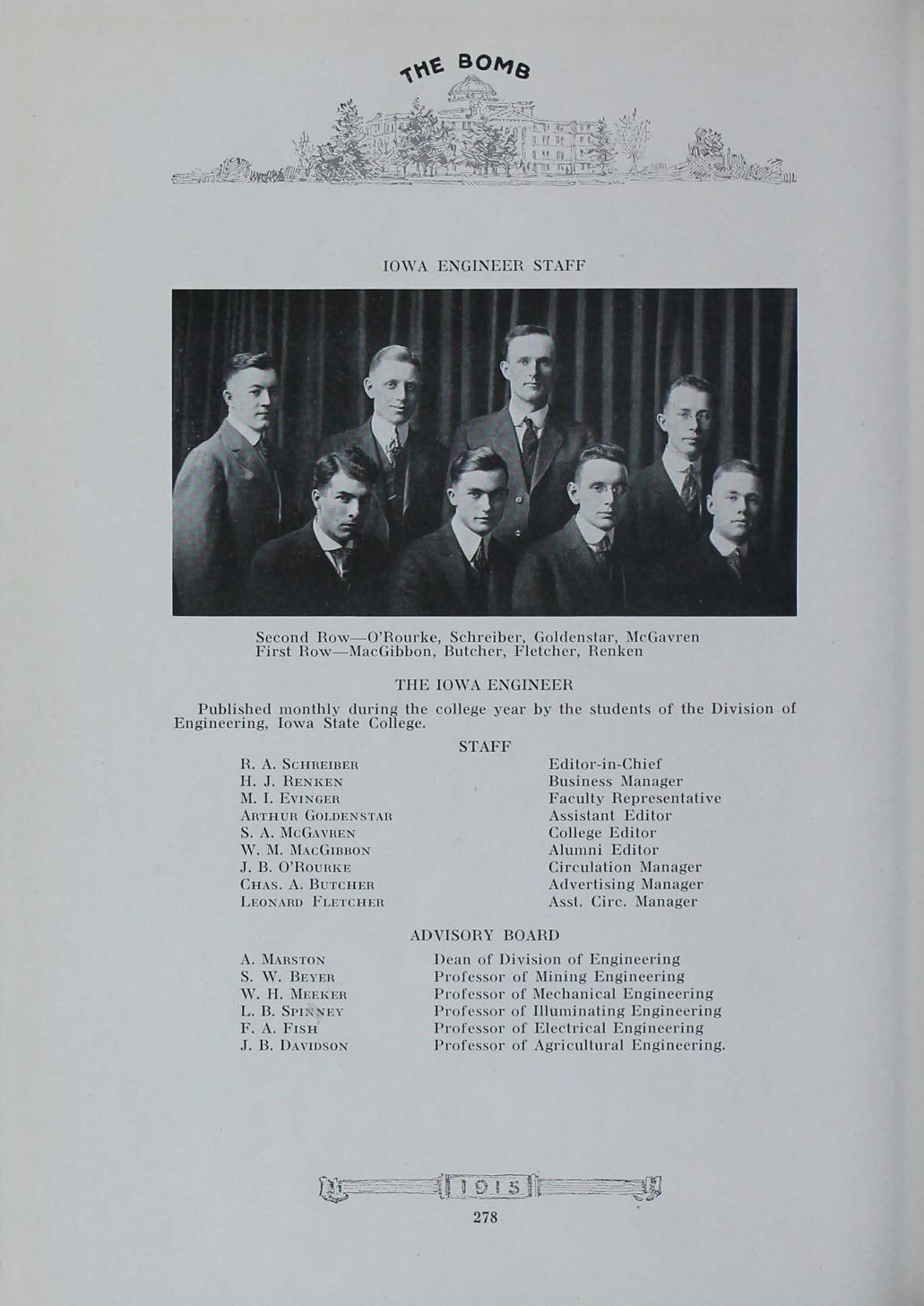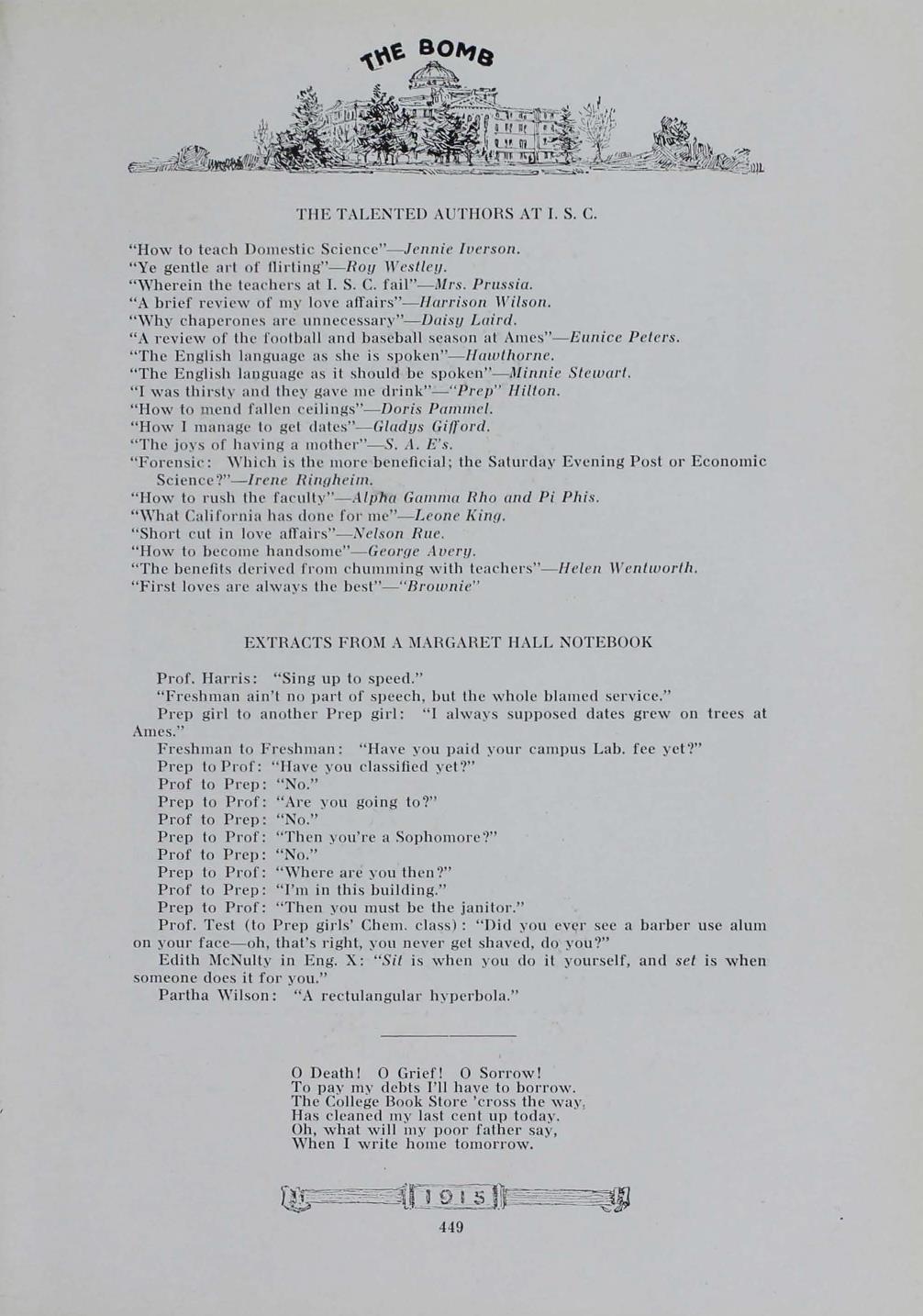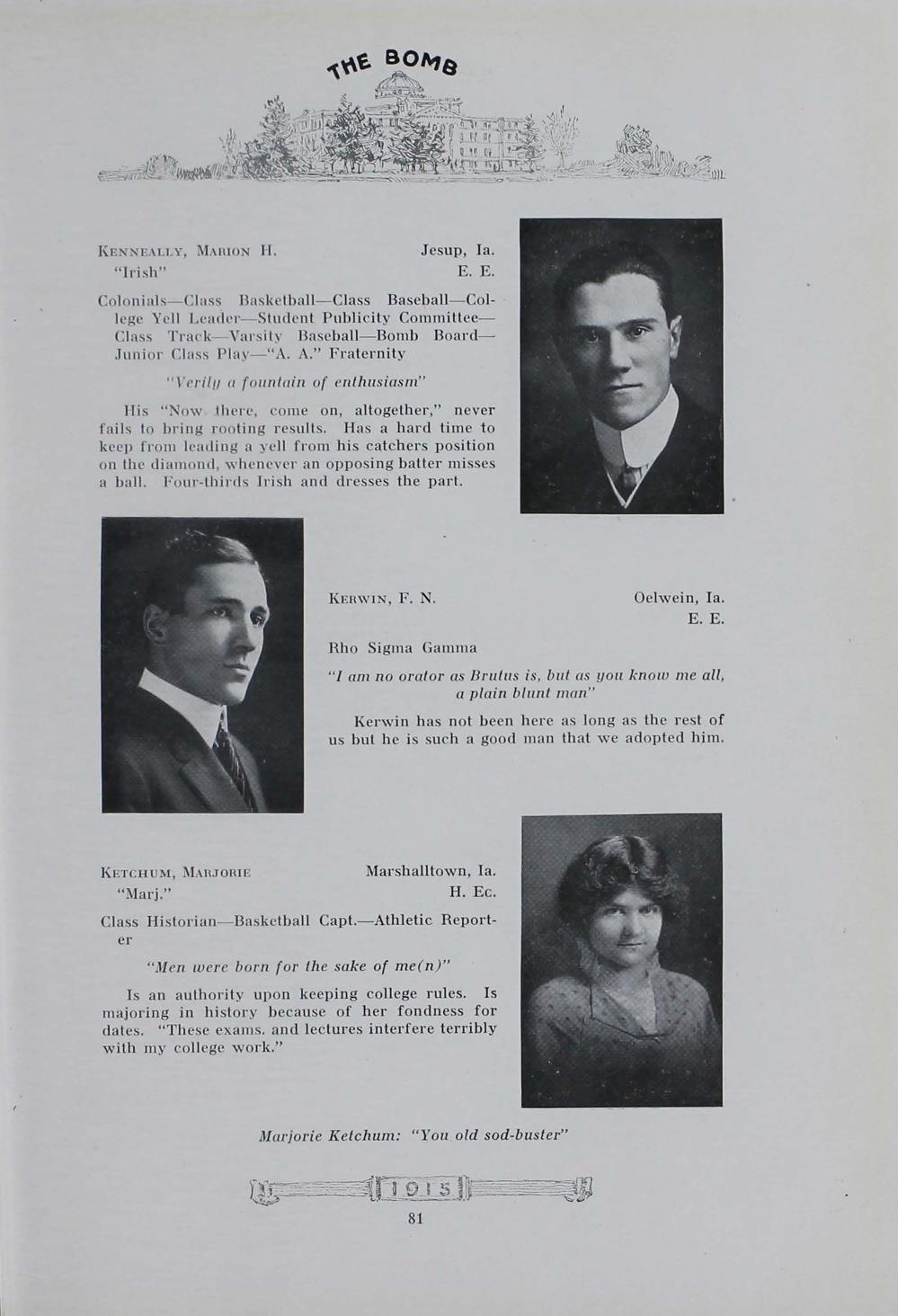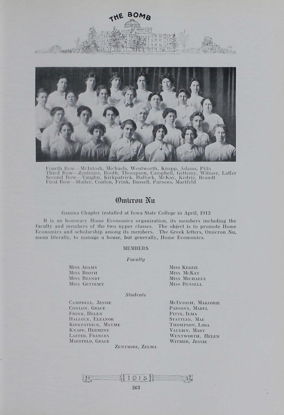 - "1915 Bomb", The Bomb (Iowa State) School Yearbooks, Iowa State University Library Digital Collections