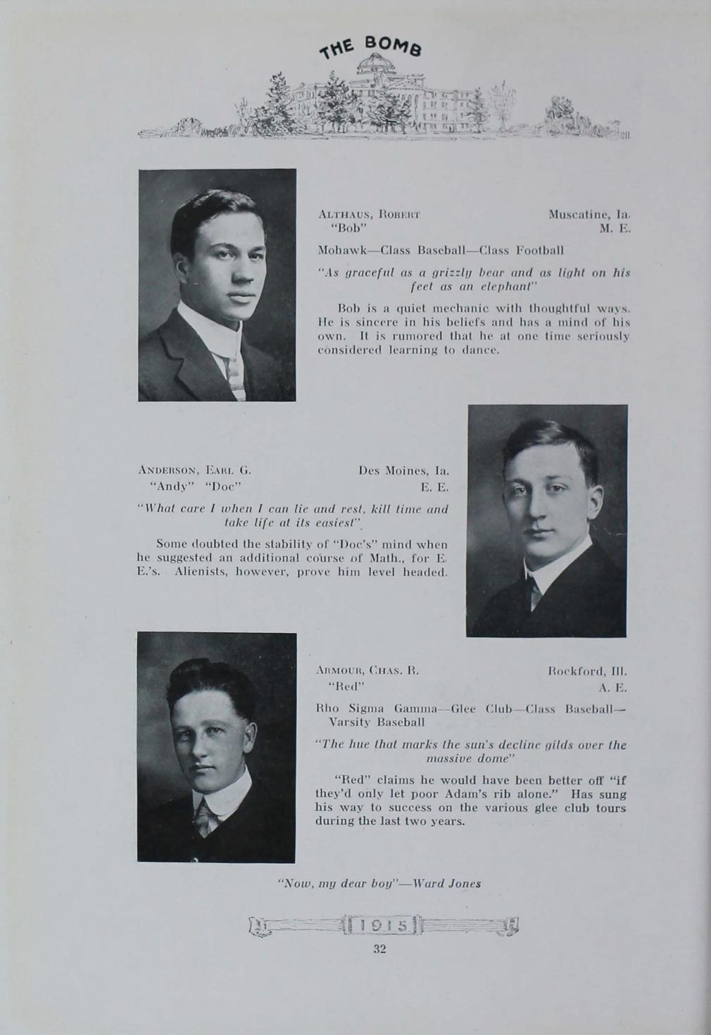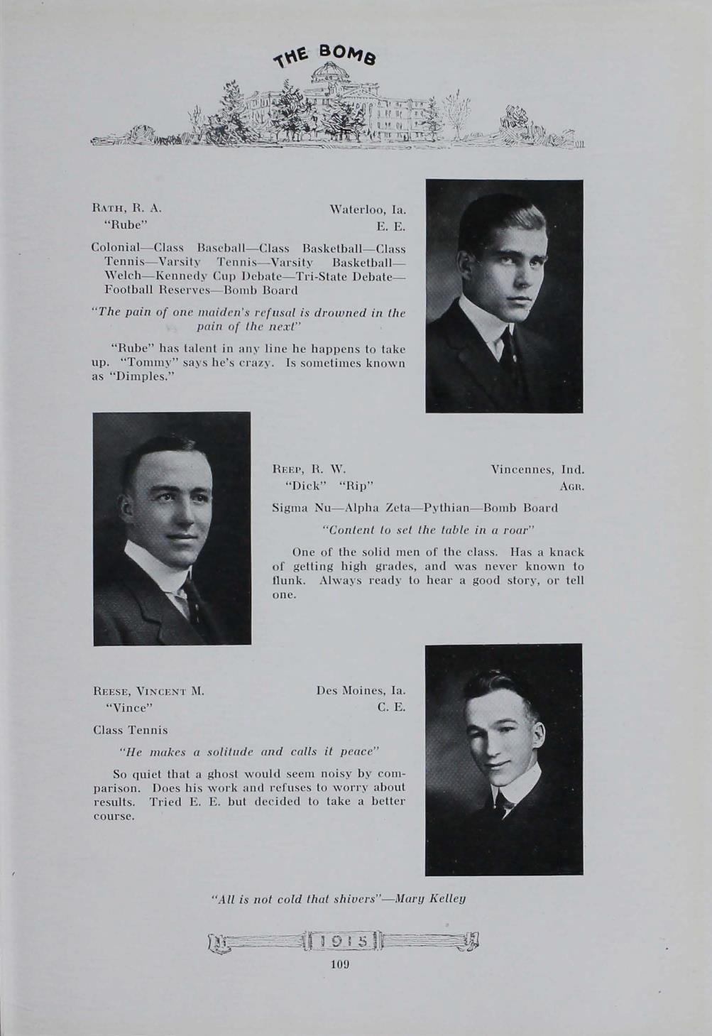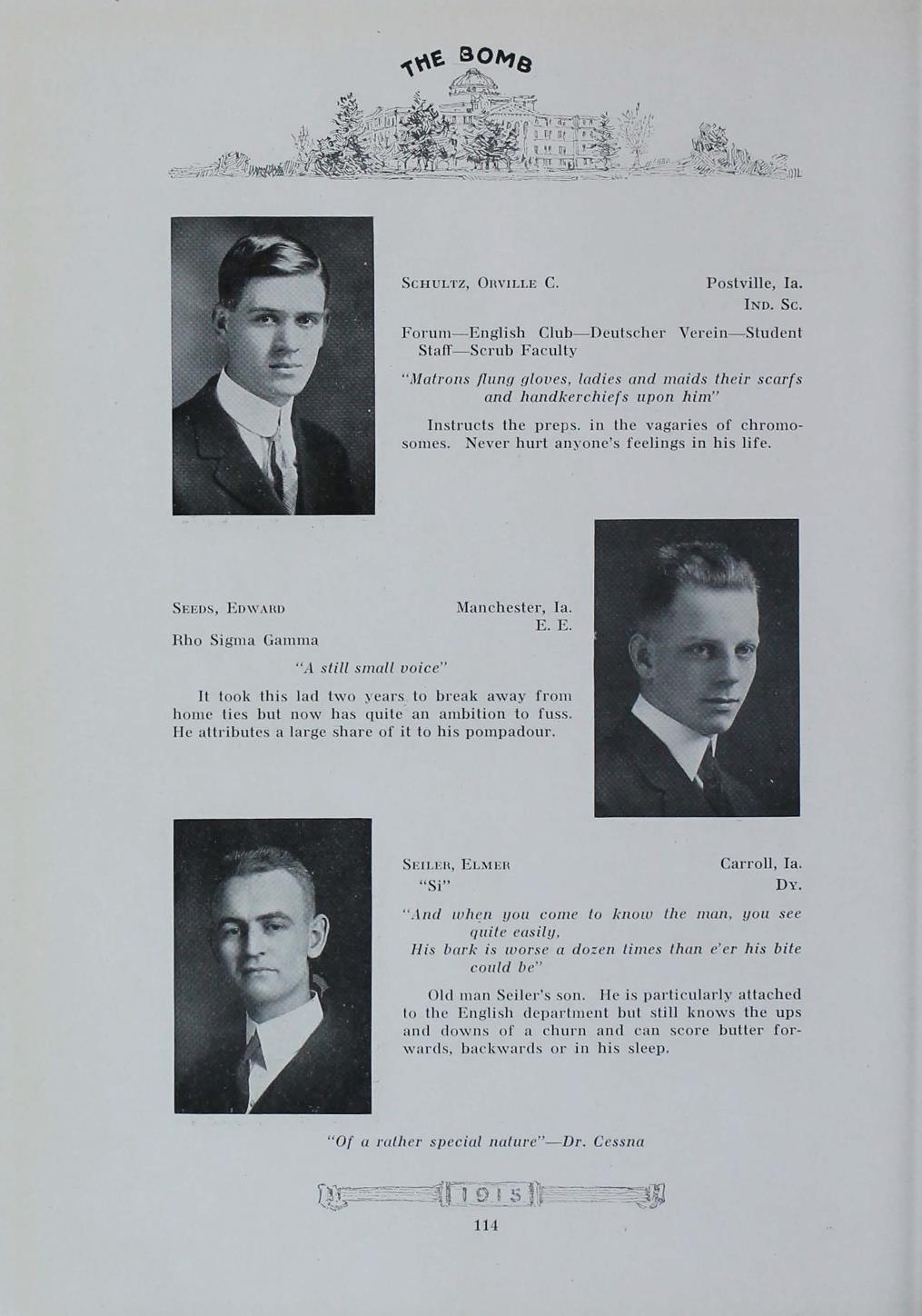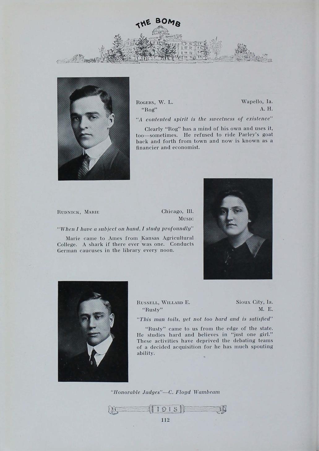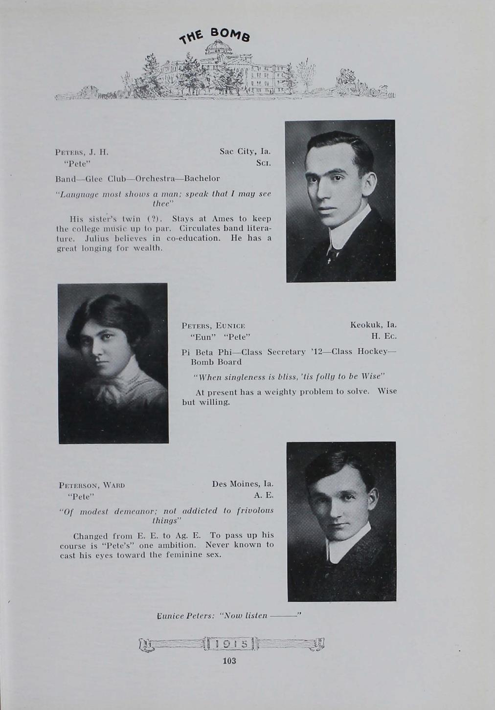 - "1915 Bomb", The Bomb (Iowa State) School Yearbooks, Iowa State University Library Digital Collections