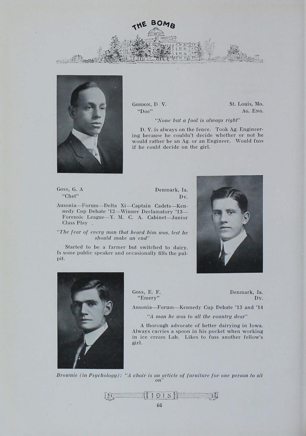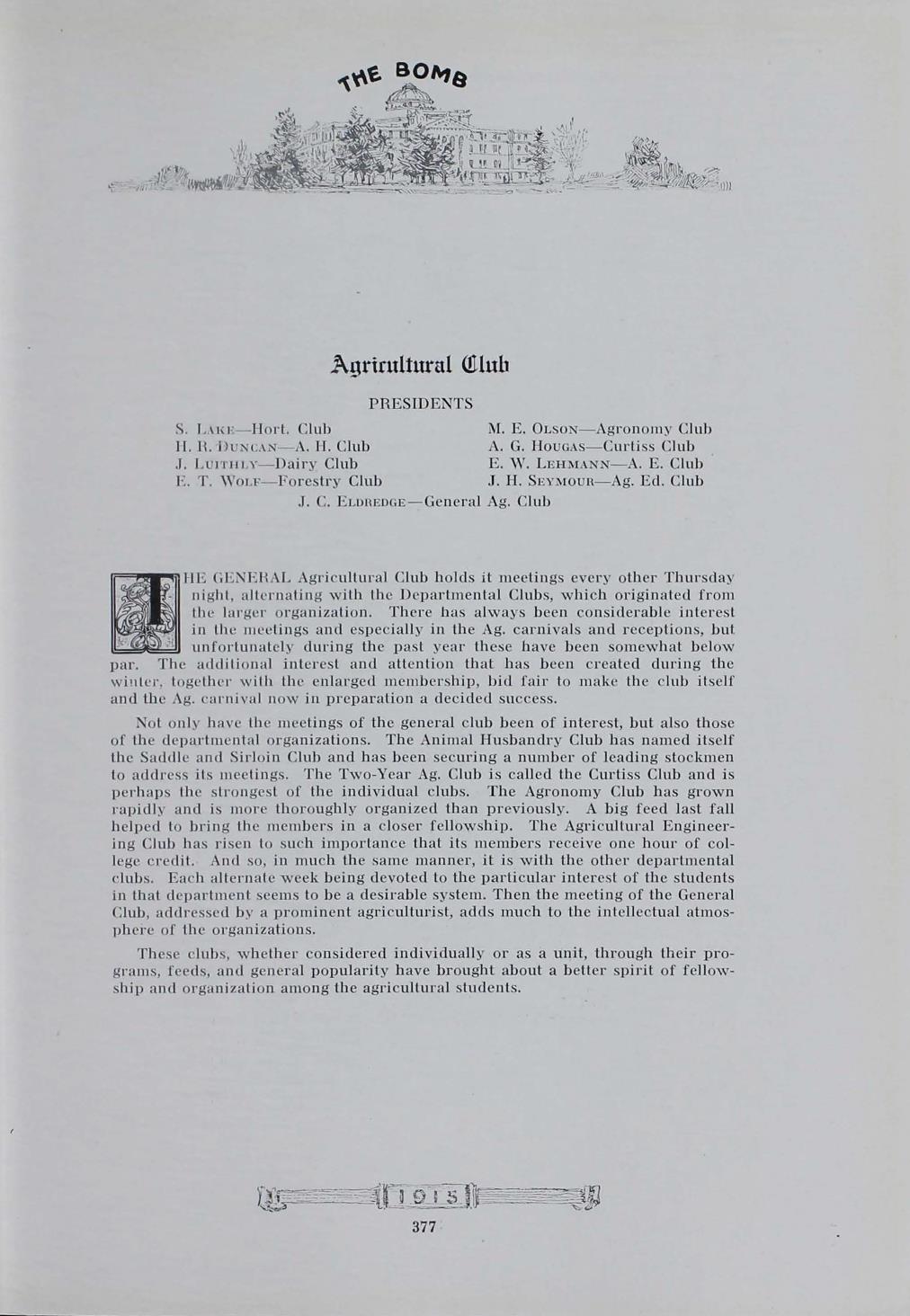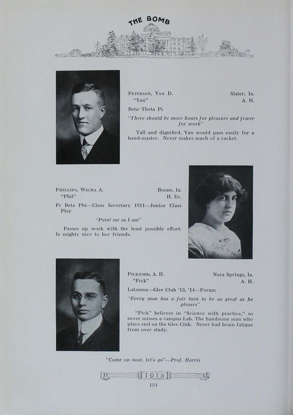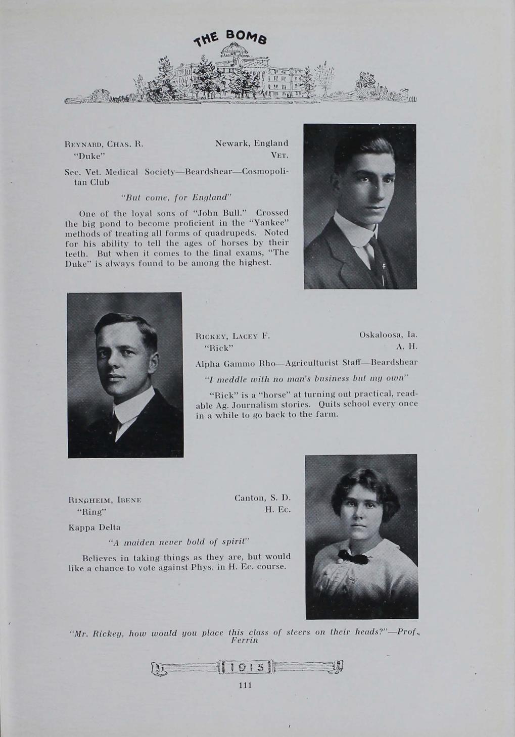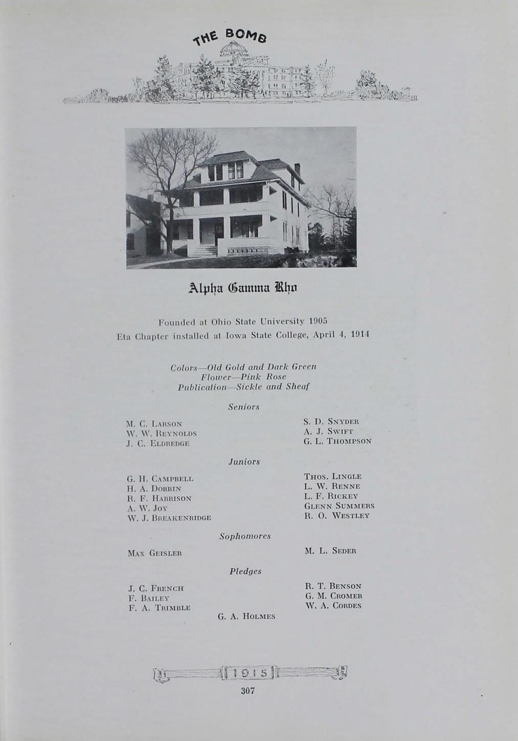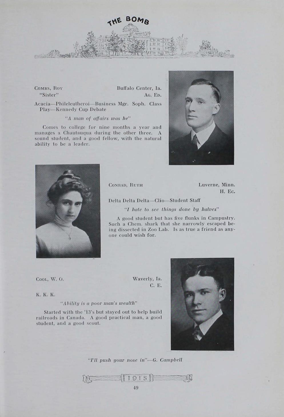 - "1915 Bomb", The Bomb (Iowa State) School Yearbooks, Iowa State University Library Digital Collections