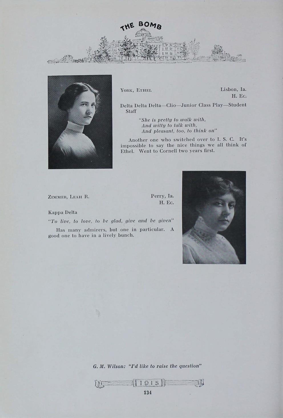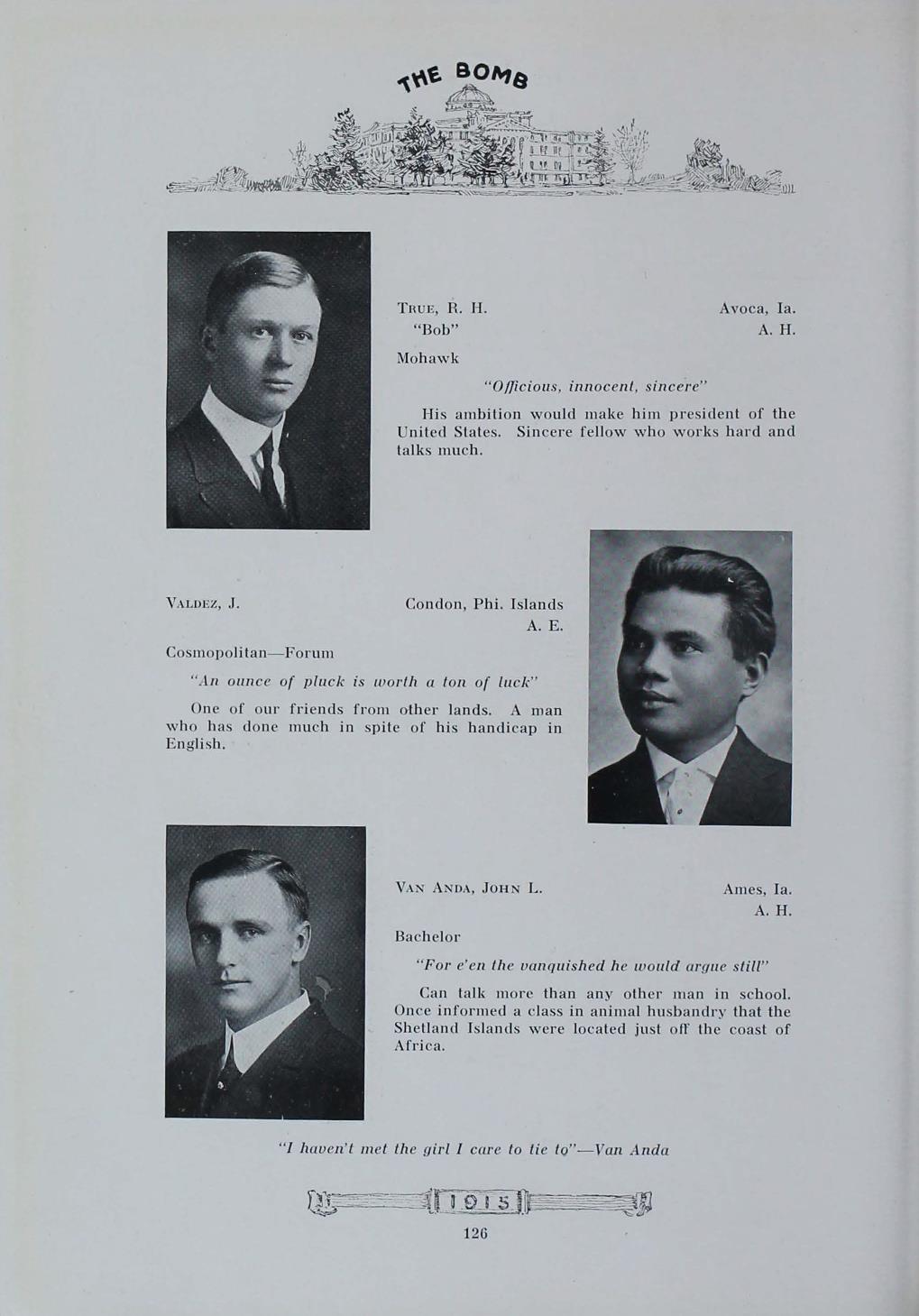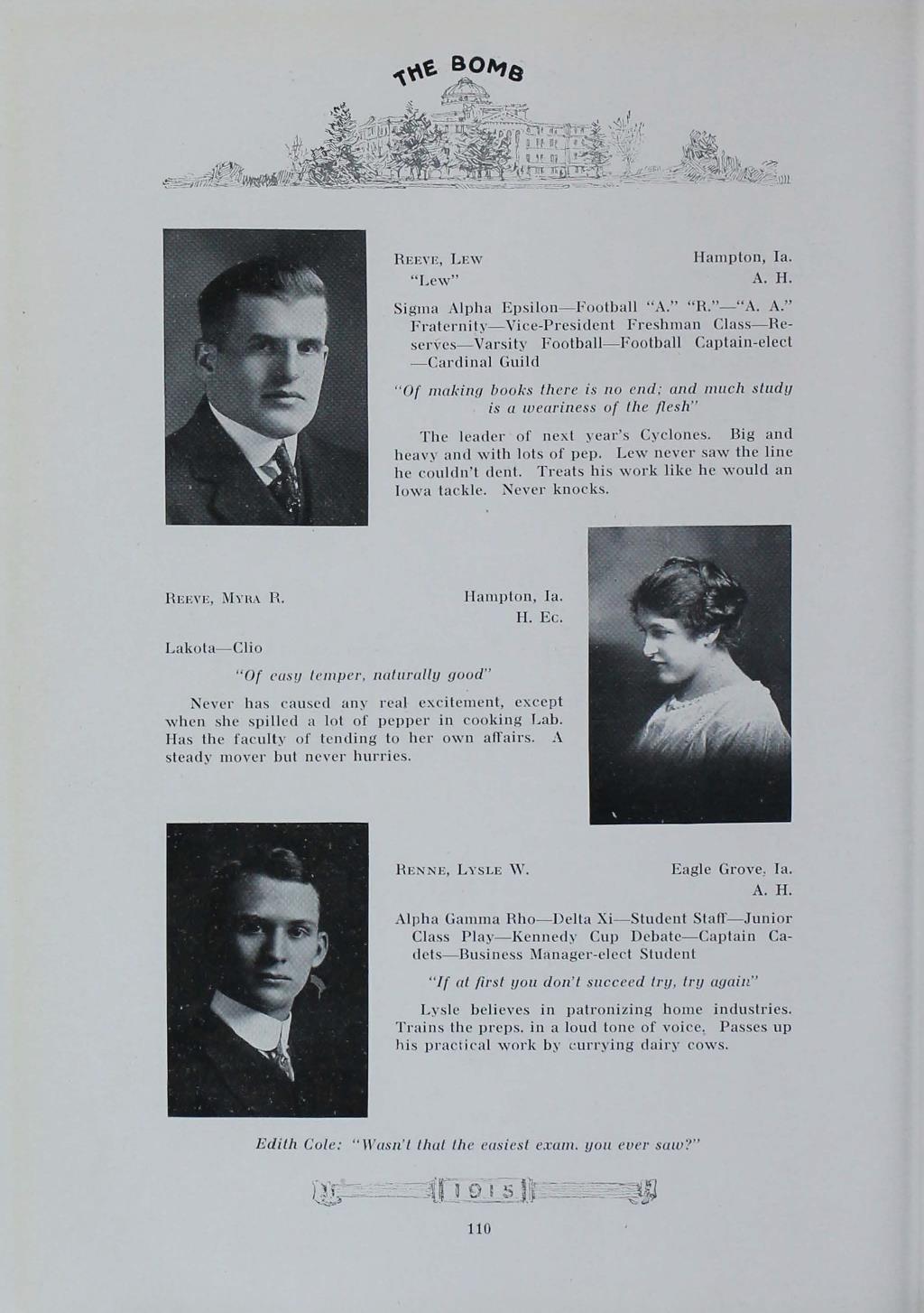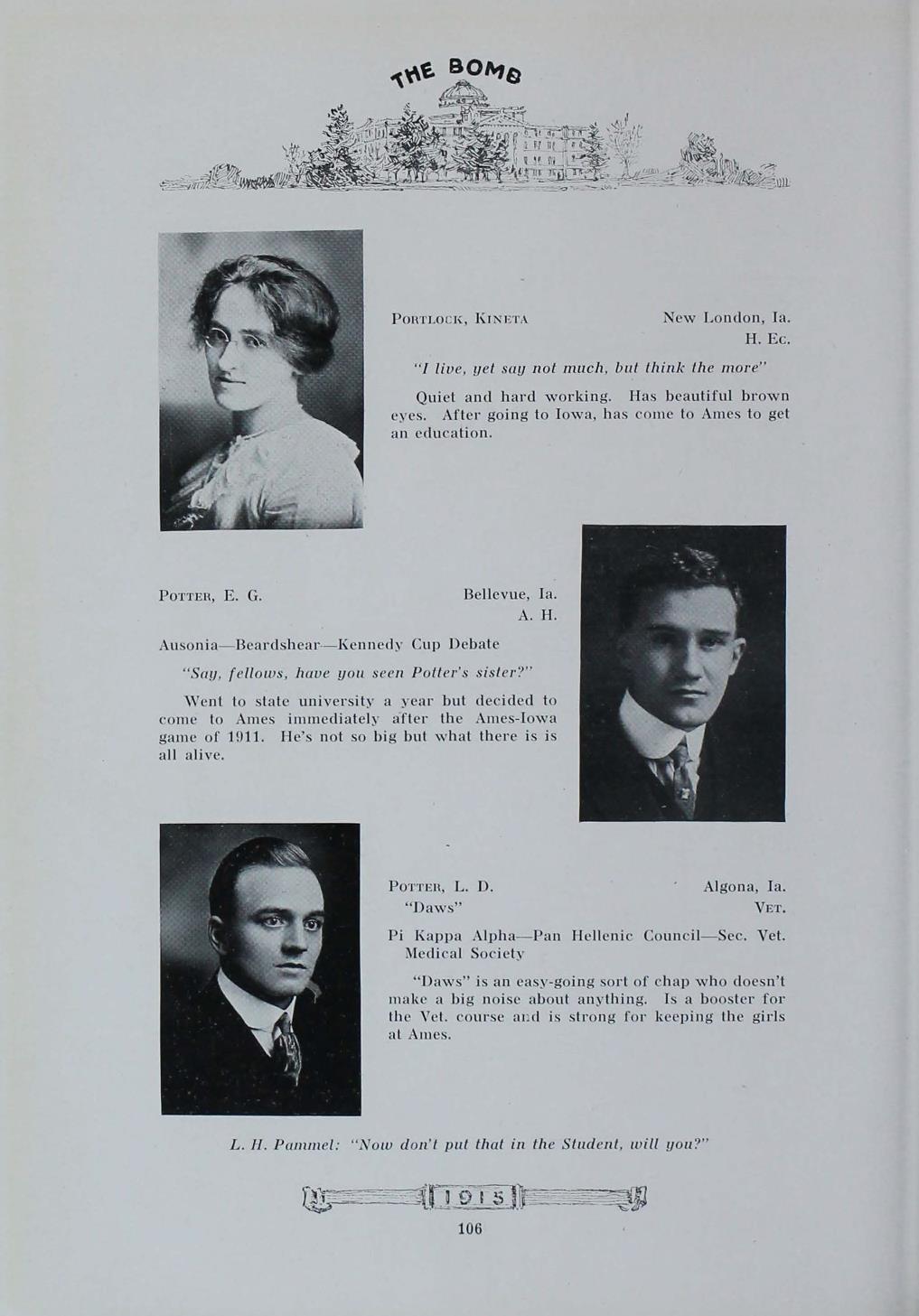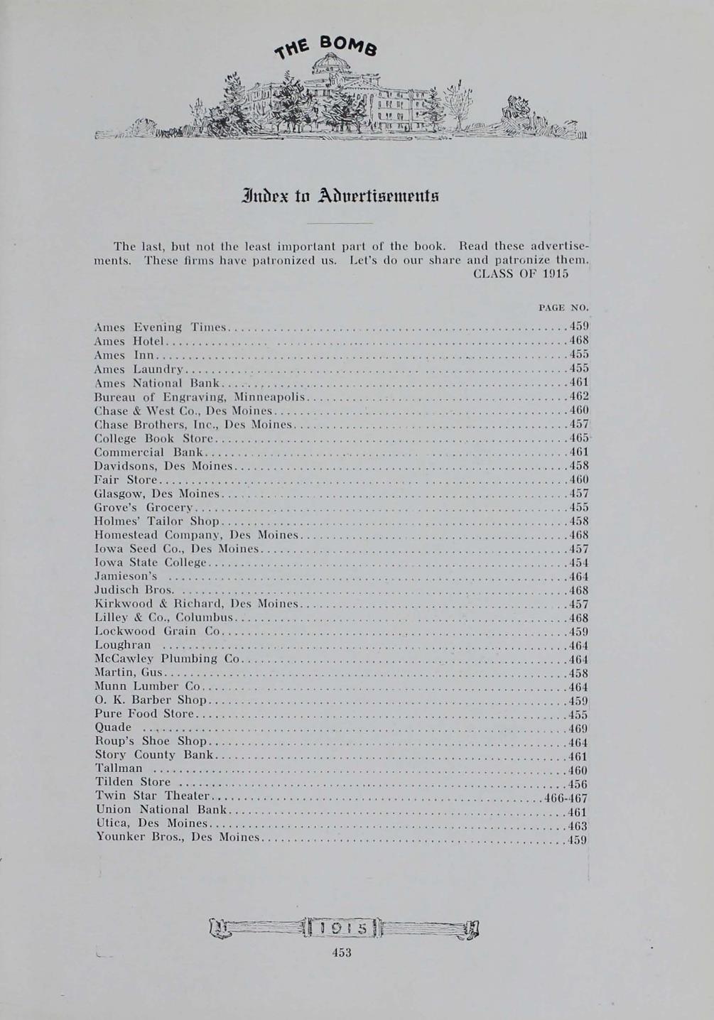 - "1915 Bomb", The Bomb (Iowa State) School Yearbooks, Iowa State University Library Digital Collections
