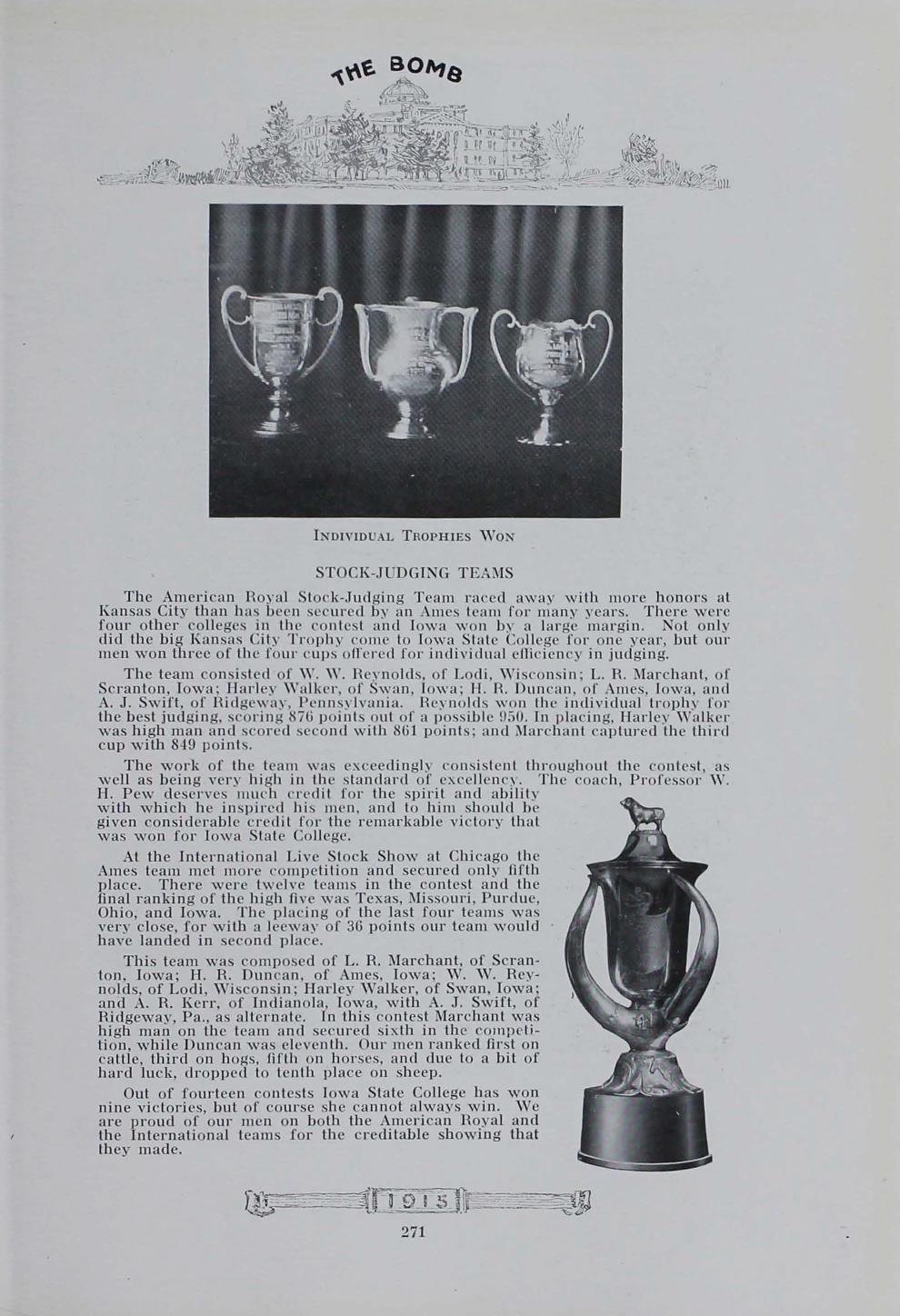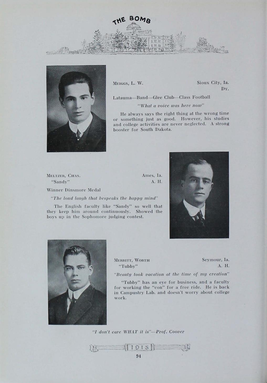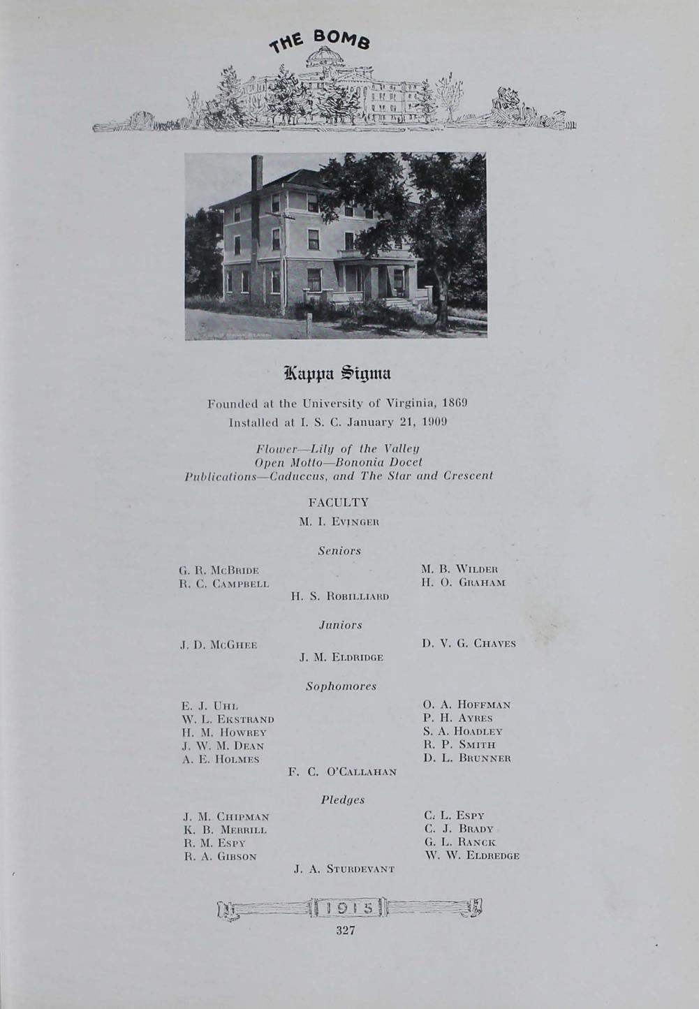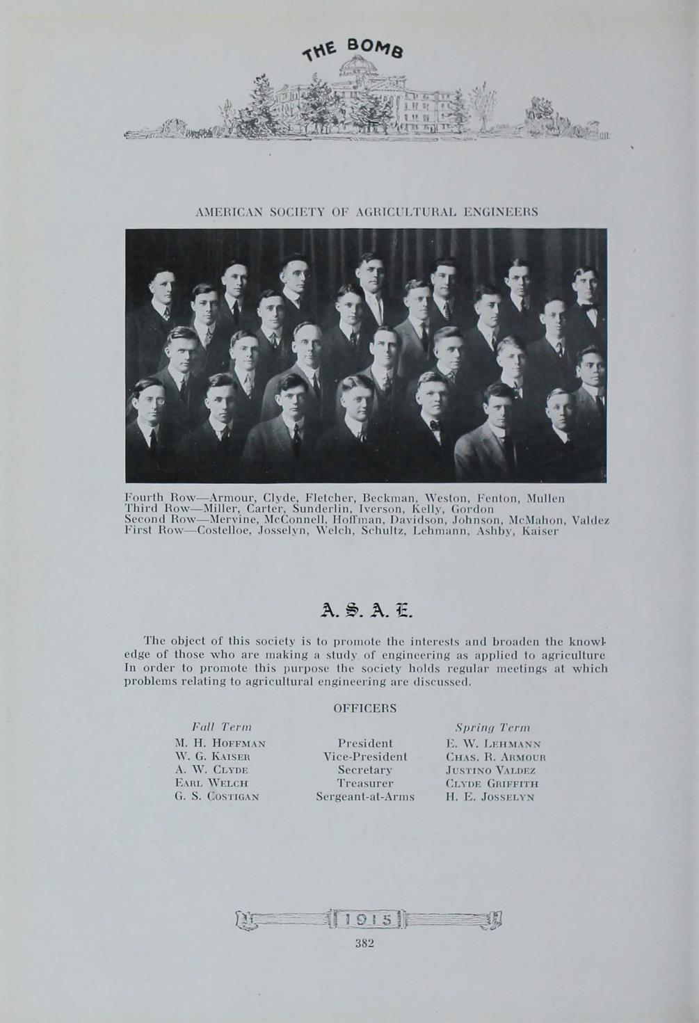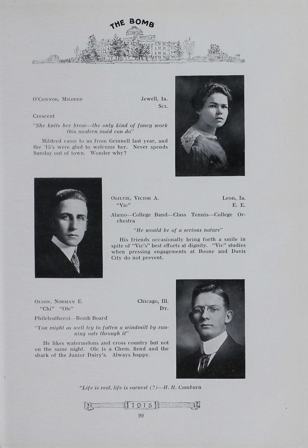 - "1915 Bomb", The Bomb (Iowa State) School Yearbooks, Iowa State University Library Digital Collections