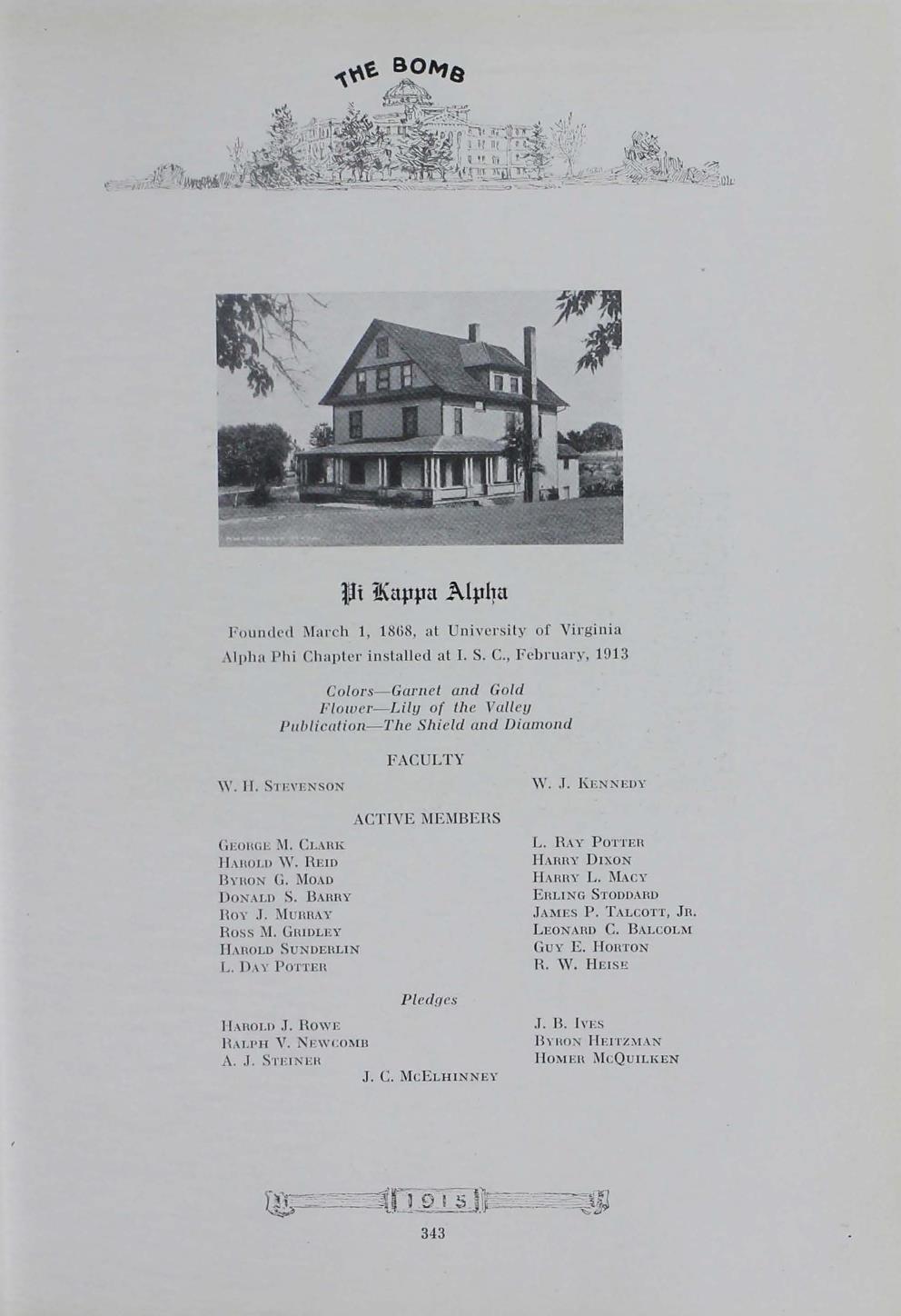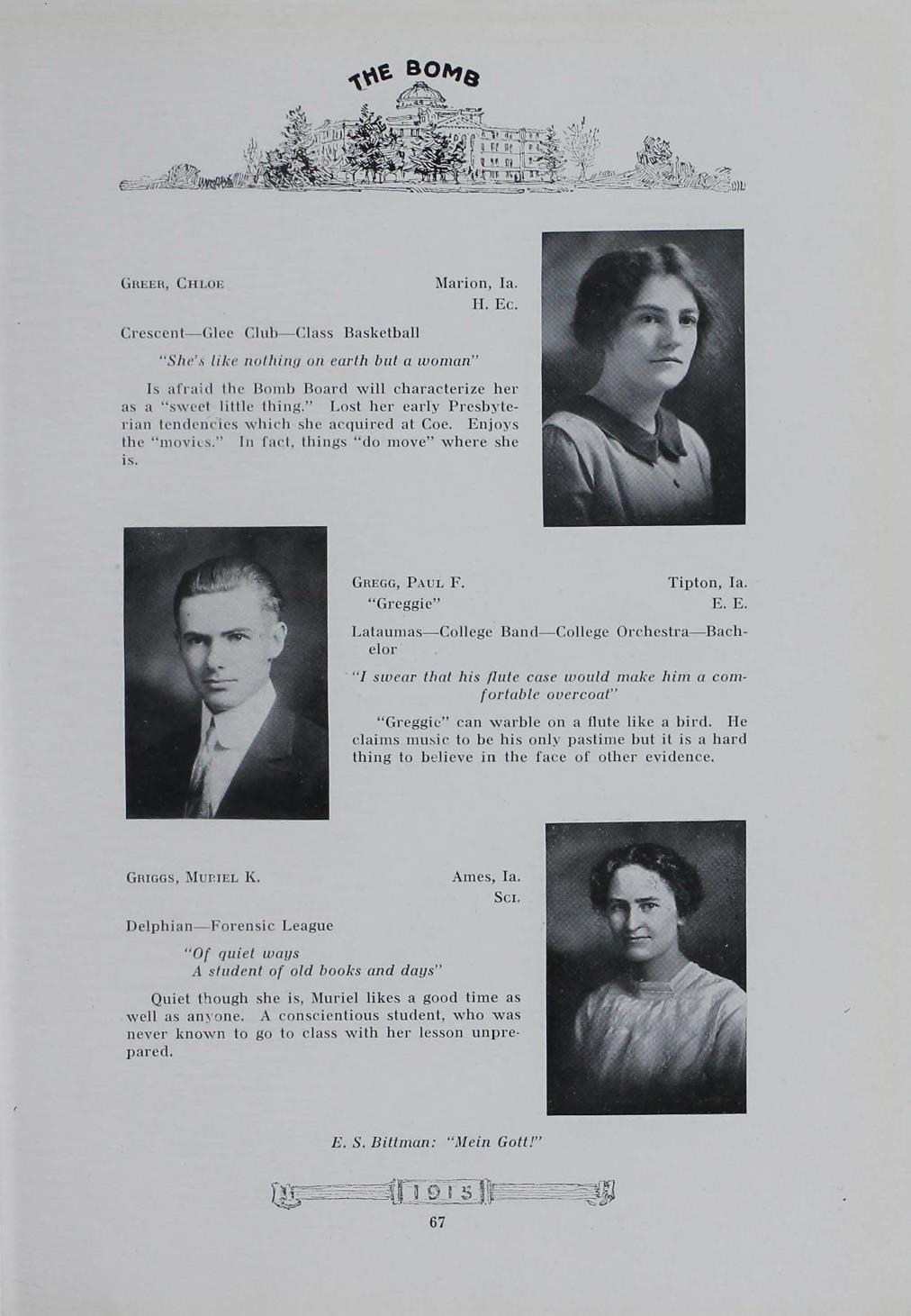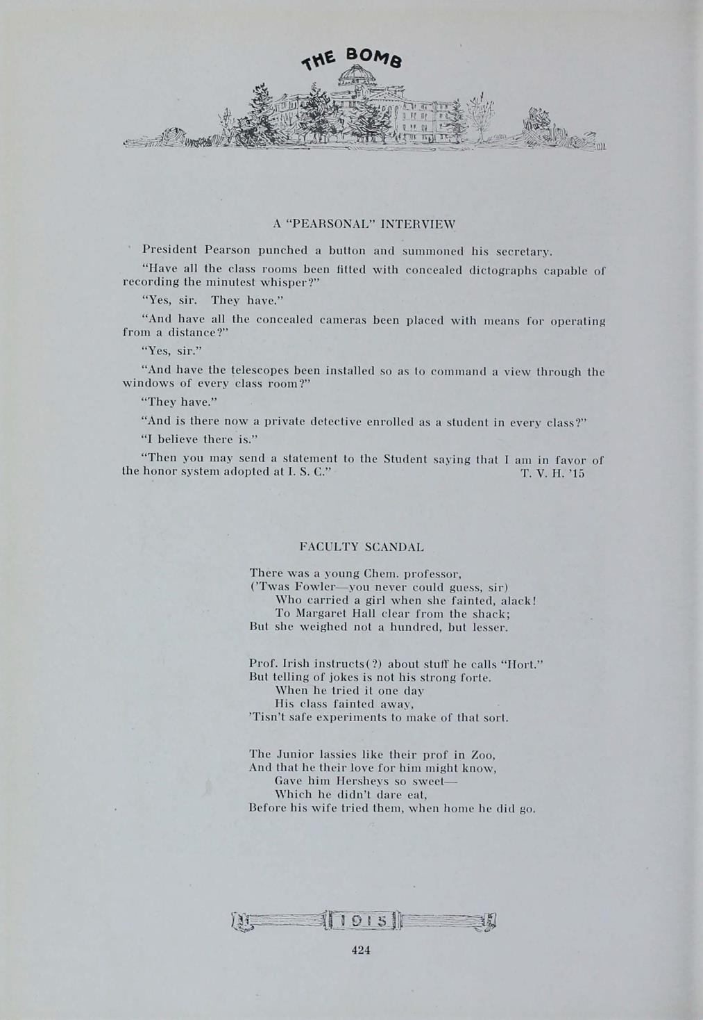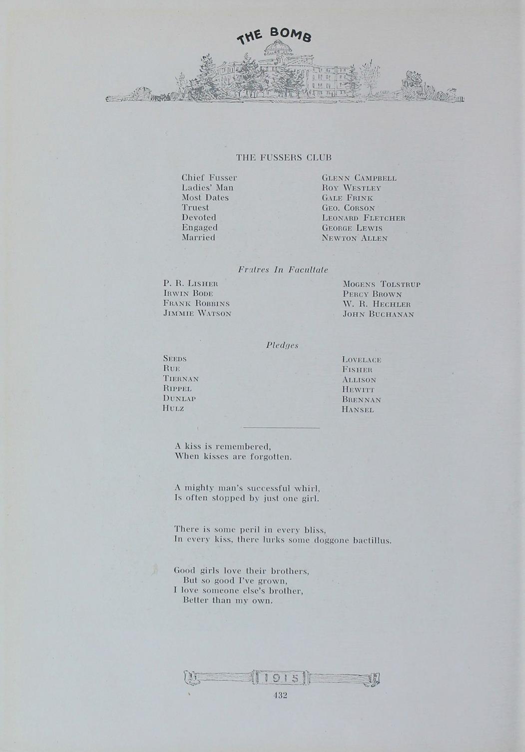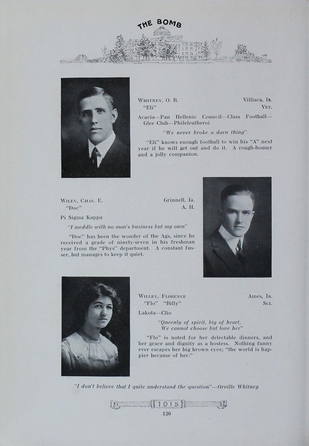 - "1915 Bomb", The Bomb (Iowa State) School Yearbooks, Iowa State University Library Digital Collections