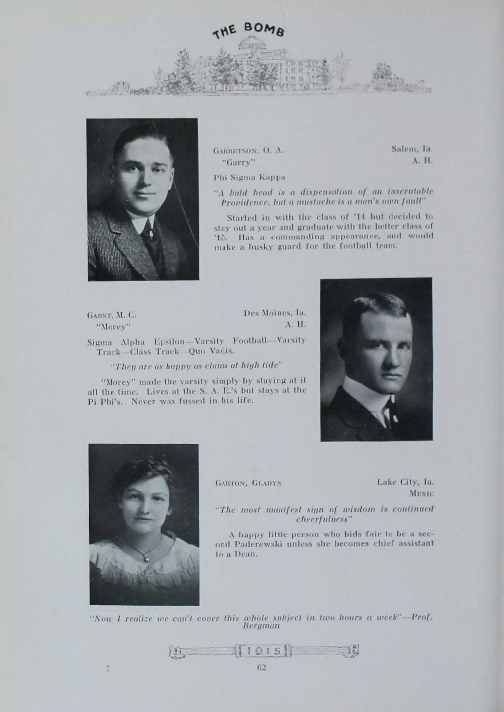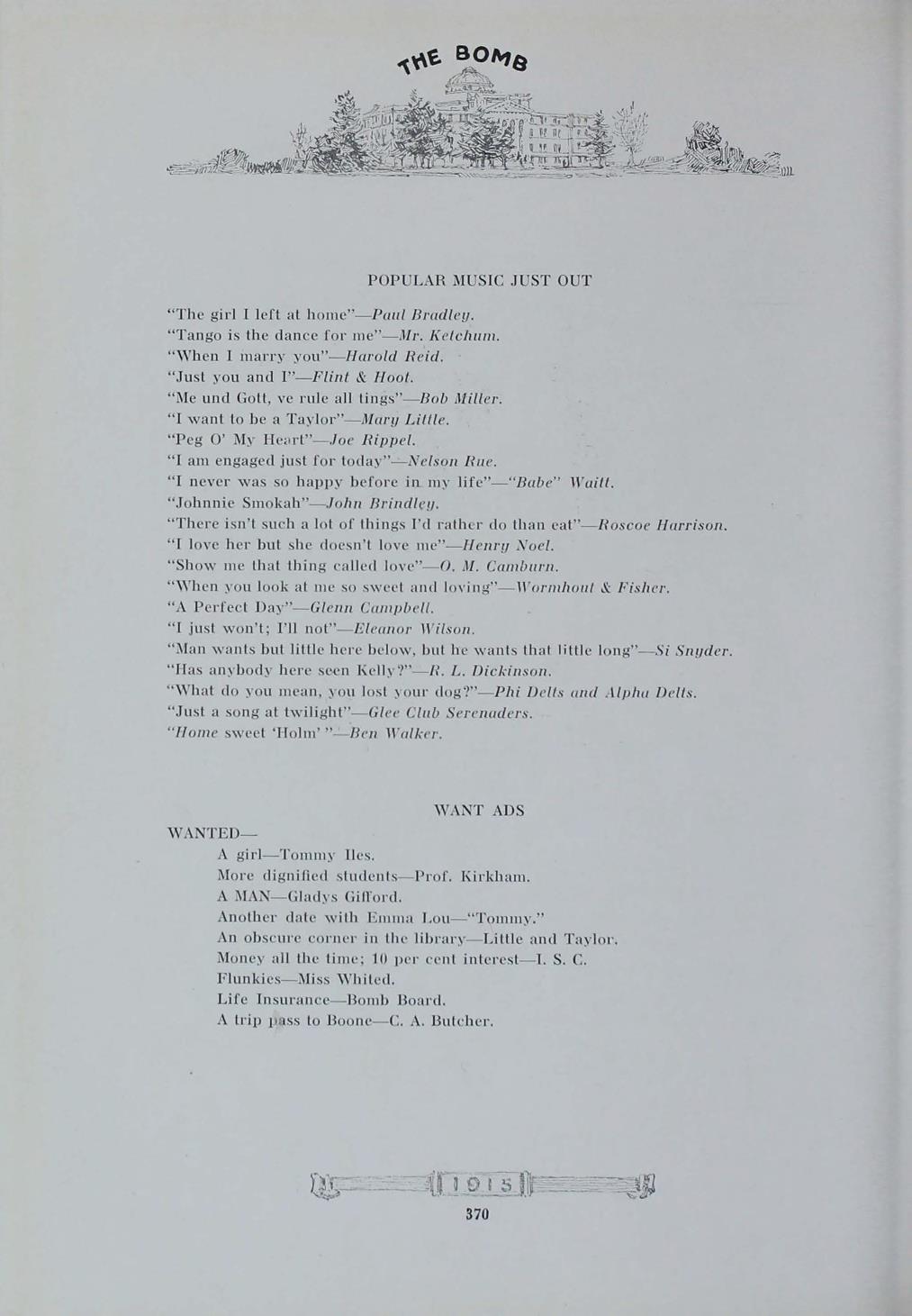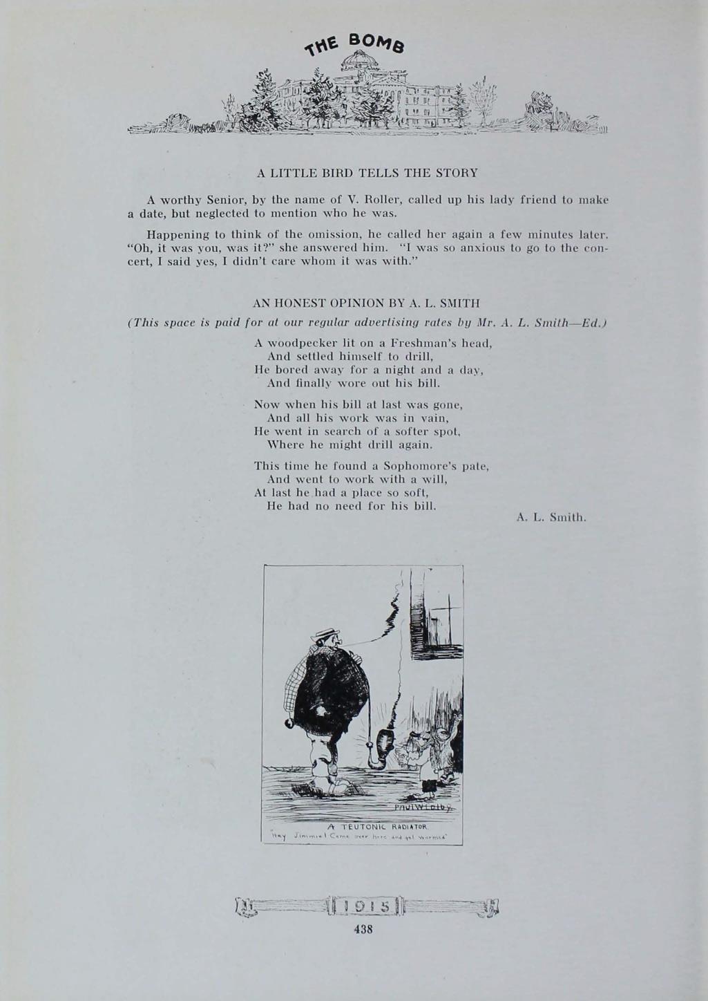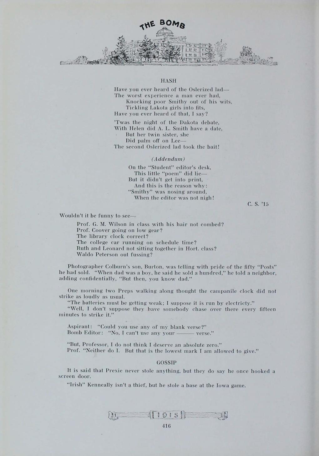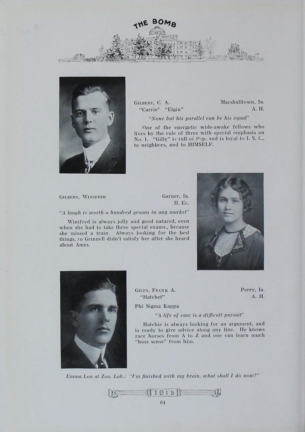 - "1915 Bomb", The Bomb (Iowa State) School Yearbooks, Iowa State University Library Digital Collections