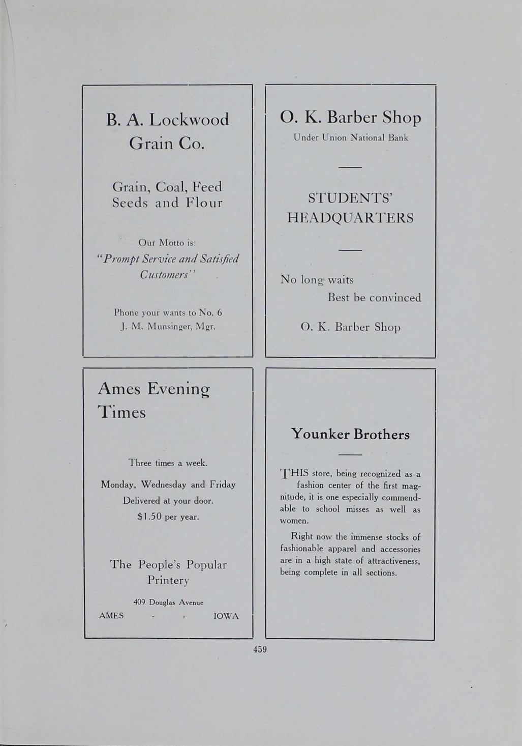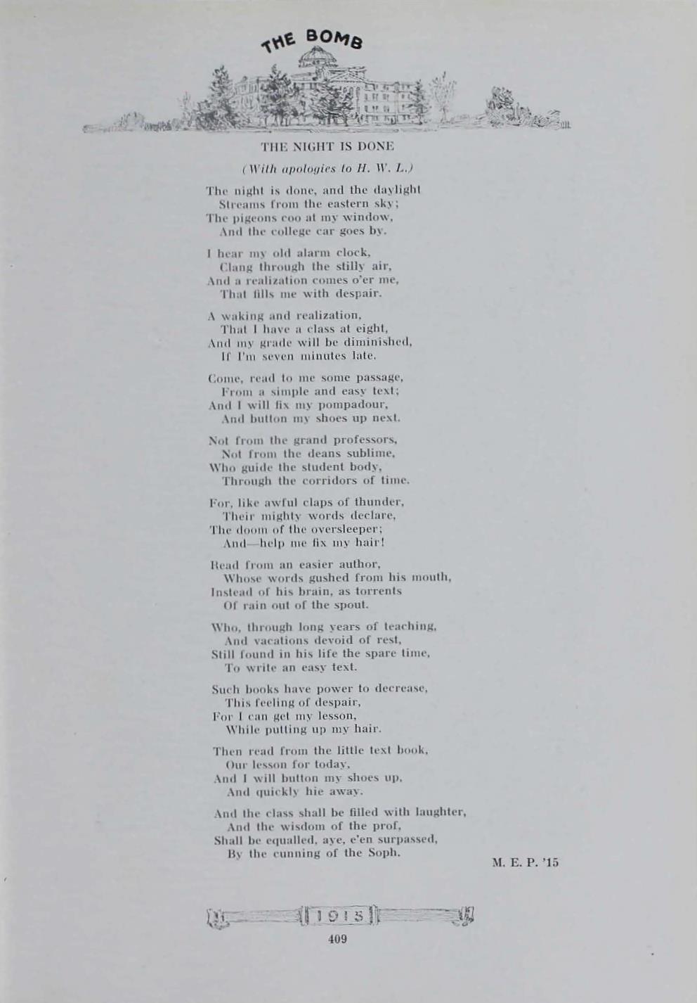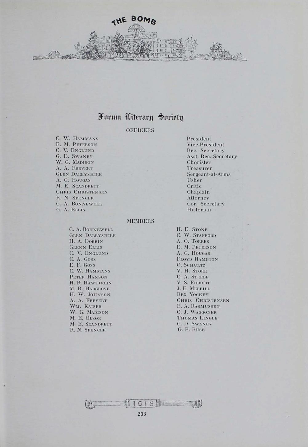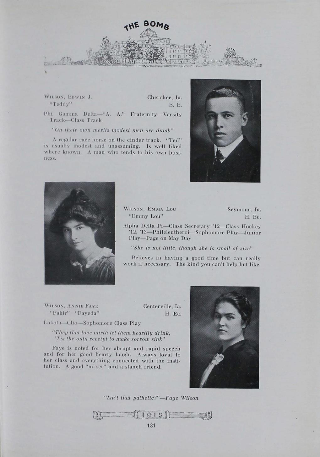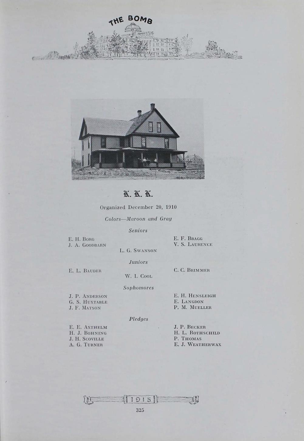 - "1915 Bomb", The Bomb (Iowa State) School Yearbooks, Iowa State University Library Digital Collections