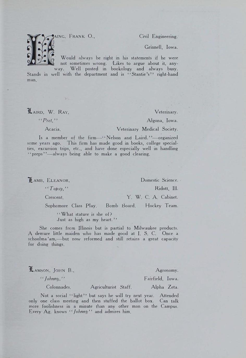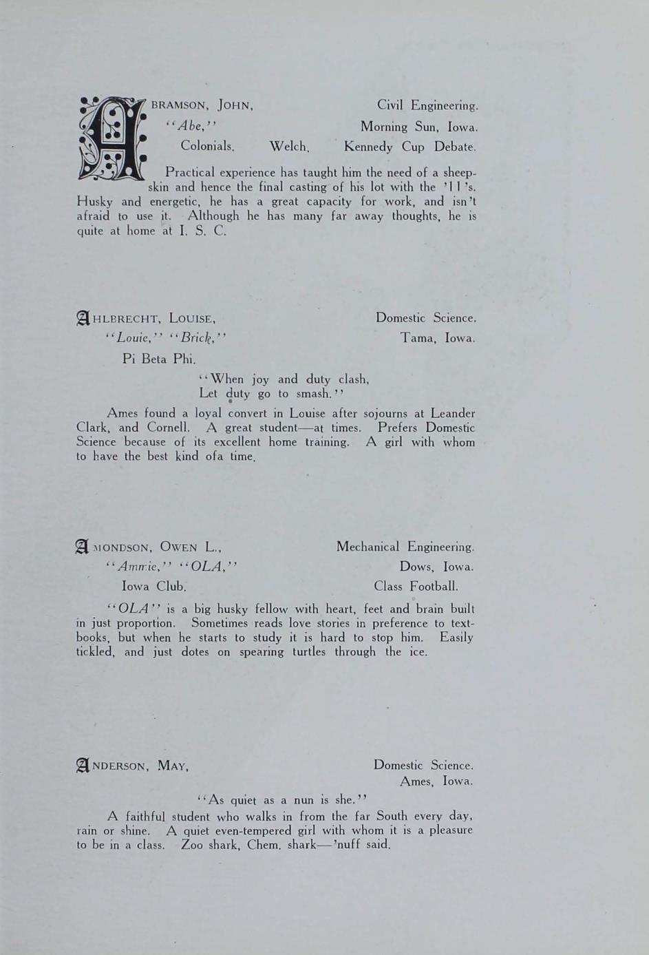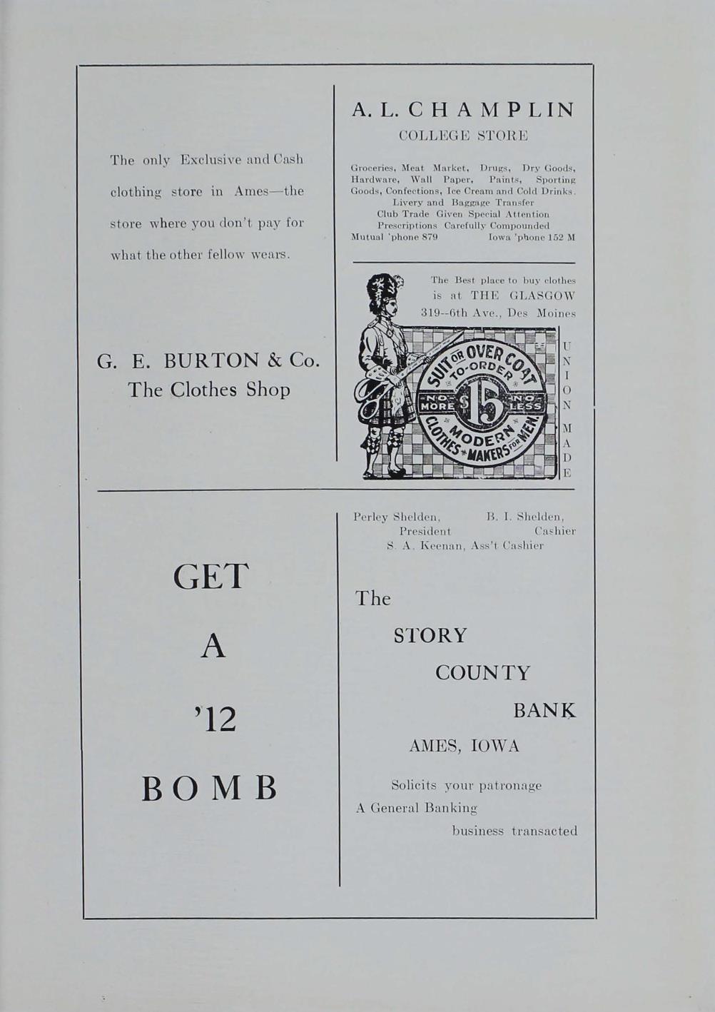 - "1911 Bomb", The Bomb (Iowa State) School Yearbooks, Iowa State University Library Digital Collections
