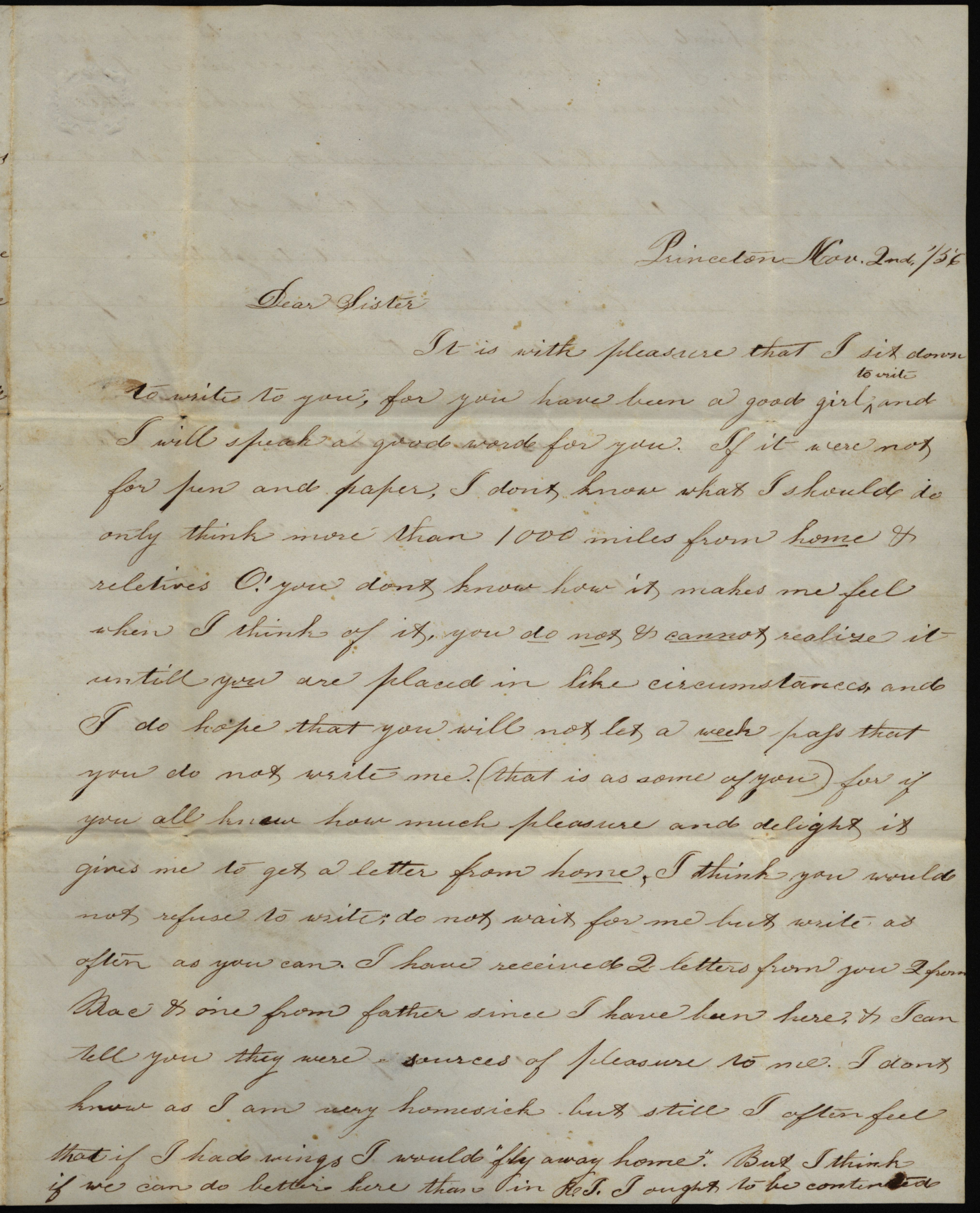 - Letter from Sarah to "Dear Sister," November 2, 1856
