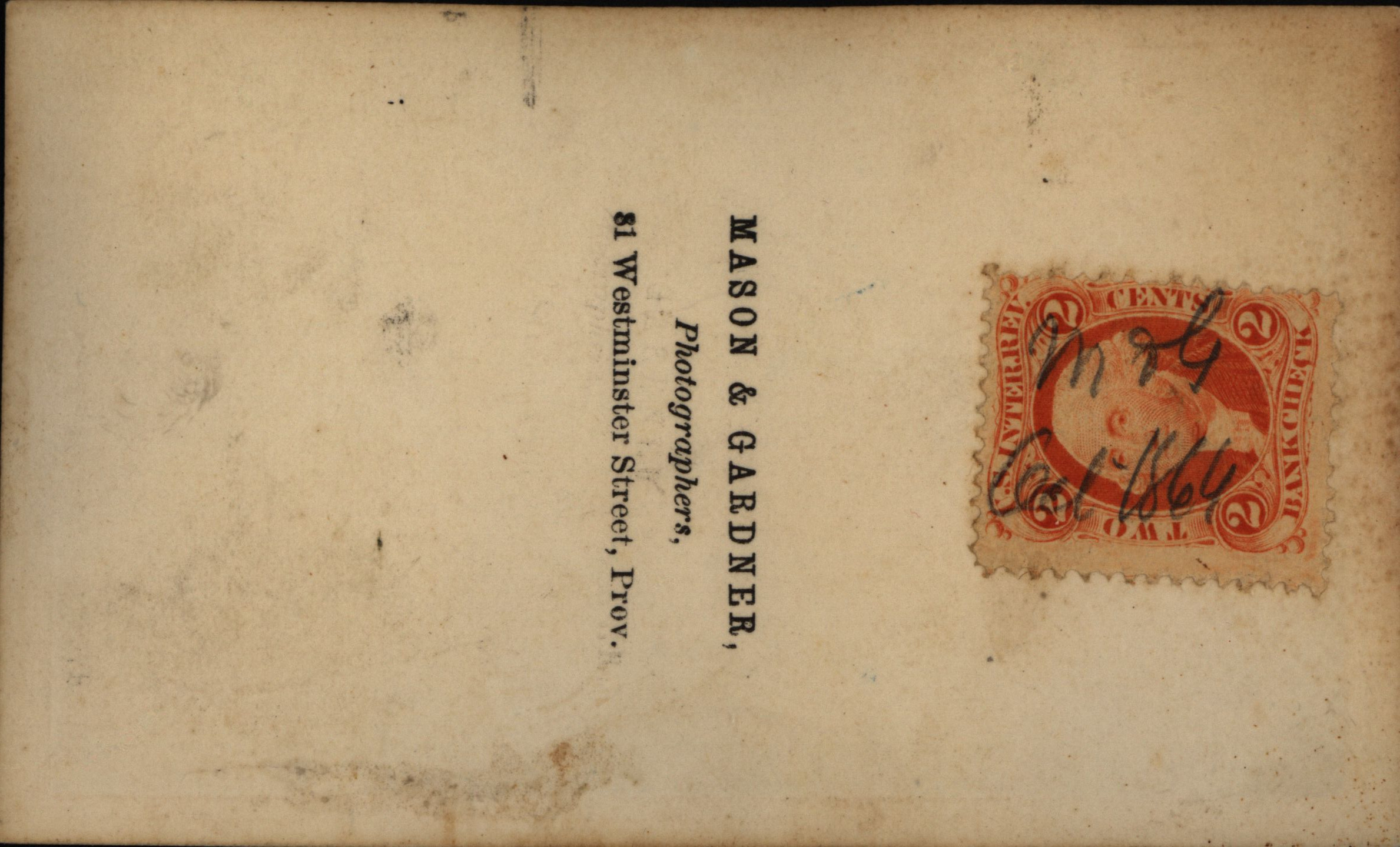 - Seated studio portrait of unidentified woman taken at the Mason & Gardner photography studio in Providence, Rhode Island.