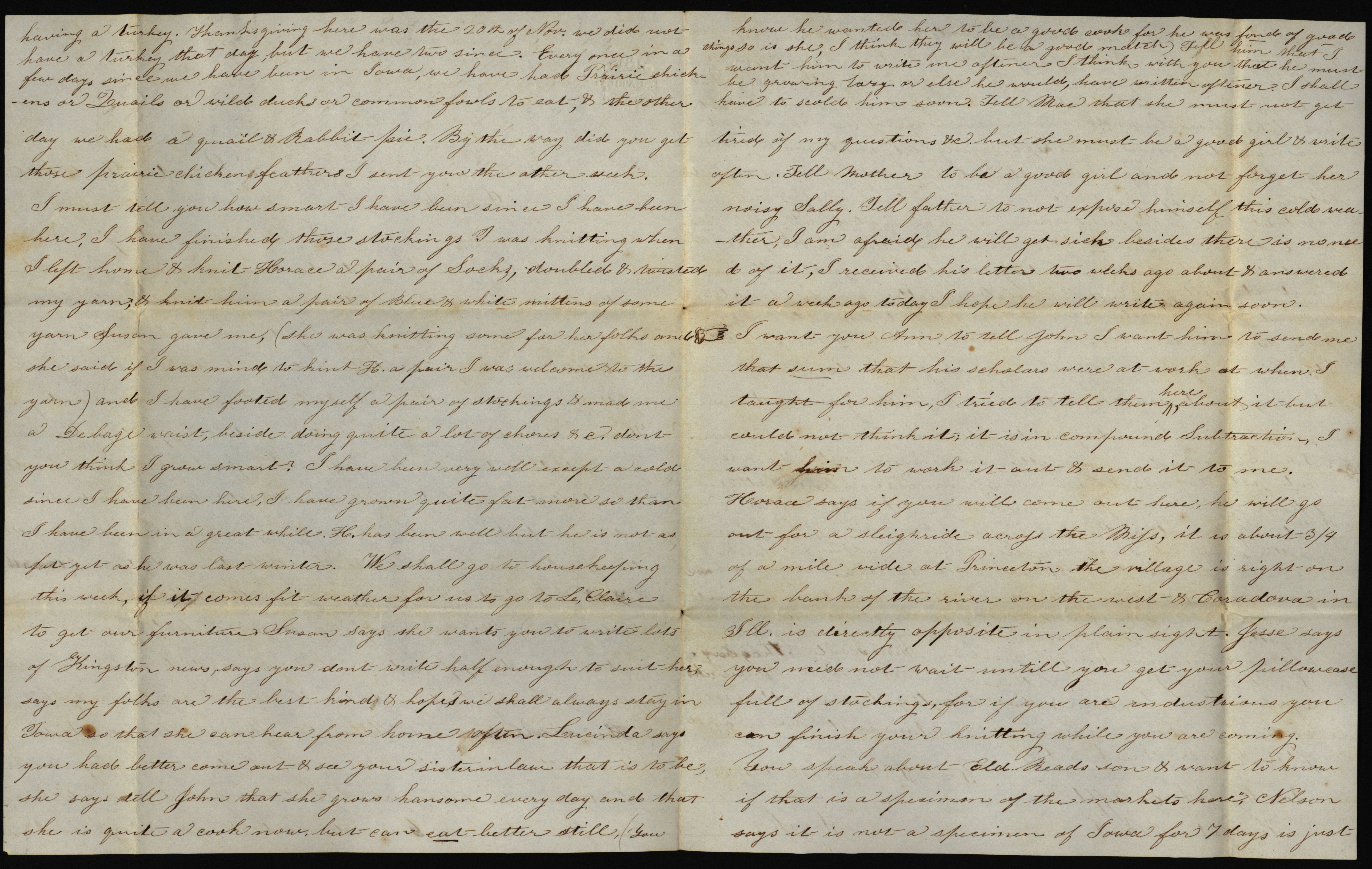 - "Letter from Sarah to "Dear Sister Ann," December 14, 1856", Sarah Underwood Papers, Iowa State University Library Digital Collections