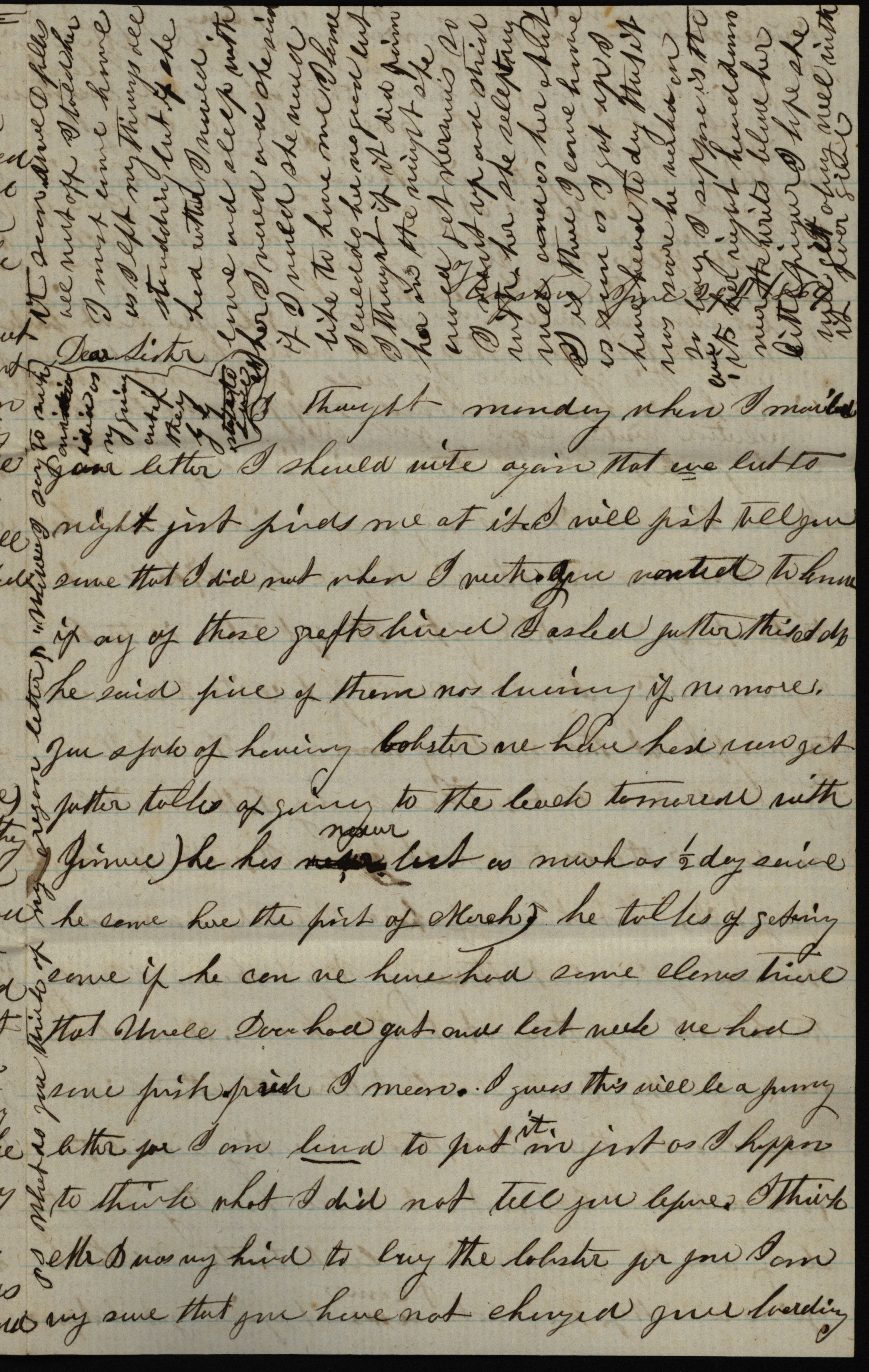 - Letters from unknown to Ann E. Tefft. The first letter shares news of the death of a neighbor, and describes a severe hail storm, a fabric shopping trip, and churning butter. The second letter describes buying lobster, news of friends and family, and the activities of a bee colony.