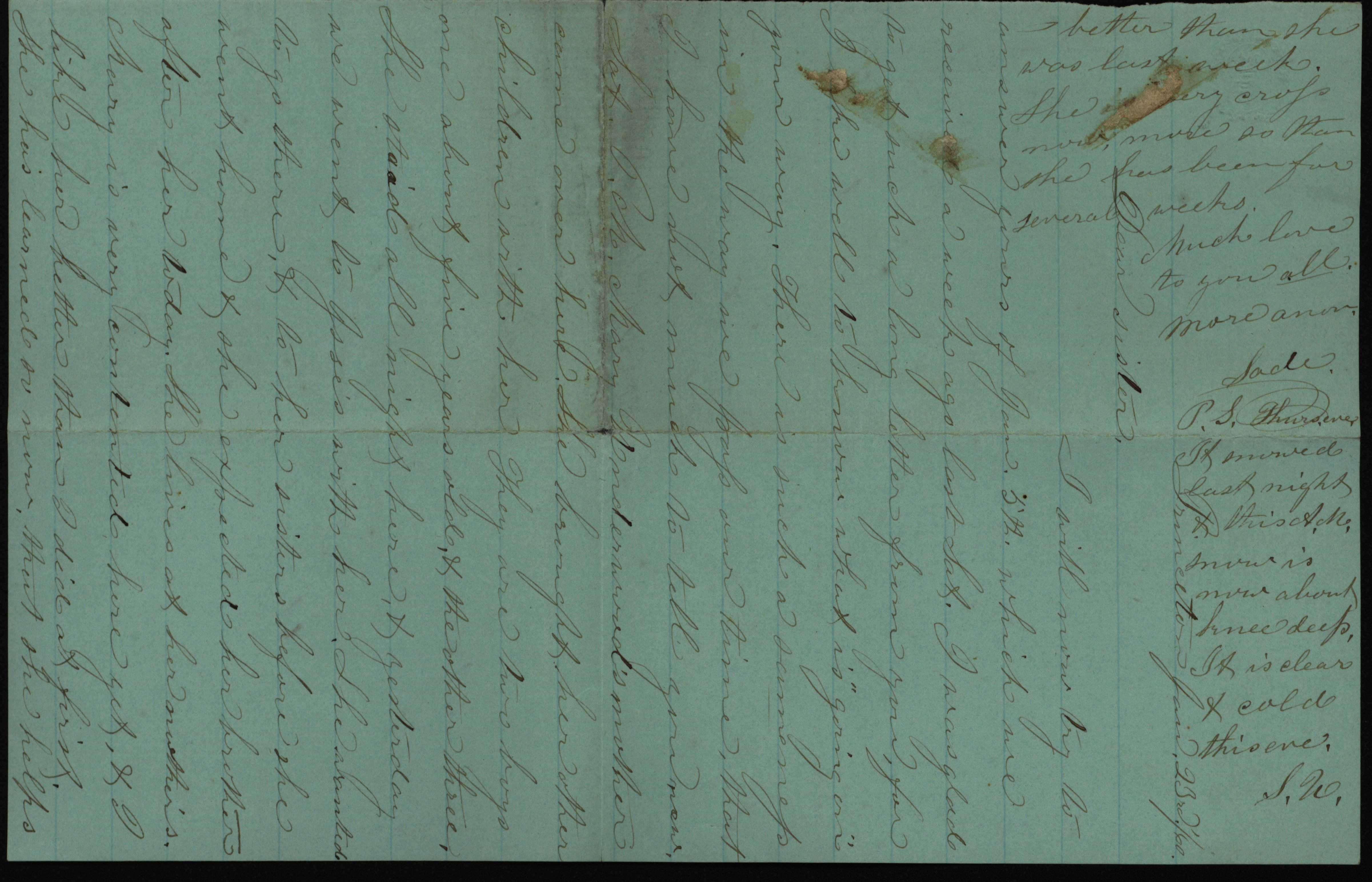 - "Letter from Sade to "Dear sister," January 23, 1860", Sarah Underwood Papers, Iowa State University Library Digital Collections