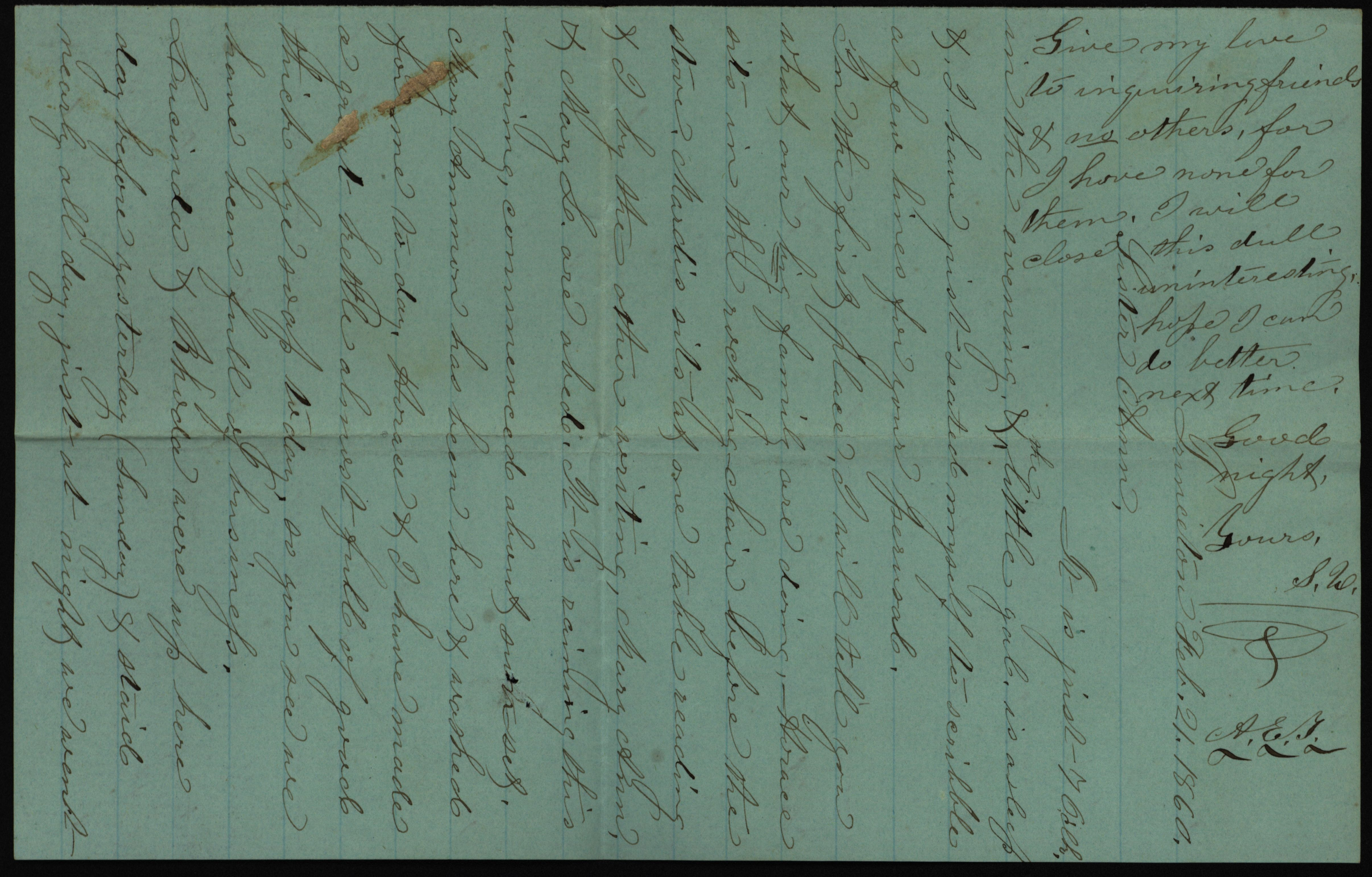 - Letter from S. U. to "Sister Ann," February 21, 1860