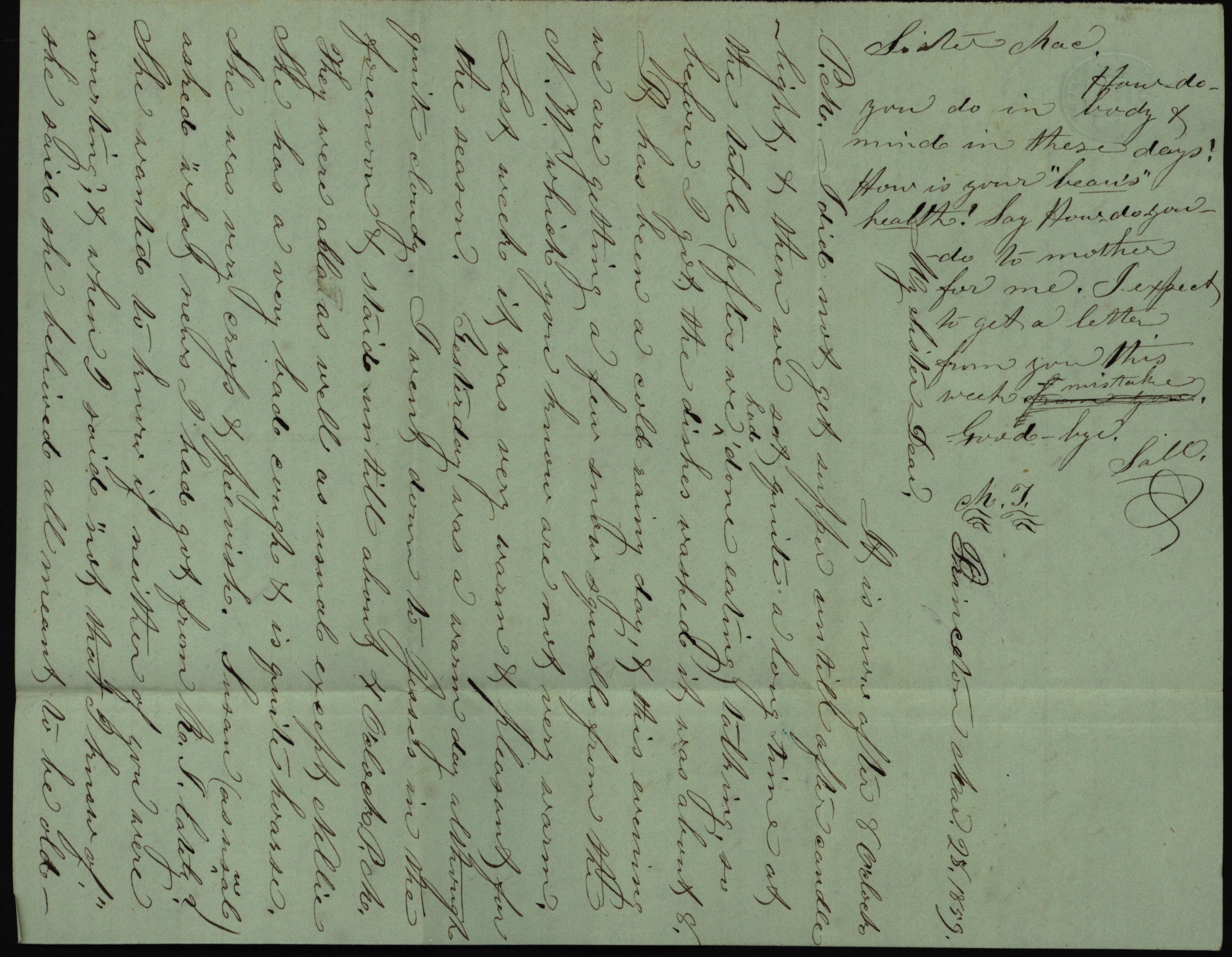 - Letter from Sally/Sal to "My Sister Dear" and "Sister Mae," March 28, 1859