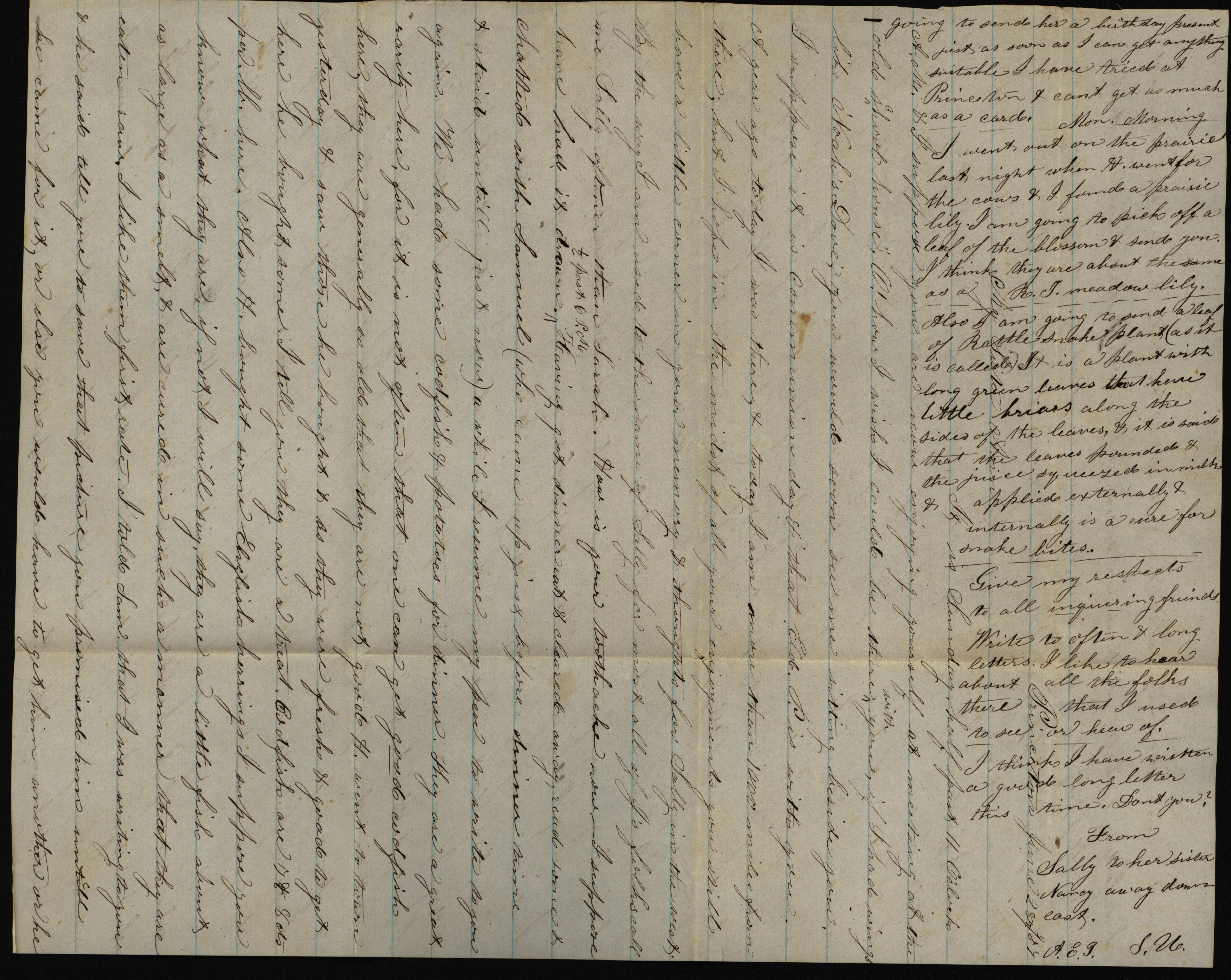- "Letter from Sally/S.U. to "My Sister Ann" and "Sister Nancy," June 28, 1857", Sarah Underwood Papers, Iowa State University Library Digital Collections