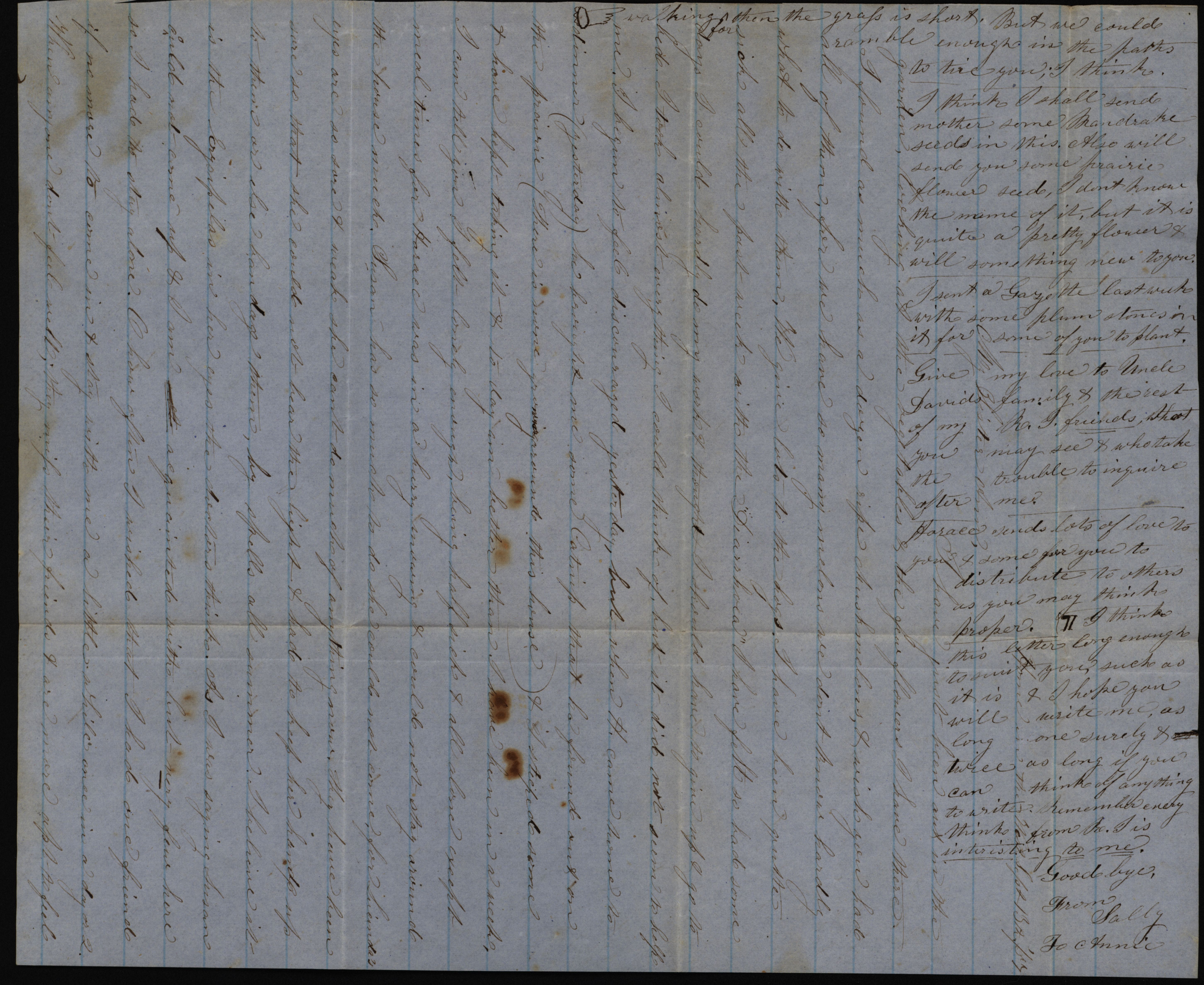 - "Letter from Sally to "My Sister Ann," September 13, 1857", Sarah Underwood Papers, Iowa State University Library Digital Collections