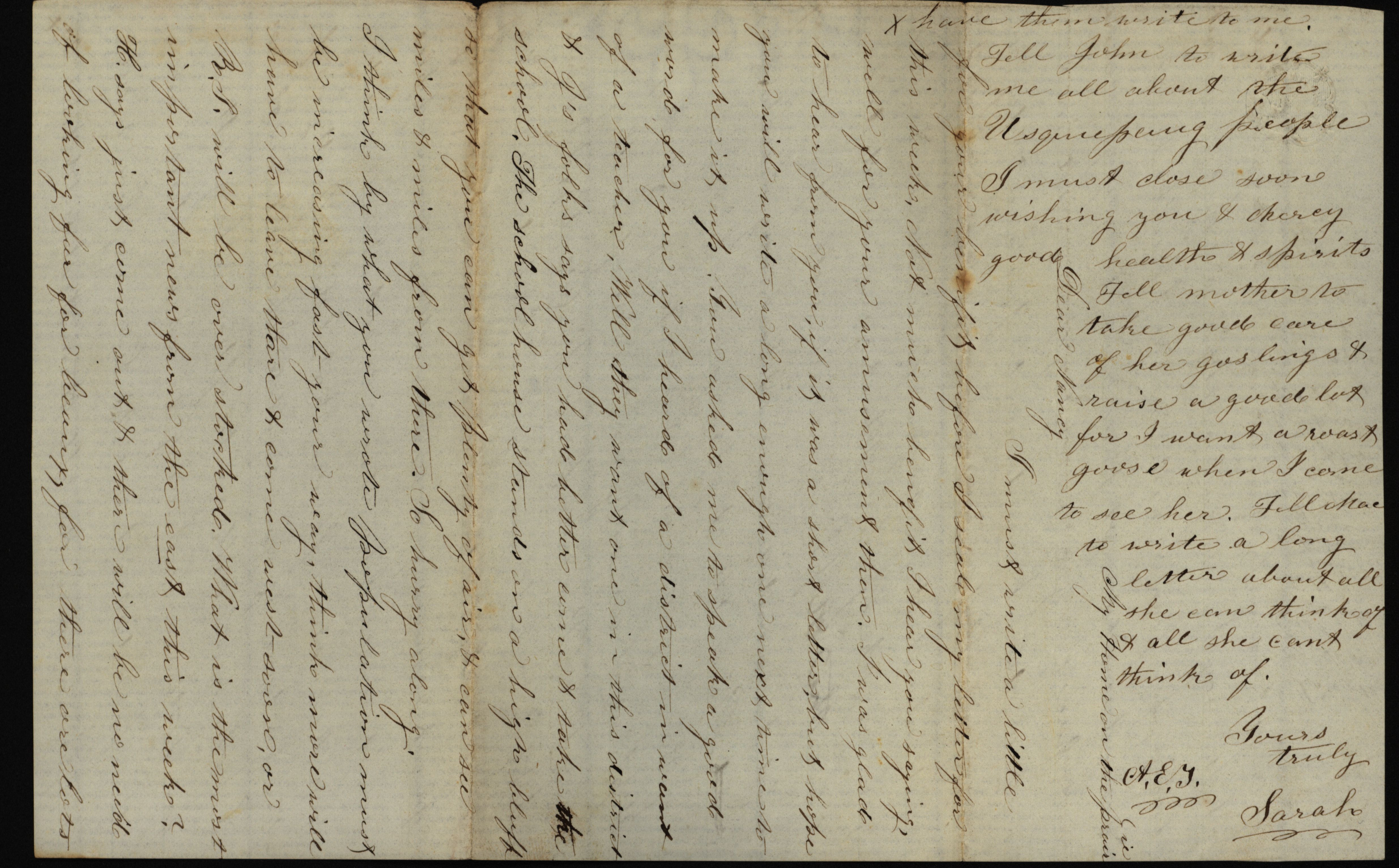 - "Letter from Sarah to "Dear Nancy"", Sarah Underwood Papers, Iowa State University Library Digital Collections
