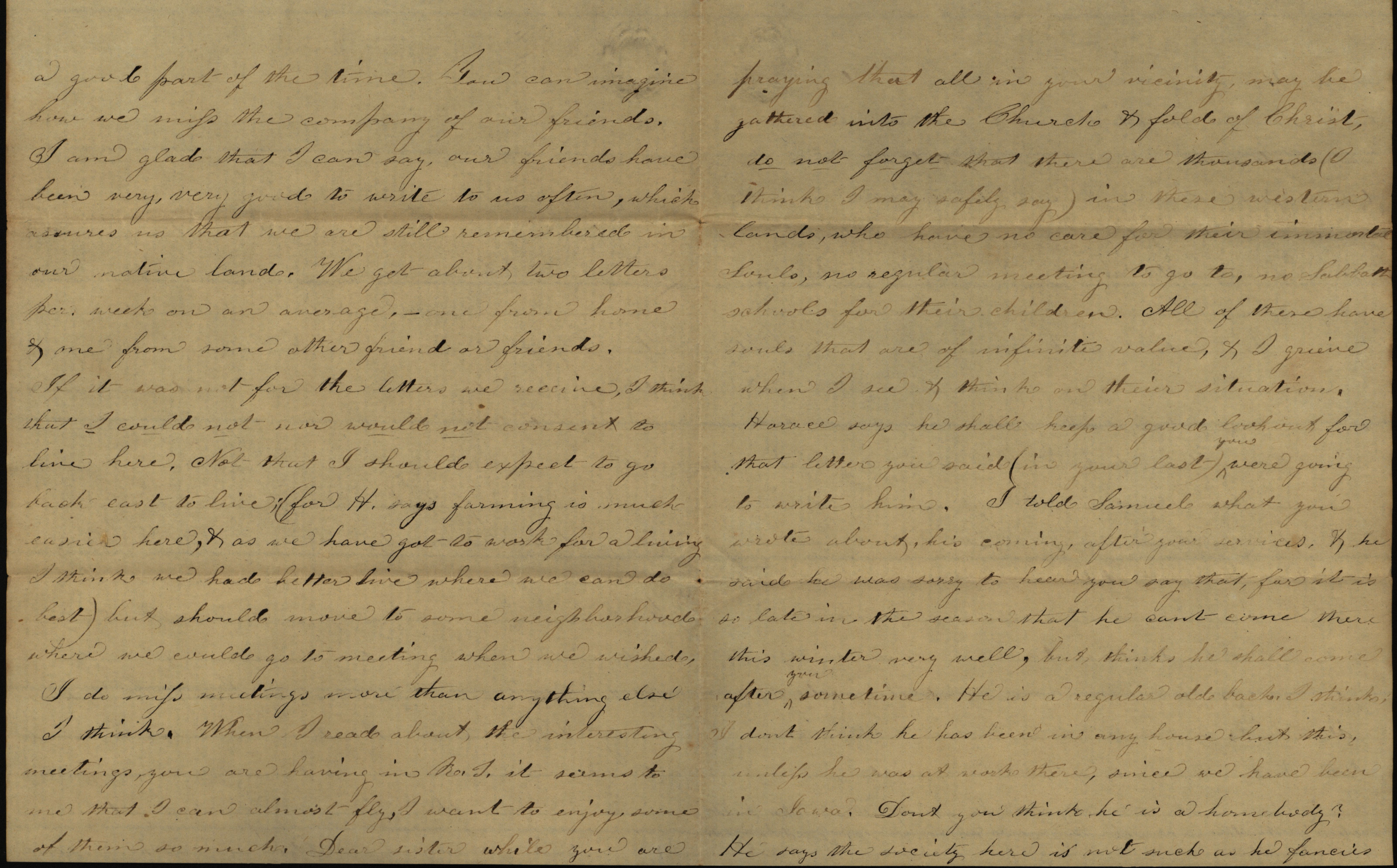 - Letter from Sarah Underwood to Ann E. Tefft and Mae Tefft, January 10, 1858 describing her isolation, her wish to attend church meetings, her dissatisfaction with the irreligiousness of people in Iowa, and requests for more letters from her family.