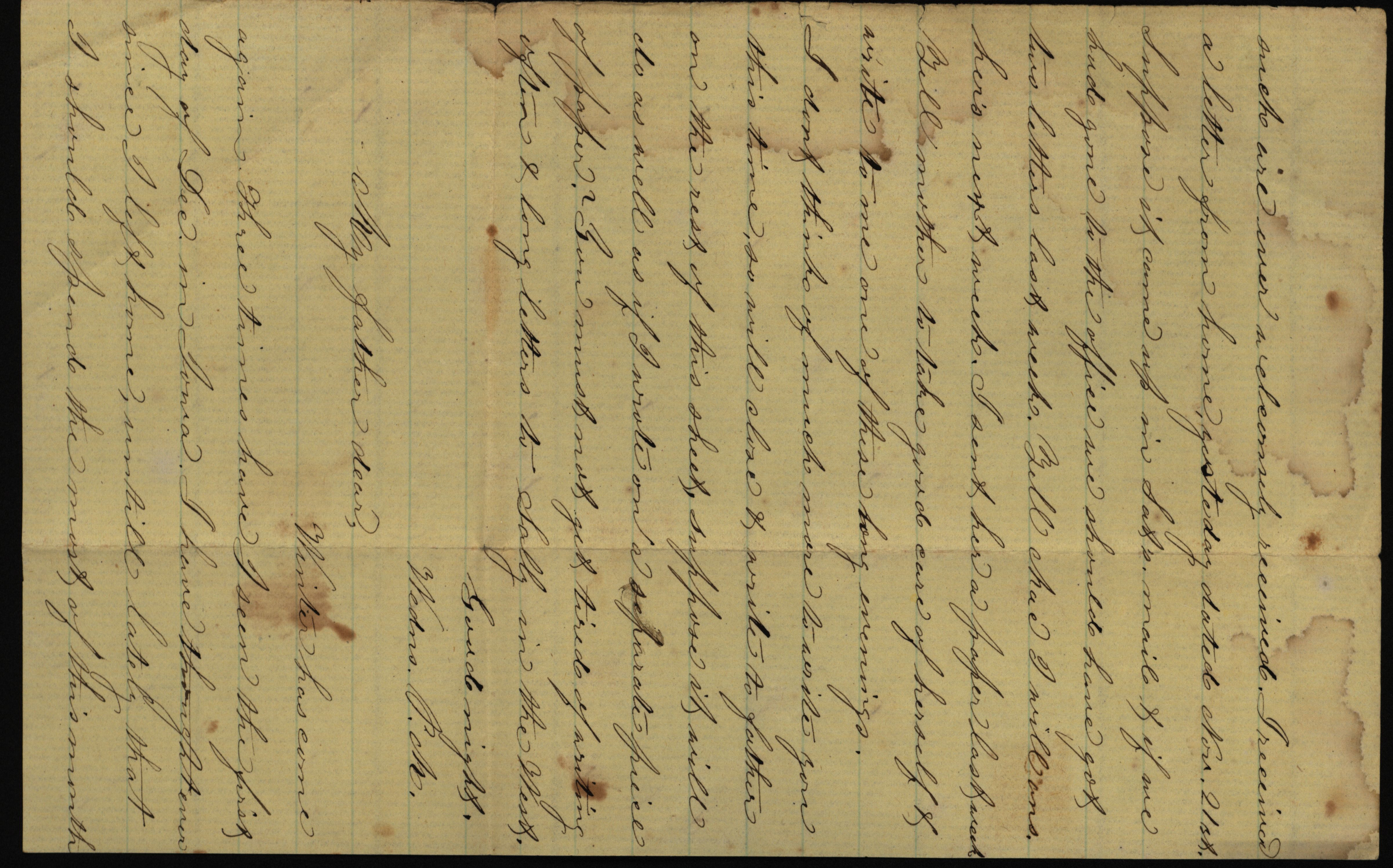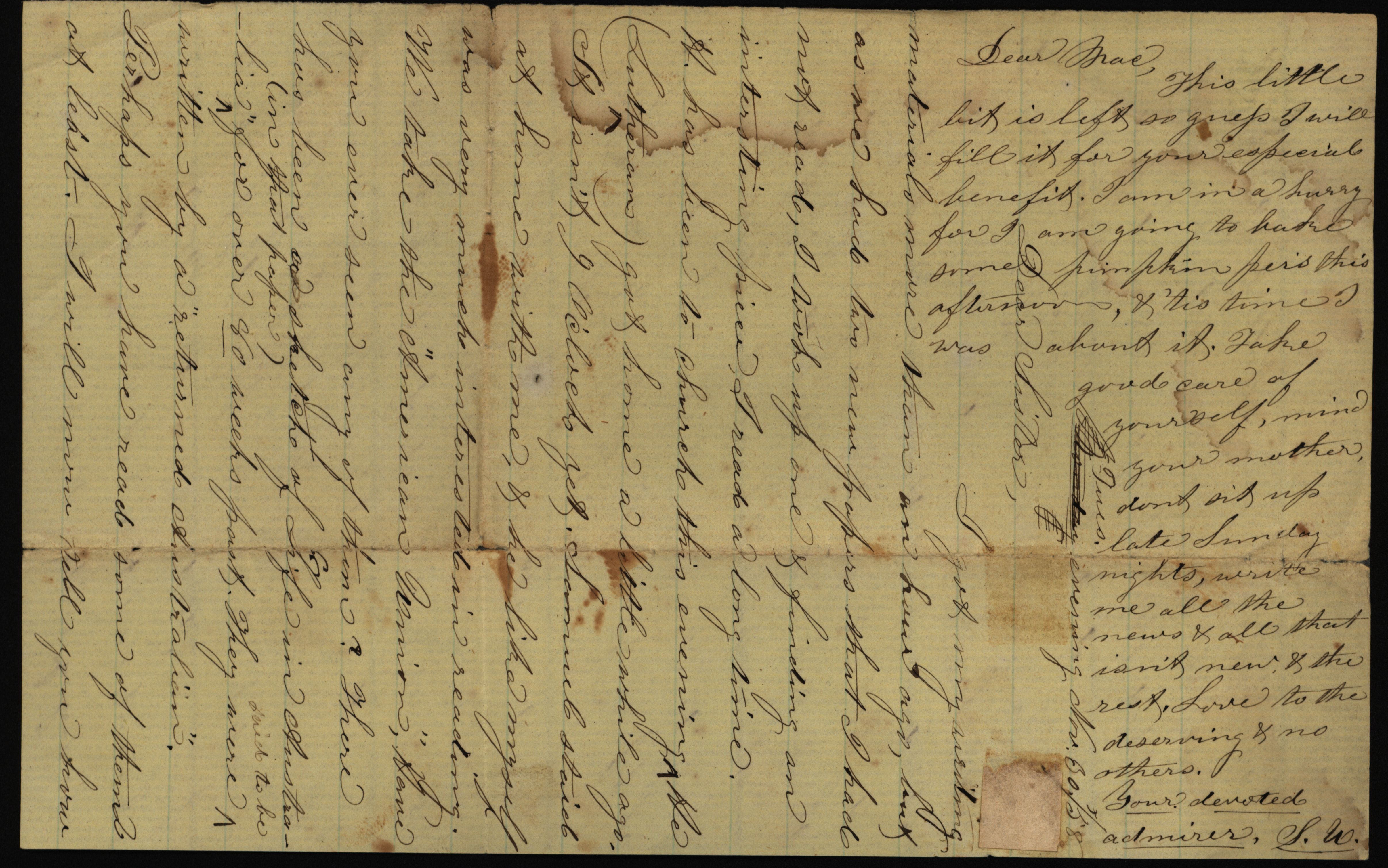 - Letters from Sarah/S. U./Sade to "Dear Sister," "Dear Mae," "My Father Dear," and "My Dear Sister," November 30, 1858 and December 1858