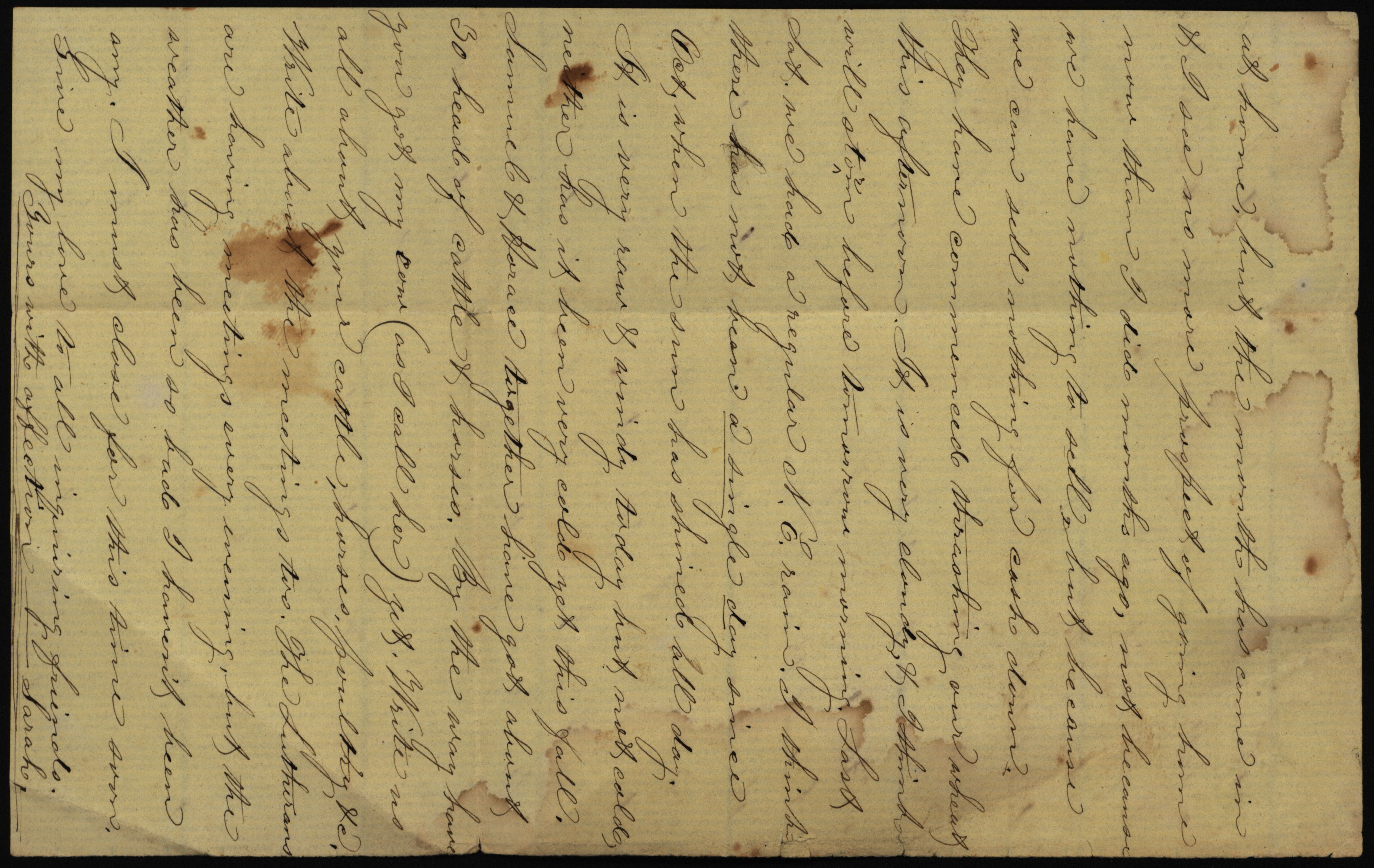 Letters from Sarah/S. U./Sade to "Dear Sister," "Dear Mae," "My Father Dear," and "My Dear Sister," November 30, 1858 and December 1858 Item Info