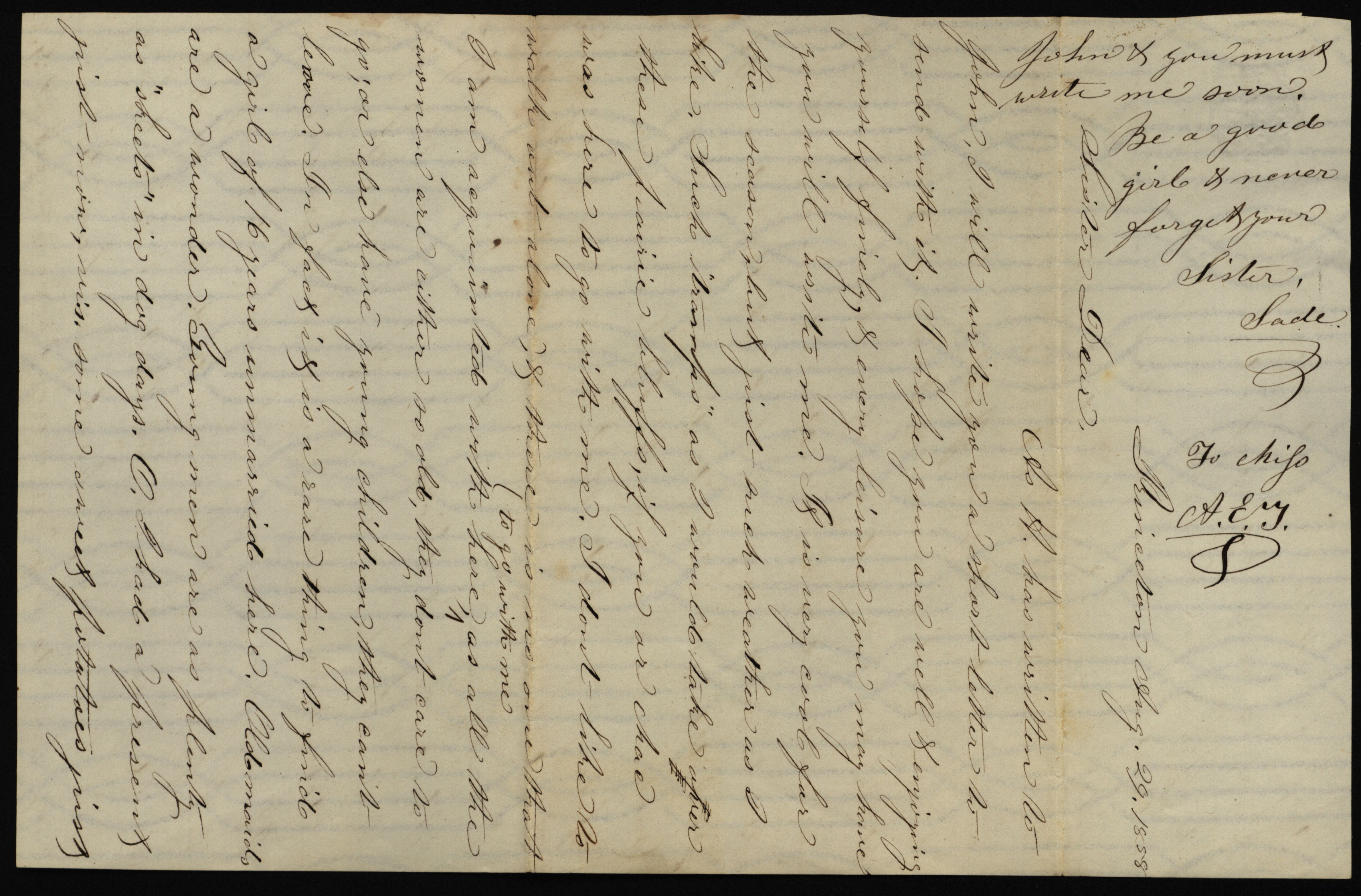 - "Letter from Sade to "Sister Dear," August 29, 1858", Sarah Underwood Papers, Iowa State University Library Digital Collections