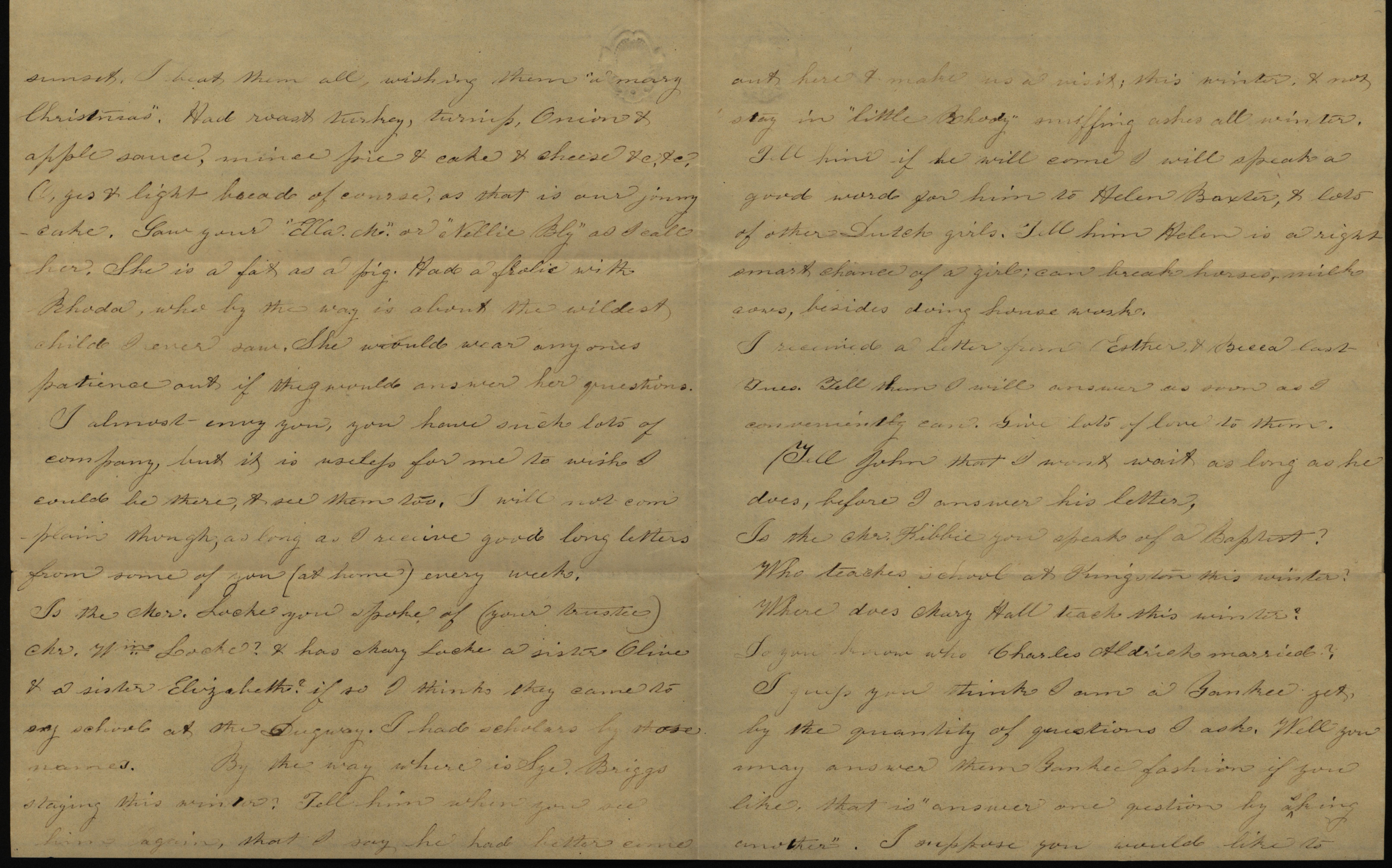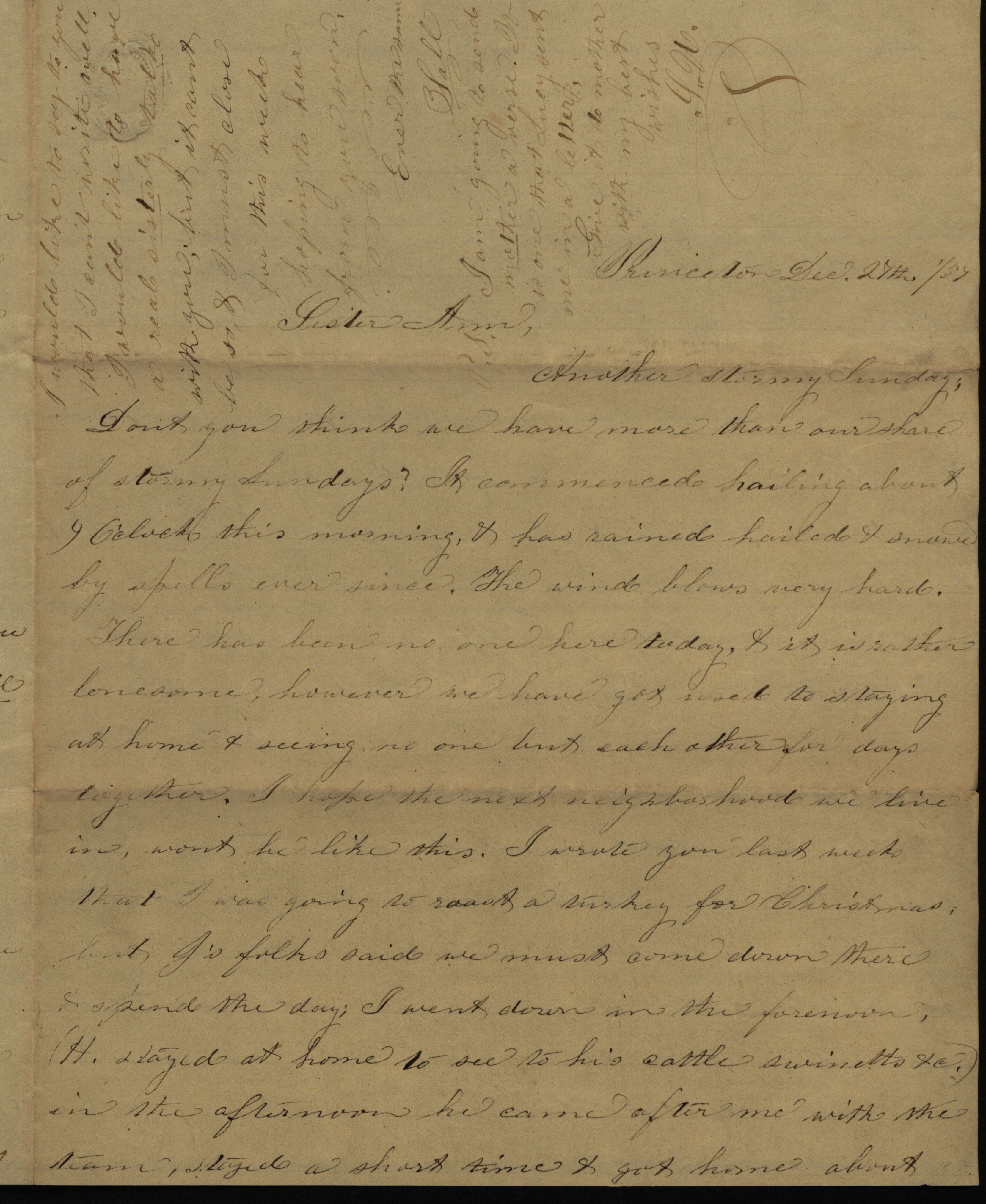 Letter from Sally to "Sister Ann" and "Sister Mercy," December 27, 1857 Item Info