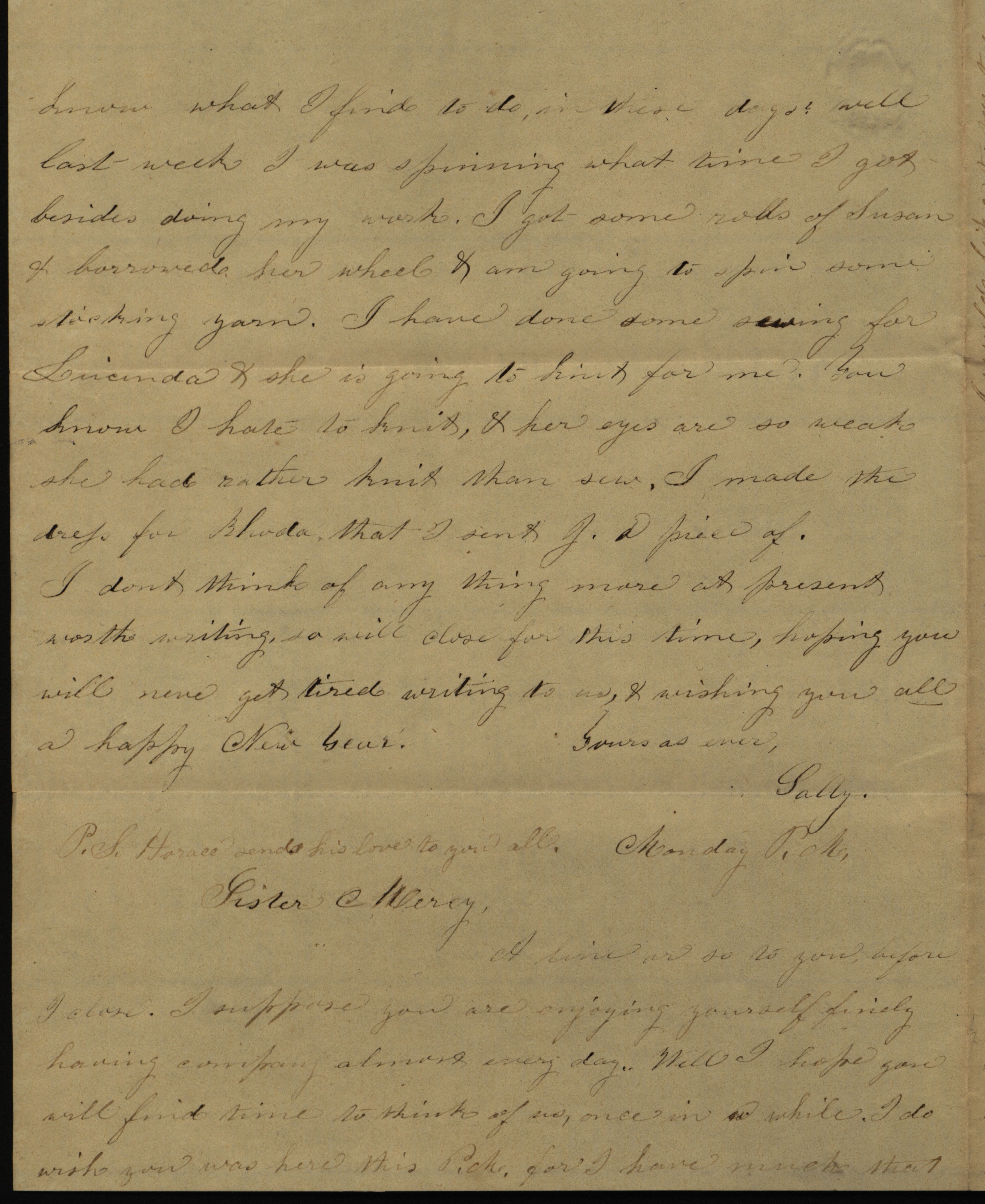 - "Letter from Sally to "Sister Ann" and "Sister Mercy," December 27, 1857", Sarah Underwood Papers, Iowa State University Library Digital Collections