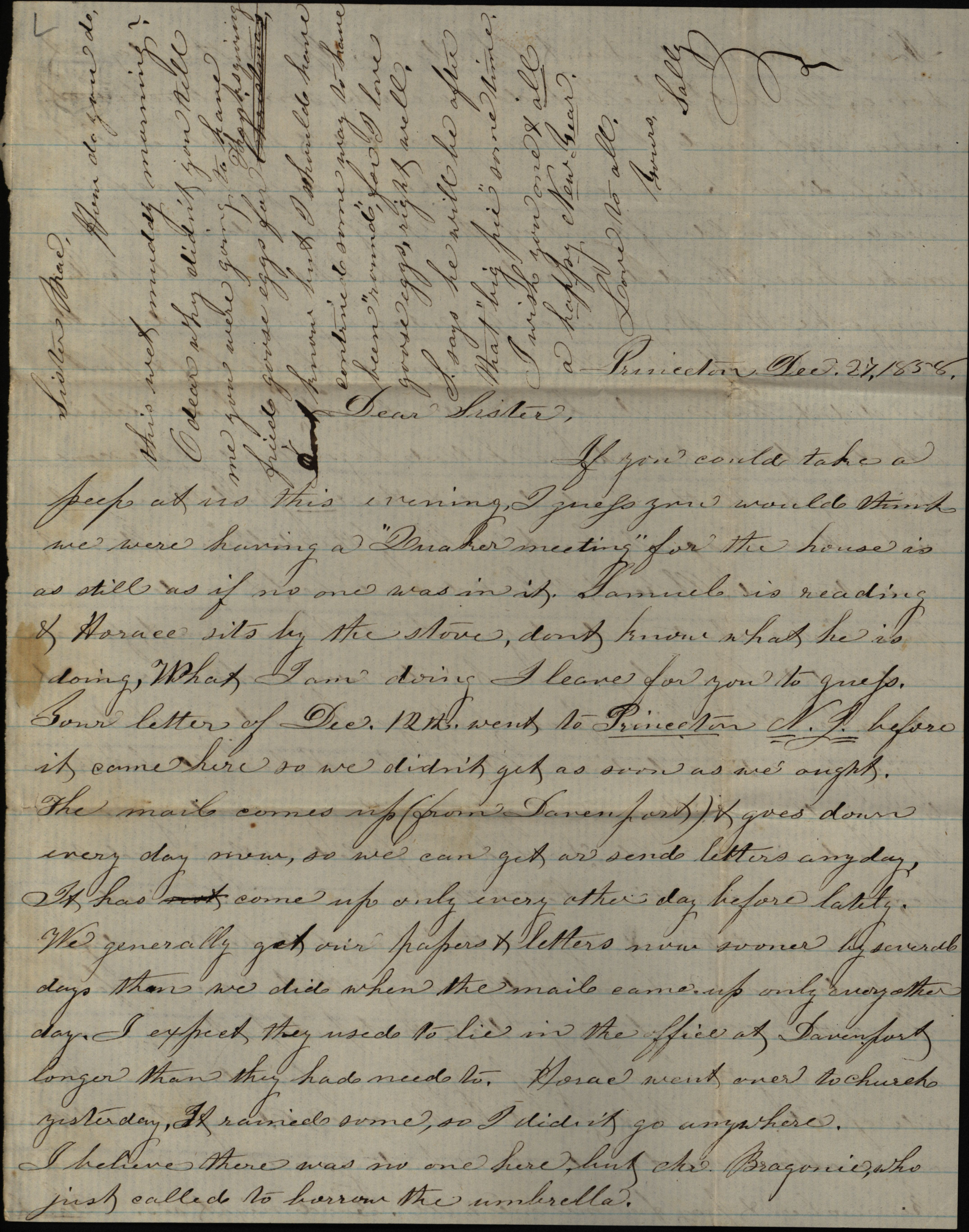 - Letter from Sally to "Dear Sister," December 27, 1858