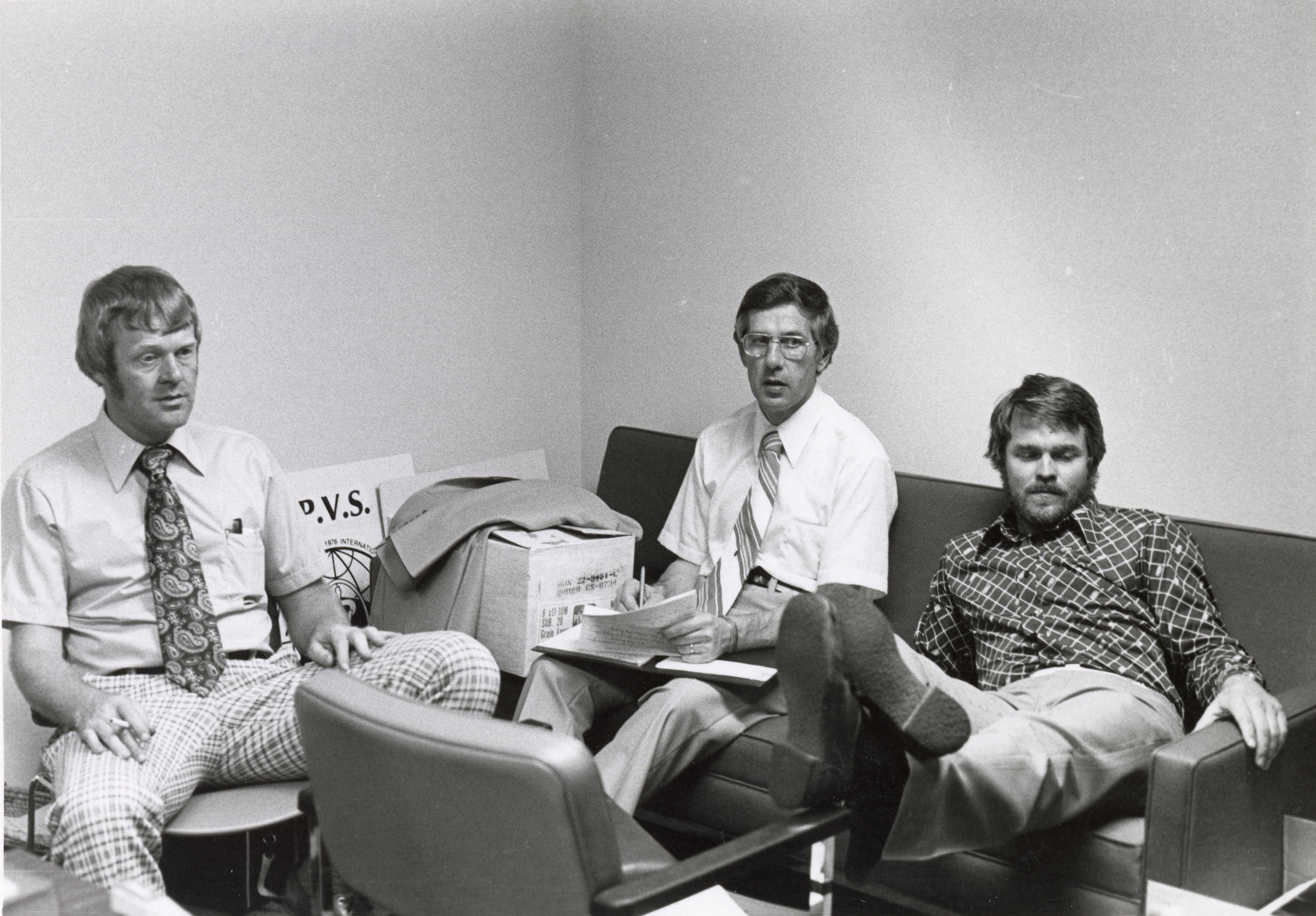 - Photograph of three men relaxing on the day of the 1976 International Pig Veterinary Society Congress