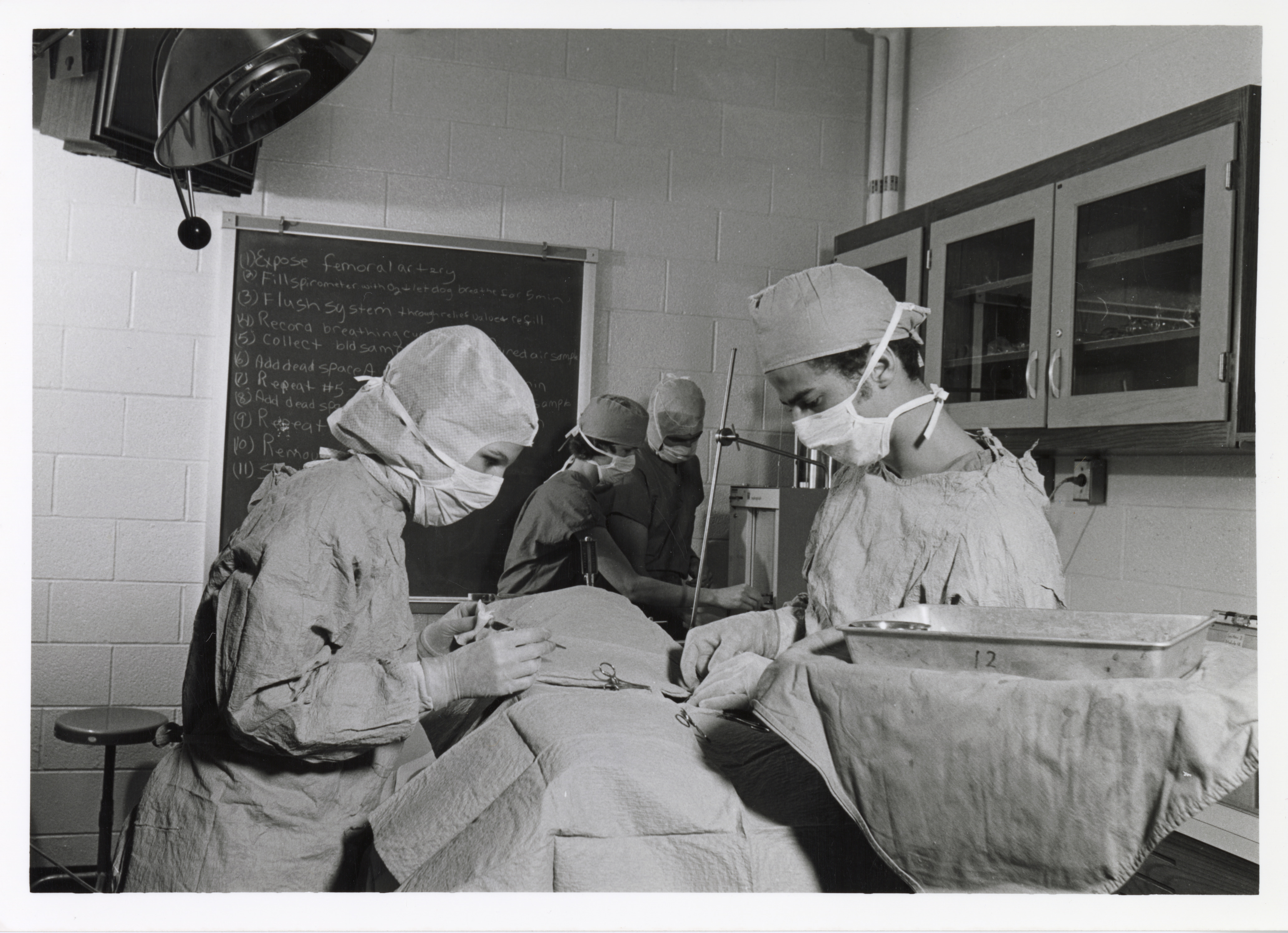 Photograph of students in physiology lab under direction of William Reece Item Info