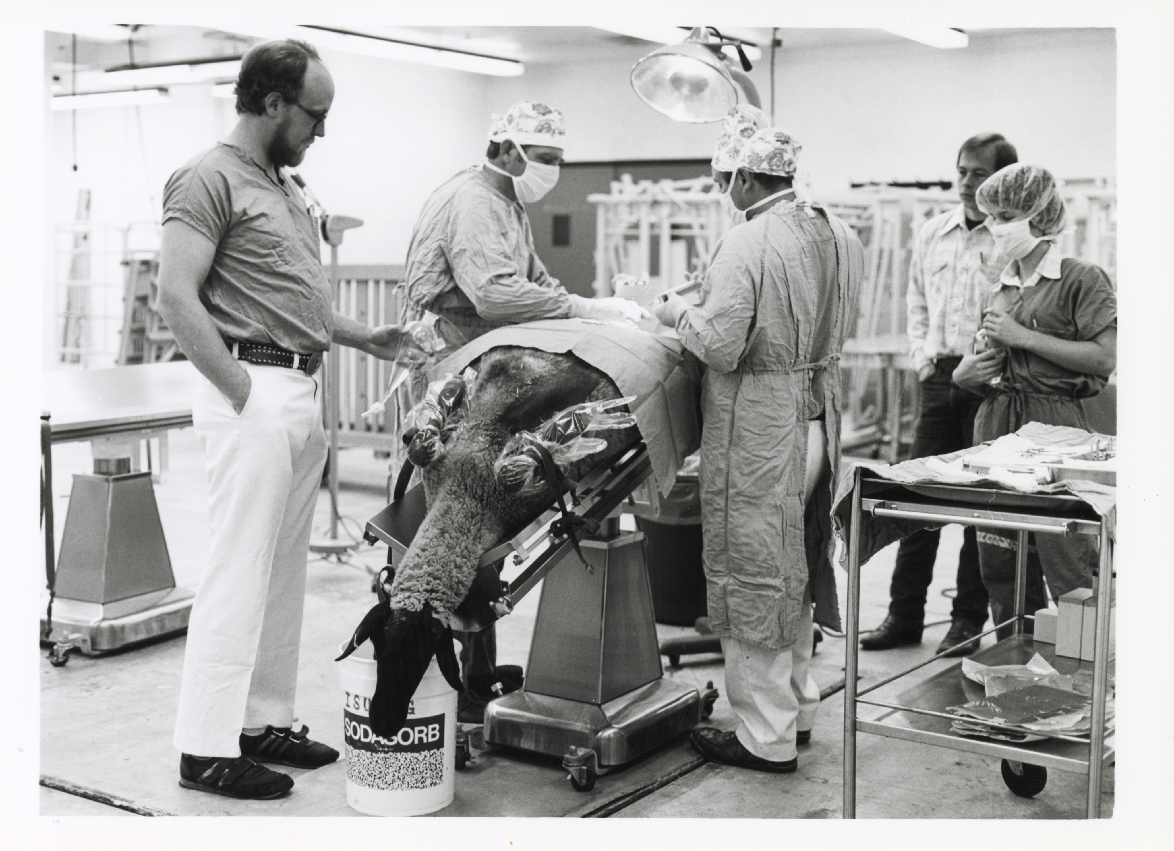- "Photograph of an embryo transfer procedure performed at the clinic by Steven Hopkins (far left), Lawrence Evans (second to left), and Richard Riese (middle)", Iowa State University College of Veterinary Medicine Collection, Iowa State University Library Digital Collections