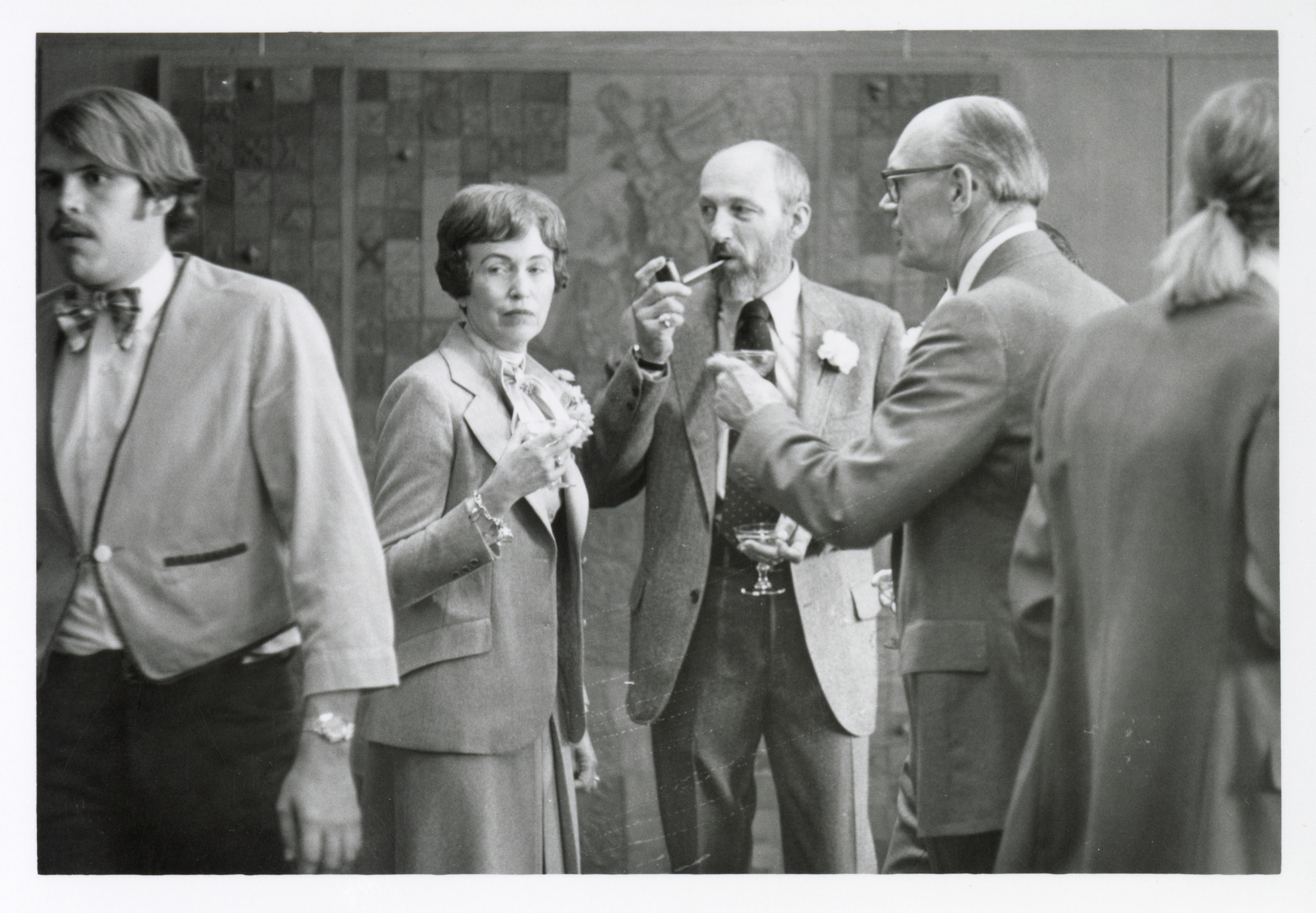 - Photograph of Doris Salsbury, Marion Kitzman, and John Salsbury at a reception in the Memorial Union