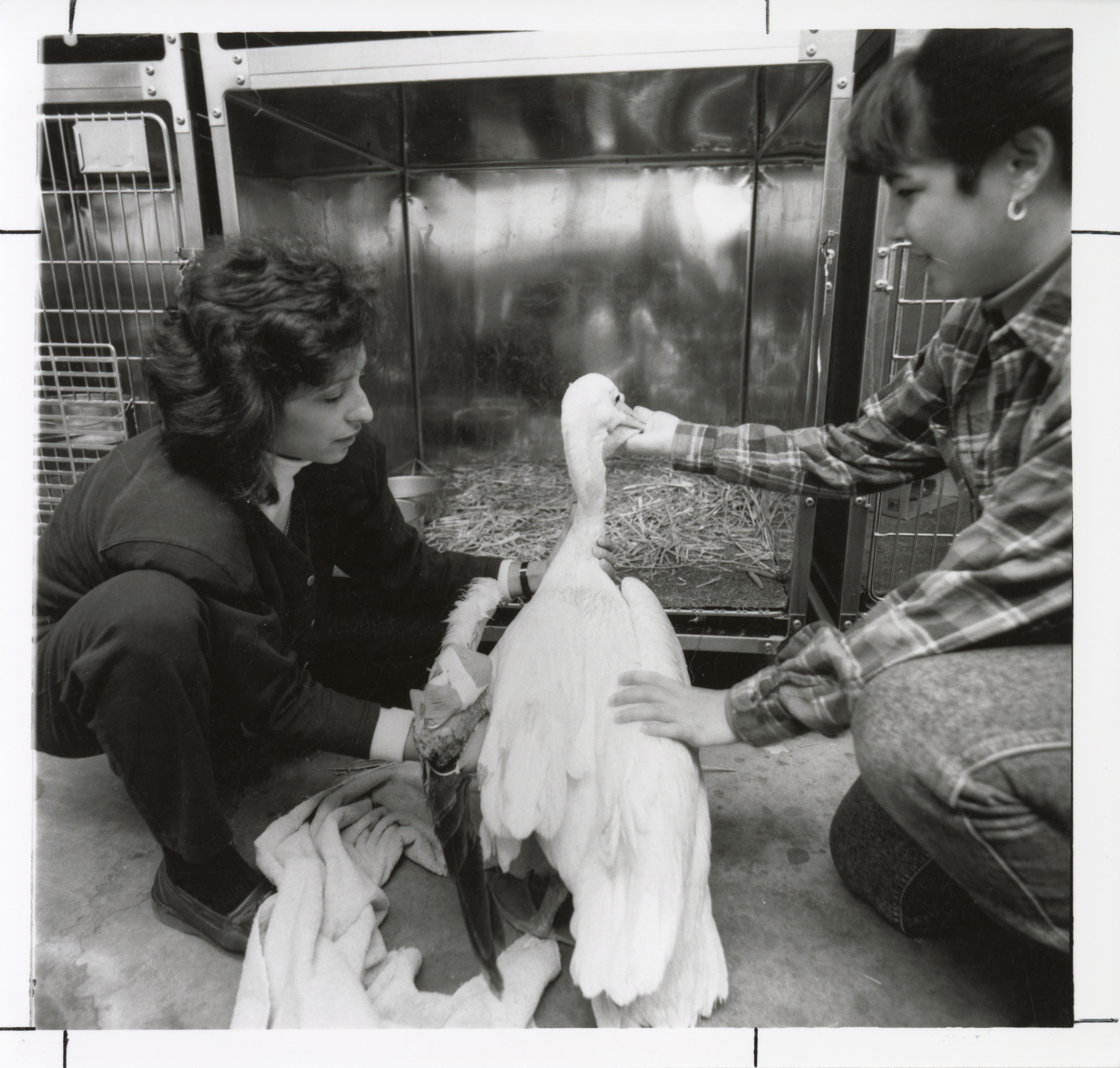 - "Photograph of Mary Ann Nieves (left) and a student working with a large bird in the Wildlife Care Clinic", Iowa State University College of Veterinary Medicine Collection, Iowa State University Library Digital Collections