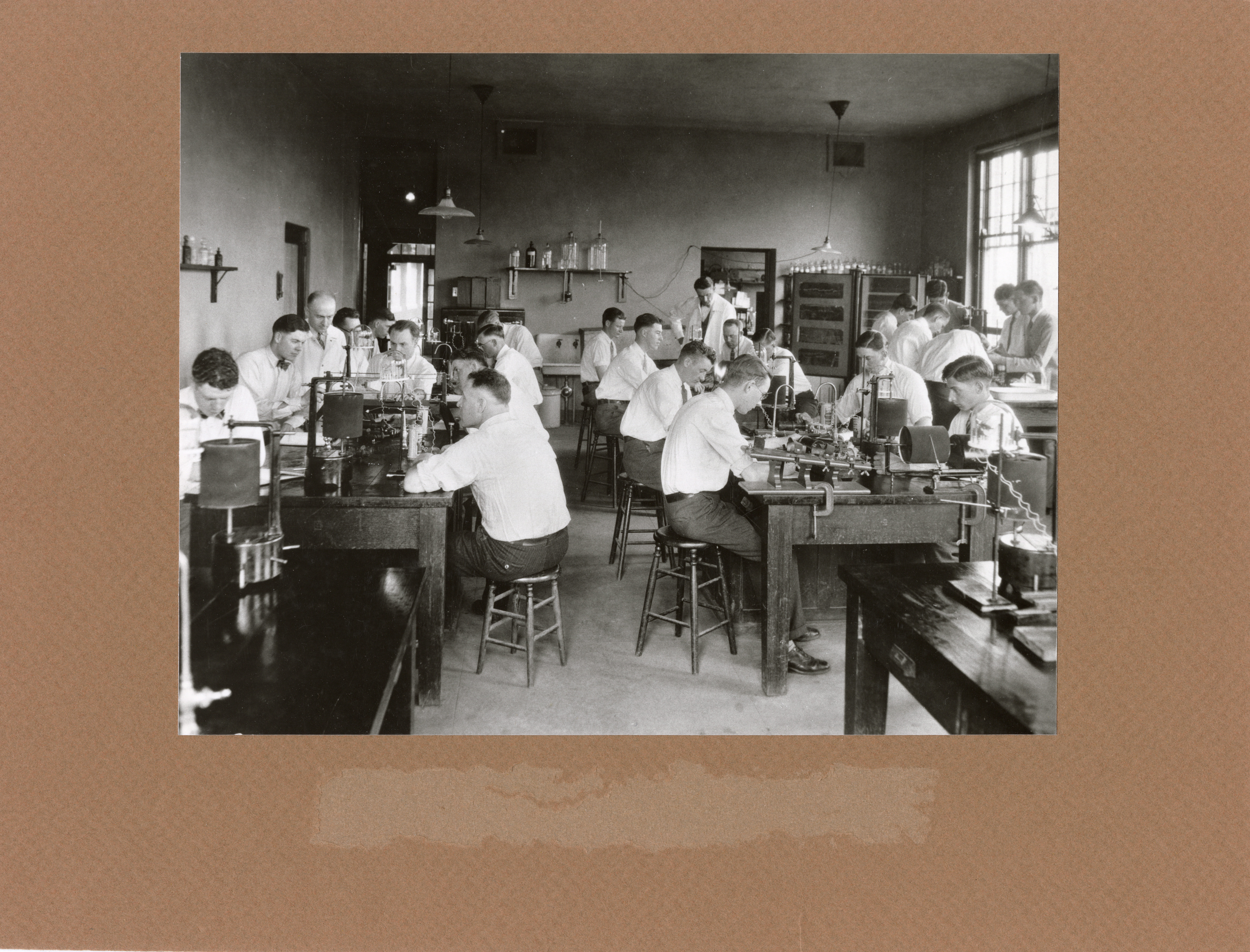 - Photograph of Henry Bergman and Hugh Dukes instructing veterinary students in physiology