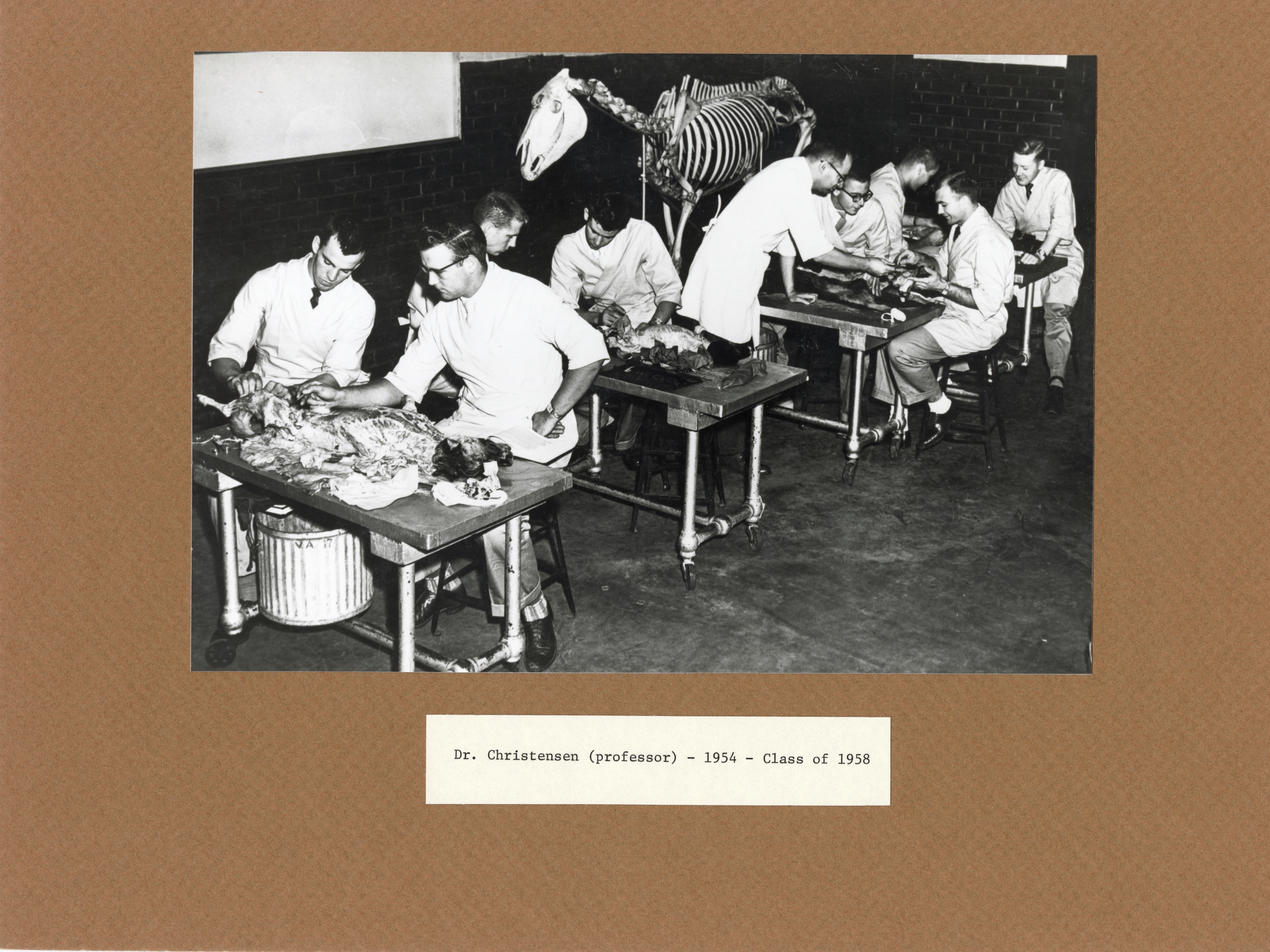 - Photograph of veterinary students in anatomy lab under the instruction of George Christensen