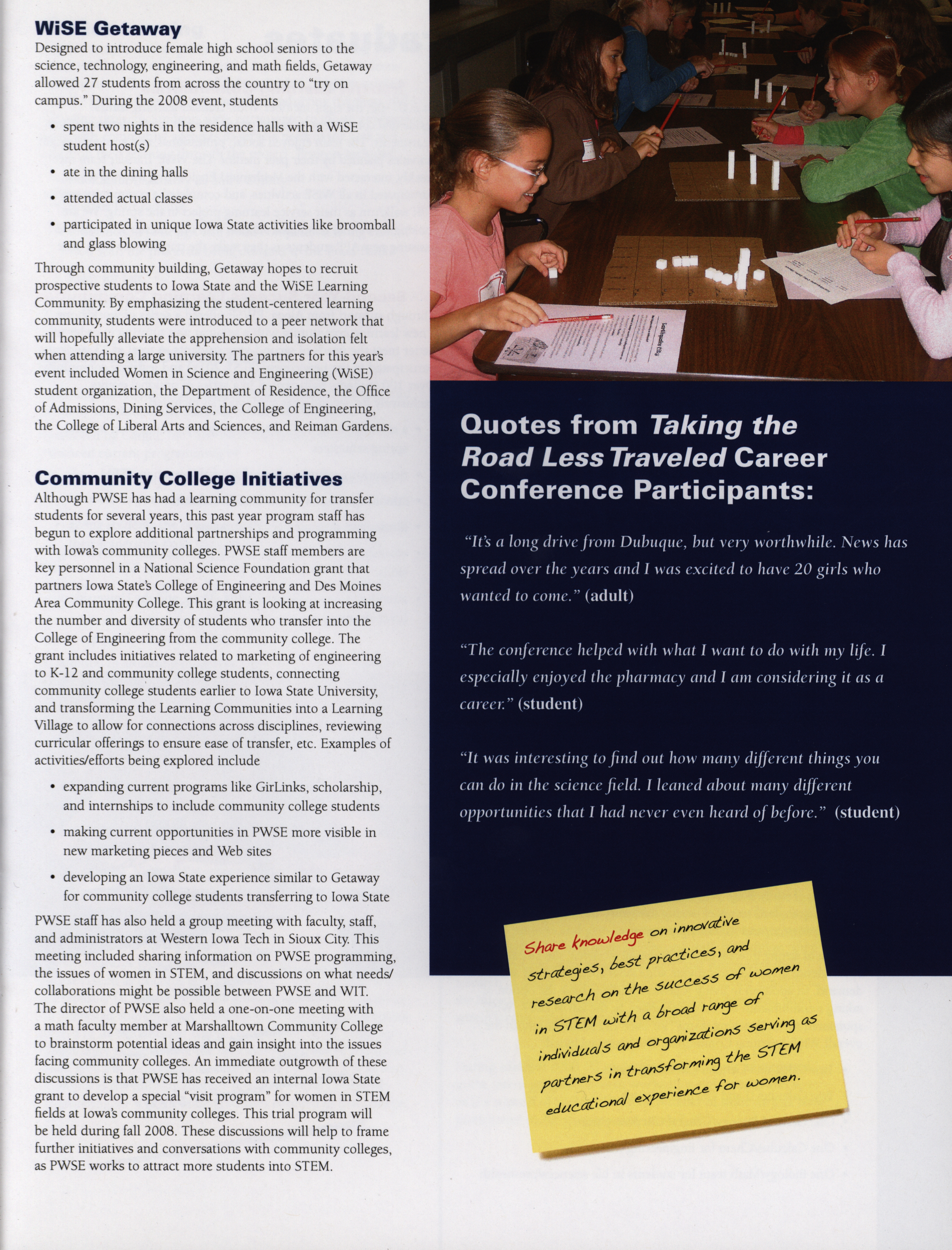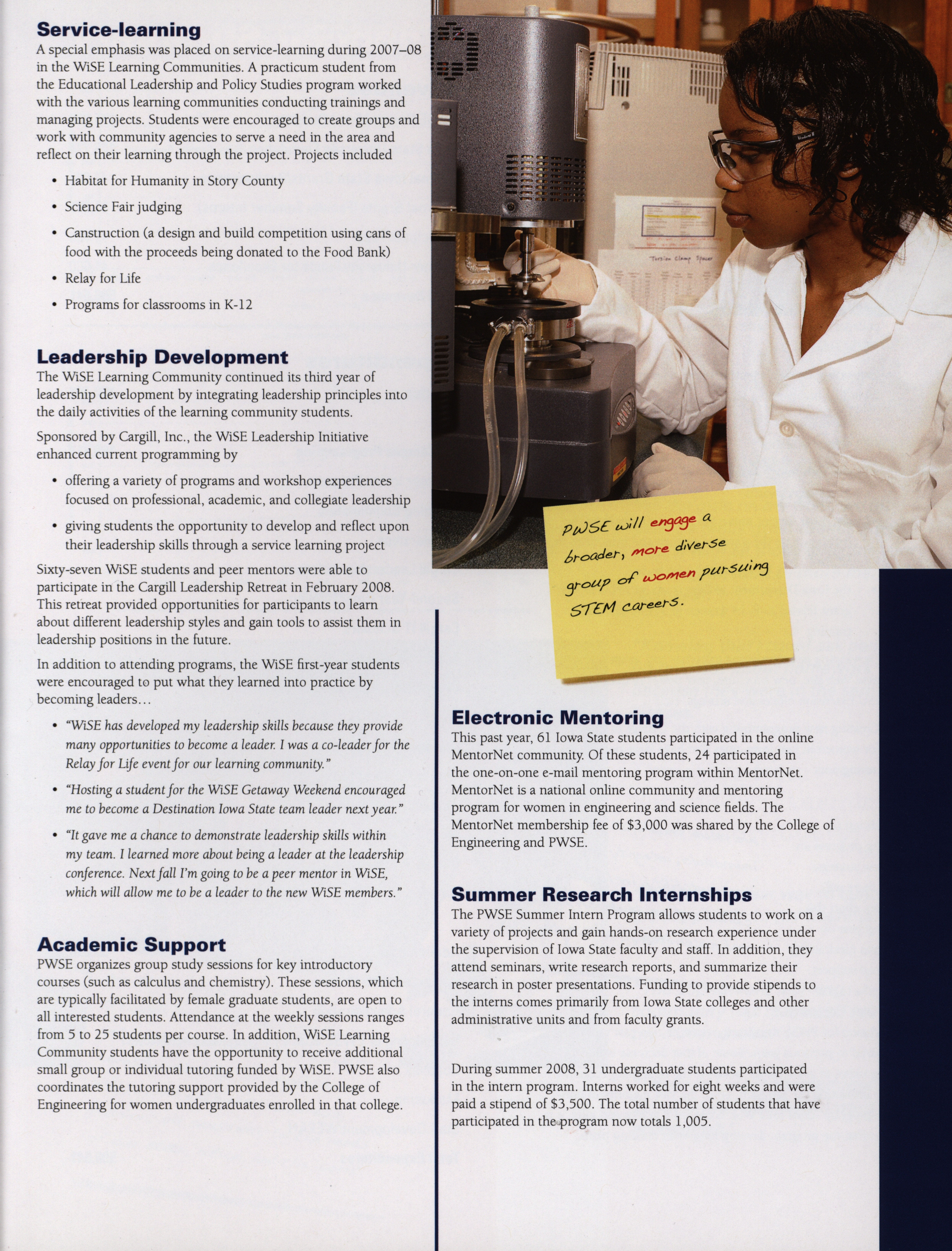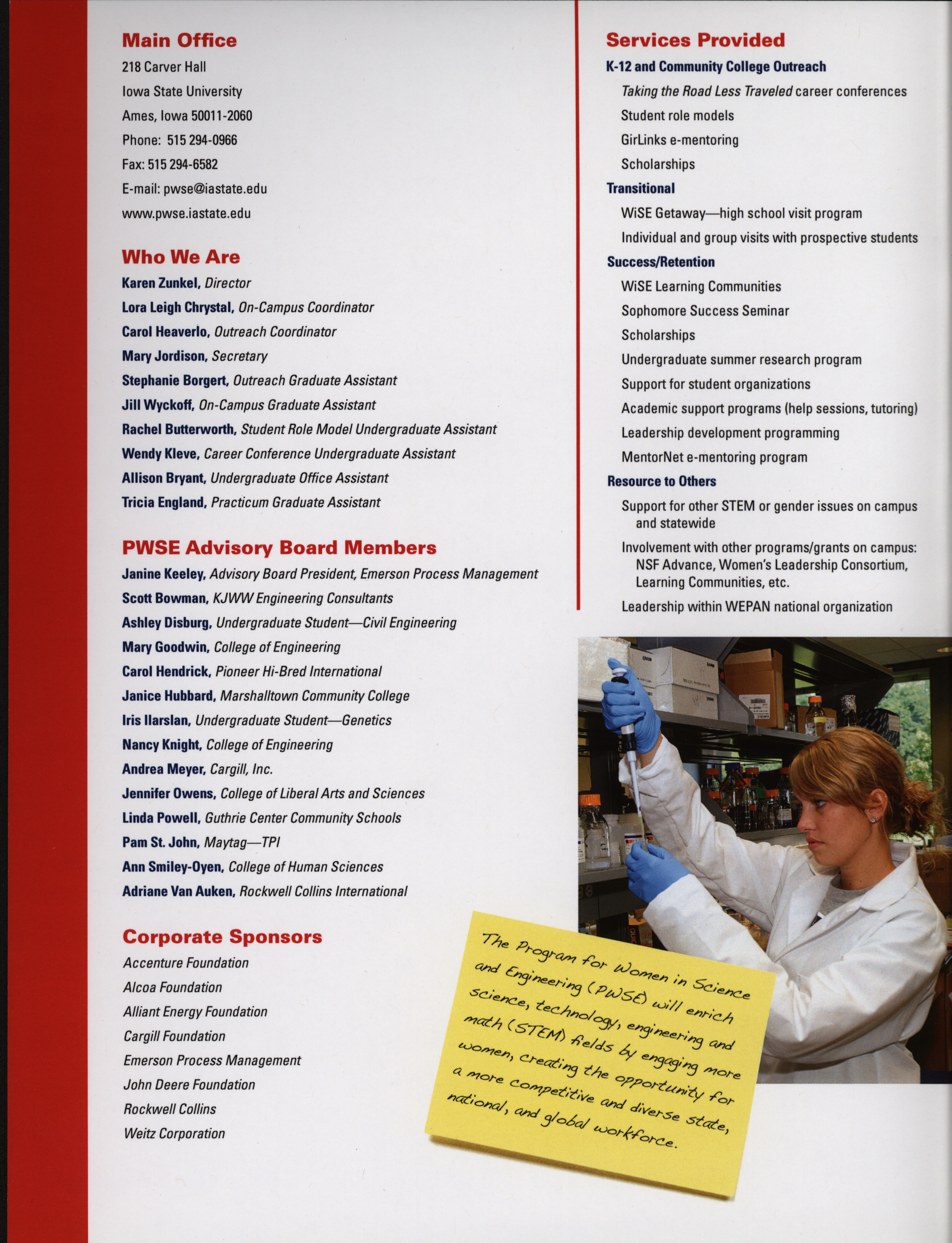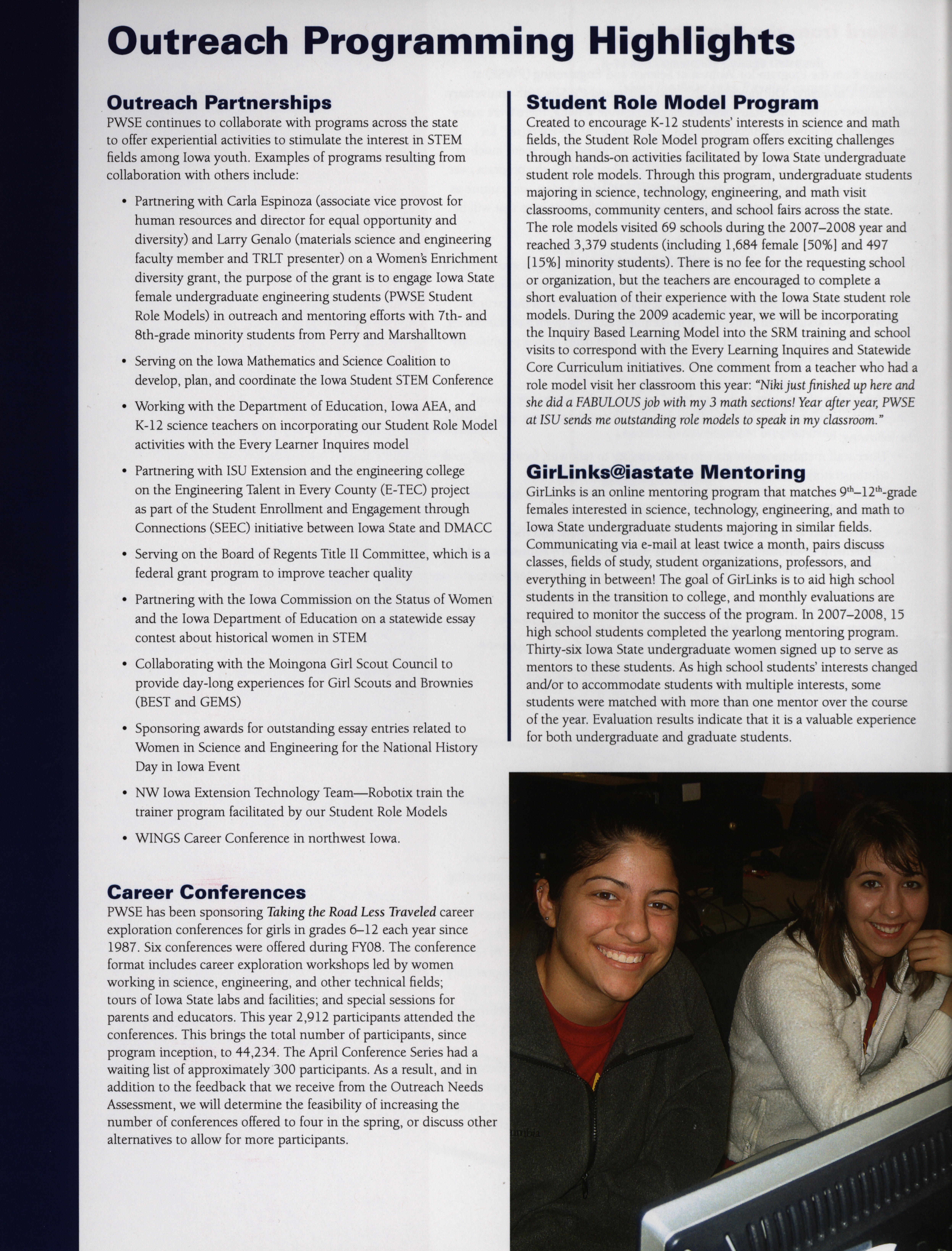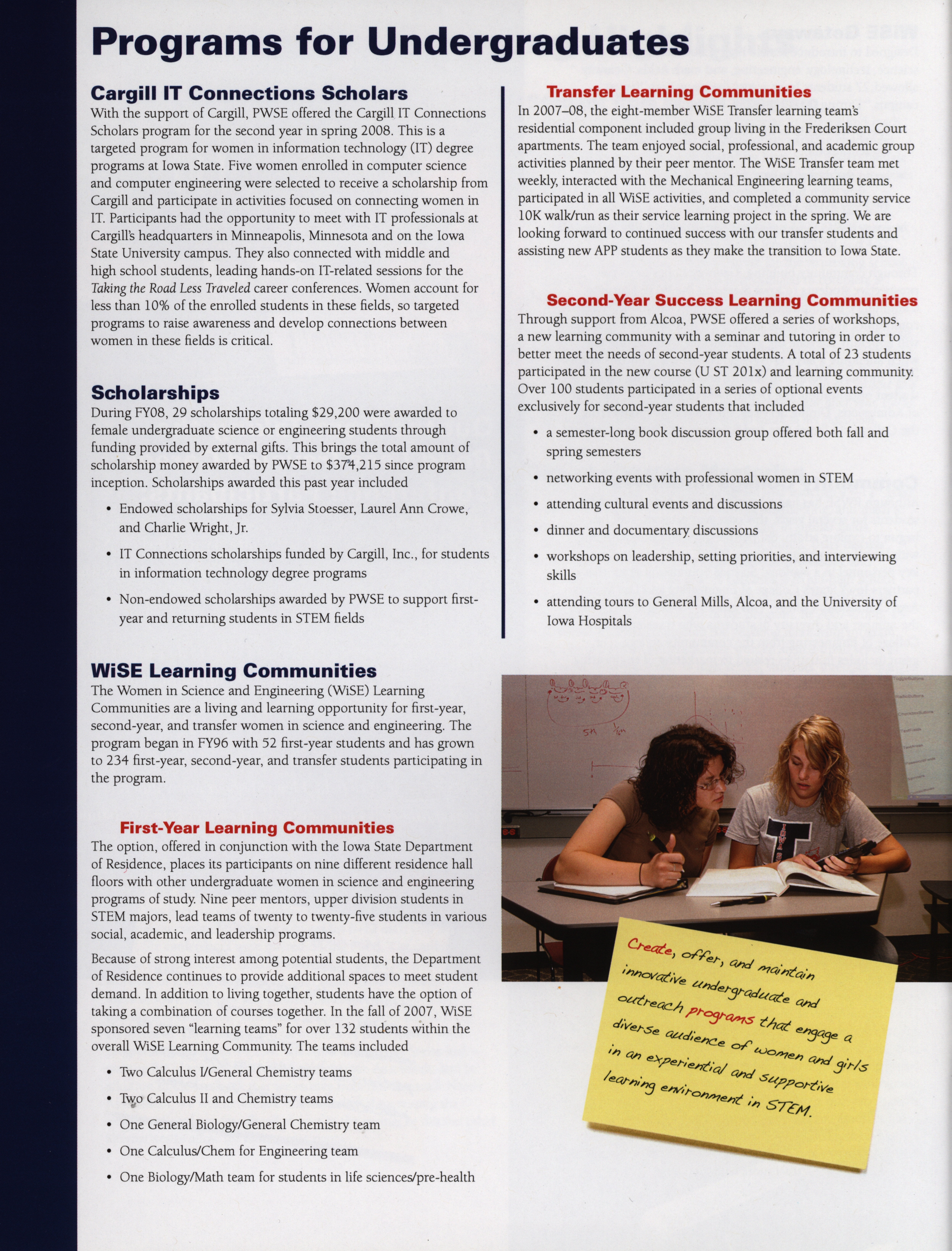 - "Program for Women in Science and Engineering annual report, 2008", We Are ISU Student Life Photographs, Iowa State University Library Digital Collections