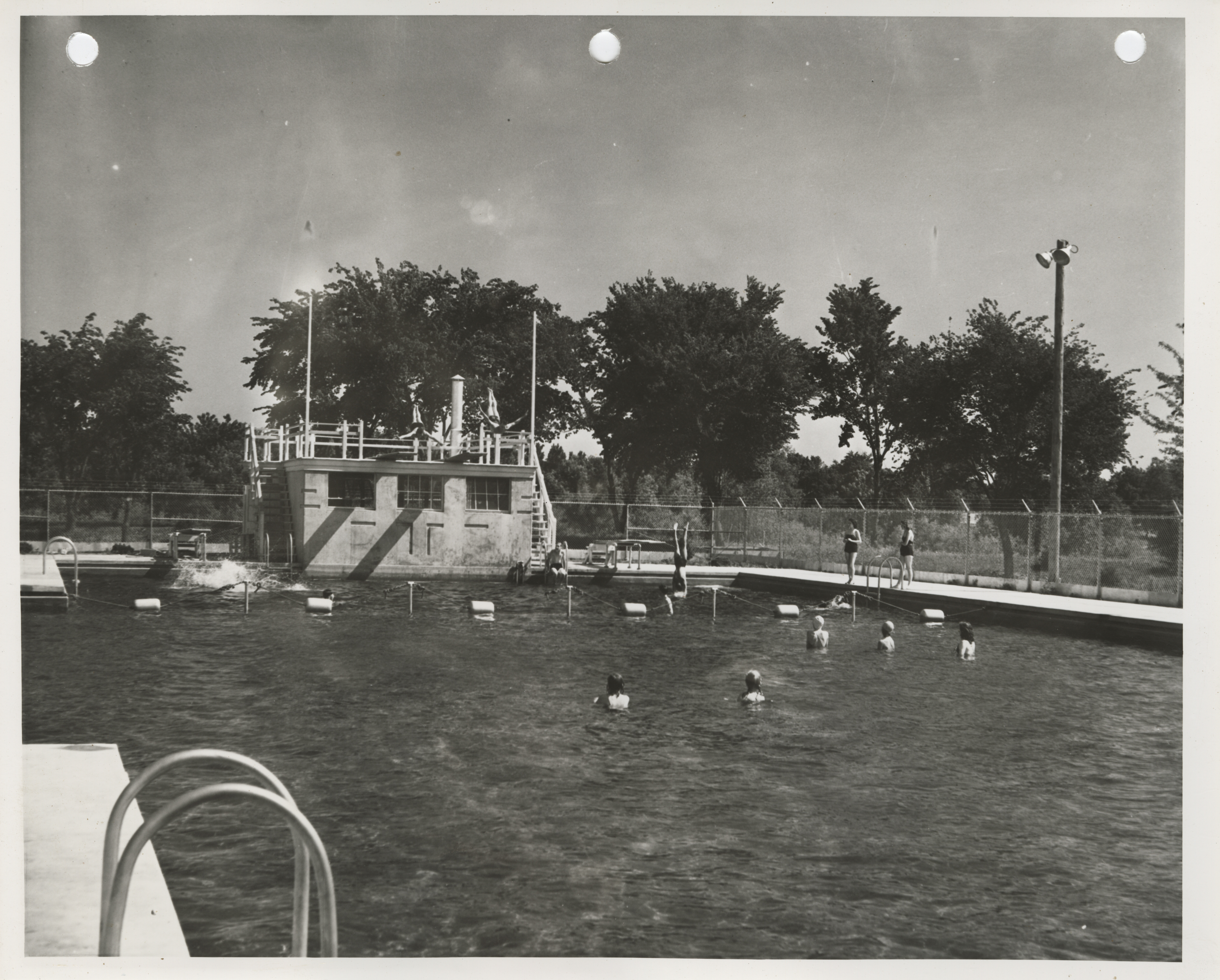 - Photograph of people using the municipal swimming pool in Spencer