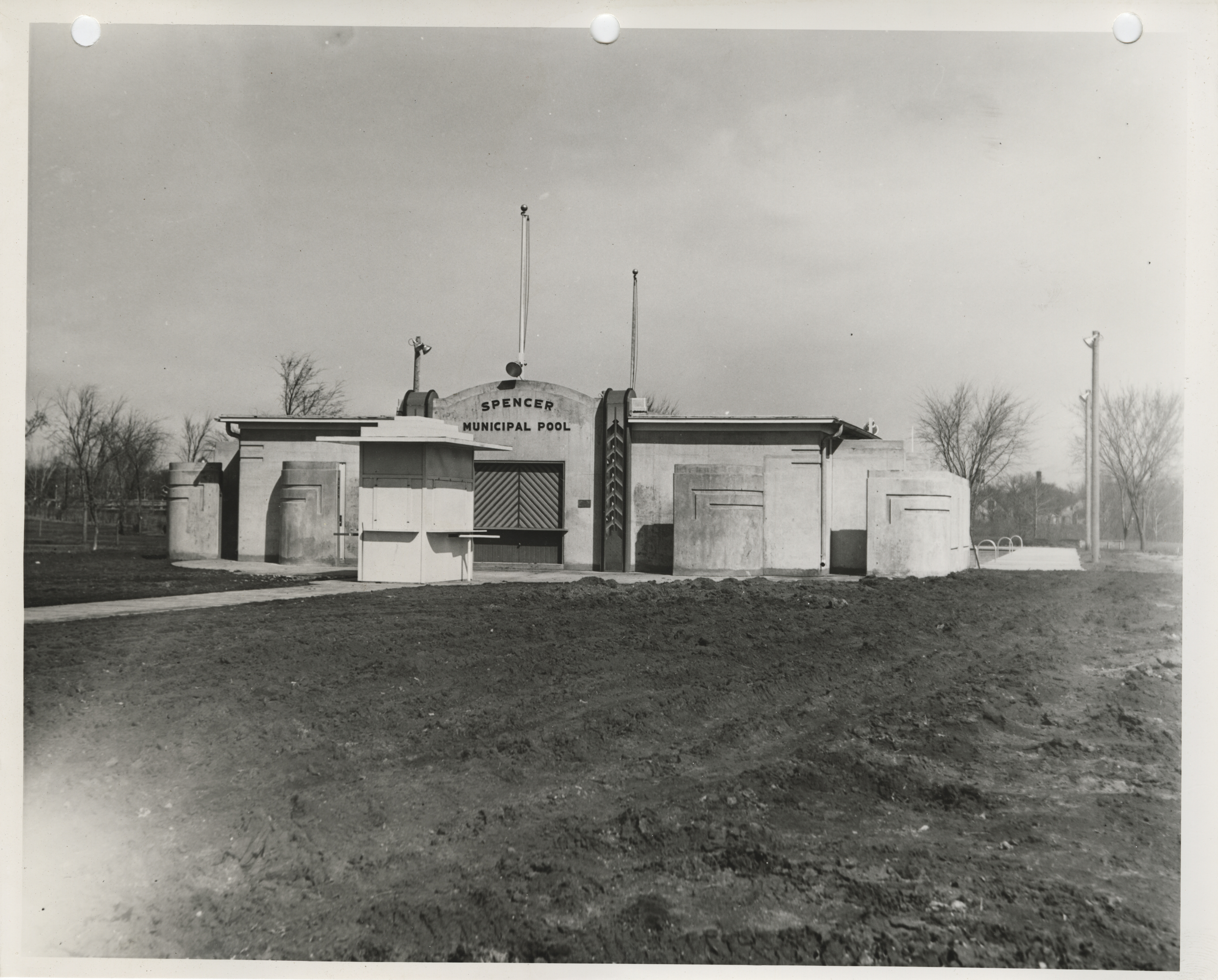 Photograph of the exterior view of the municipal swimming pool in Spencer Item Info