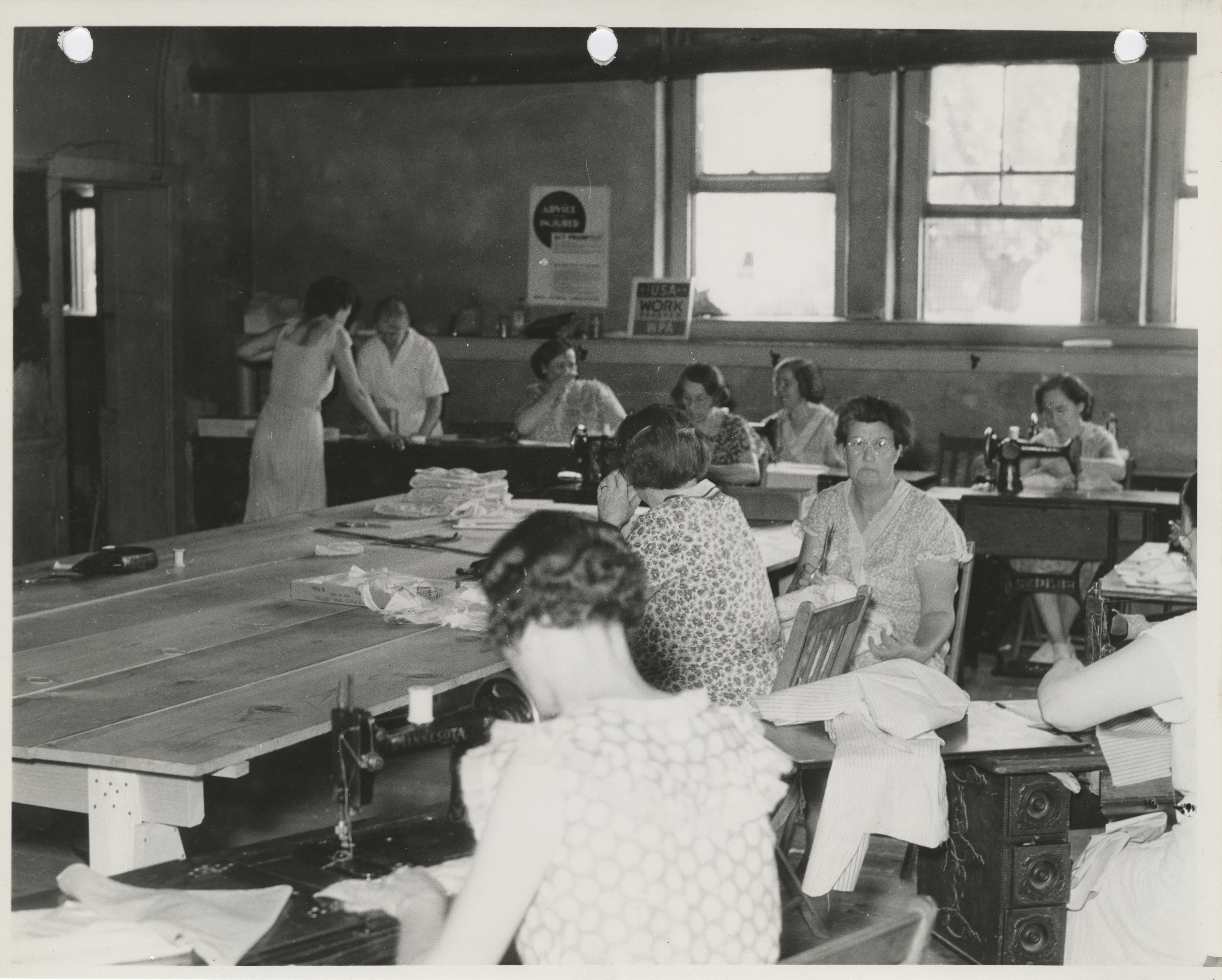 - "Photograph of women sewing in the sewing room in Albia", Work Projects Administration (Iowa) Photographs, Iowa State University Library Digital Collections