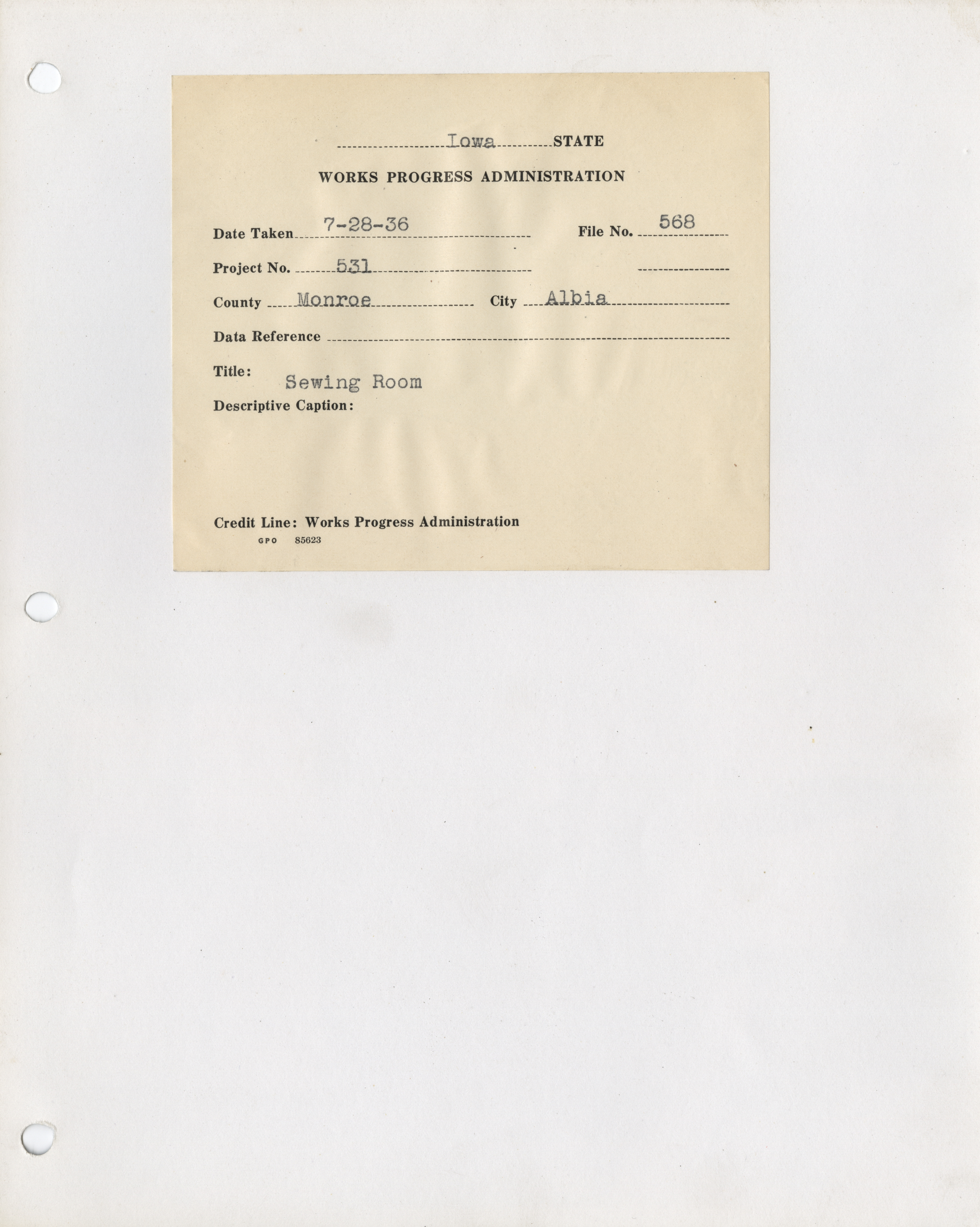 - Sewing Rooms. Monroe County. Albia. Sewing Room. Project 531. (1 b/w photograph), 1936