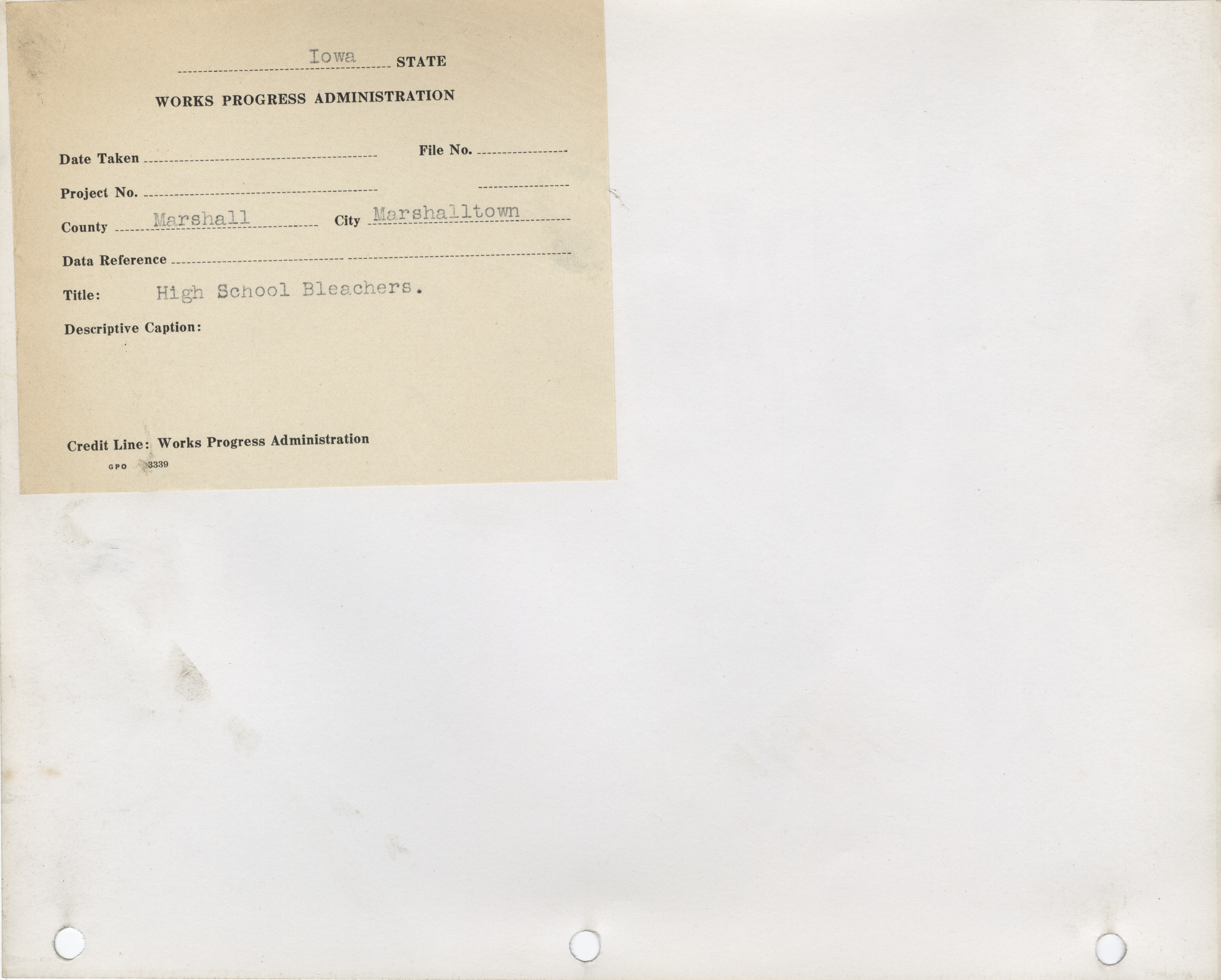 - "Photograph of bleachers at a high school in Marshalltown", Work Projects Administration (Iowa) Photographs, Iowa State University Library Digital Collections