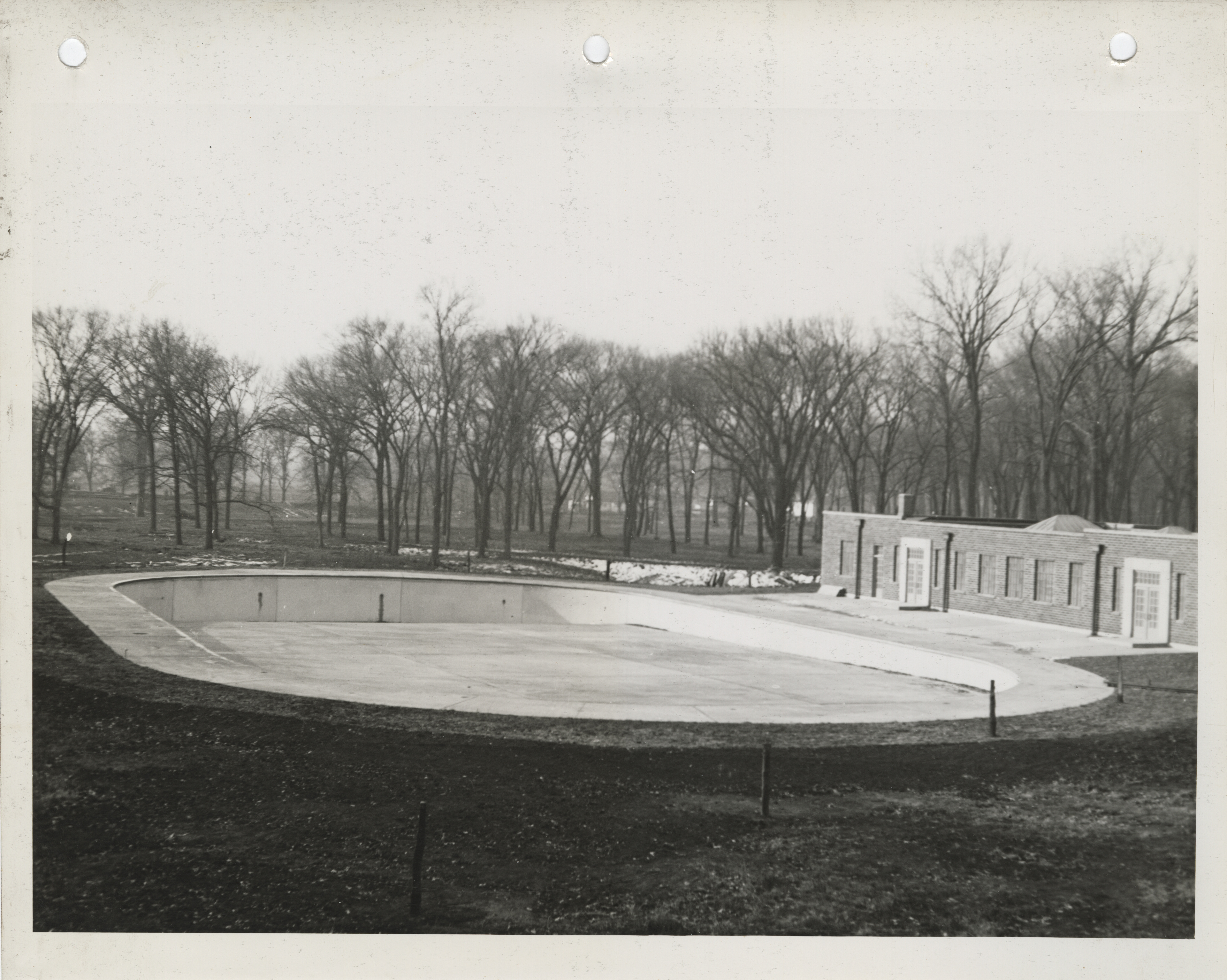 - Photograph of the municipal swimming pool and shelter house at the city park in Marshalltown