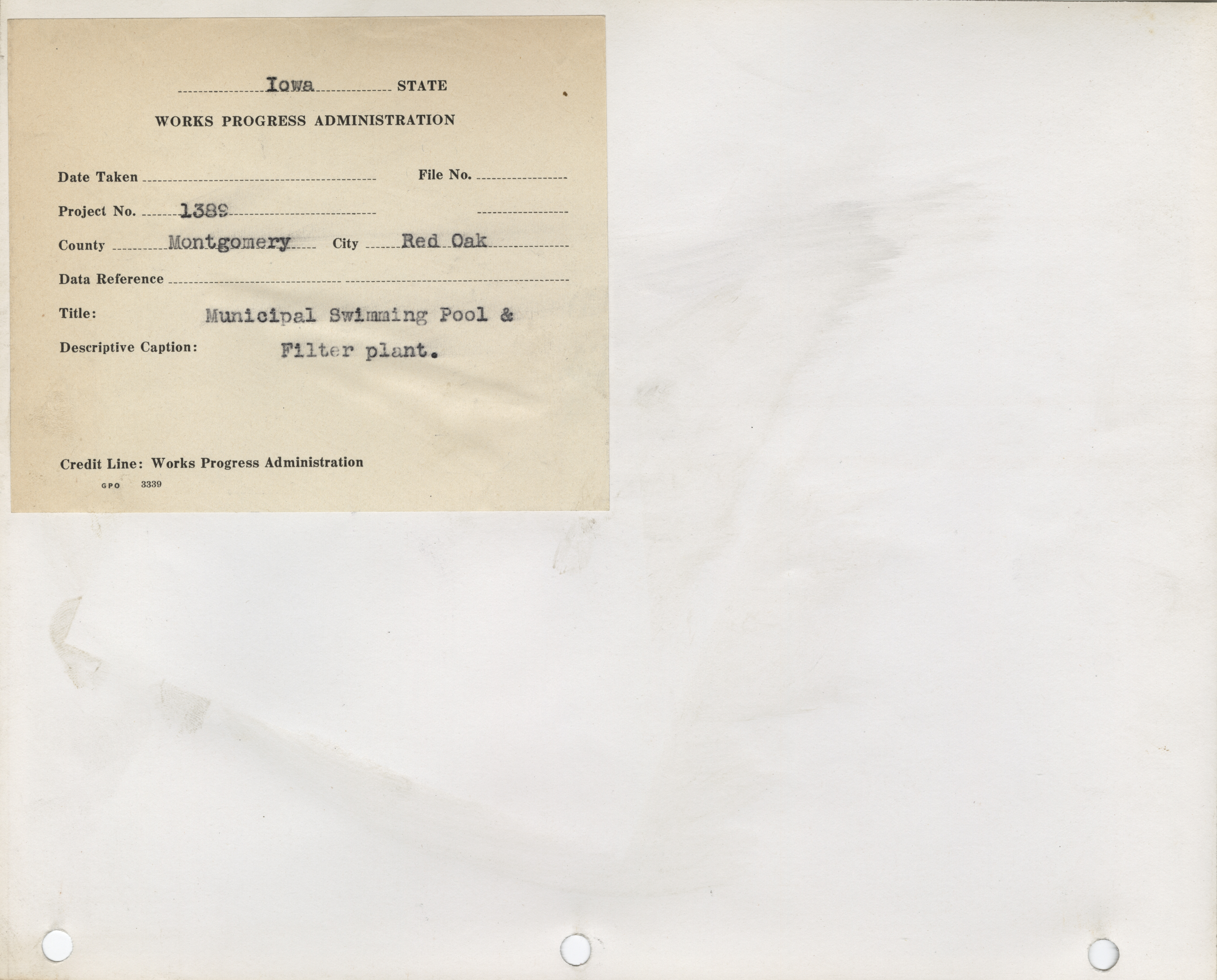 - "Photograph of the municipal swimming pool and filter plant in Red Oak", Work Projects Administration (Iowa) Photographs, Iowa State University Library Digital Collections