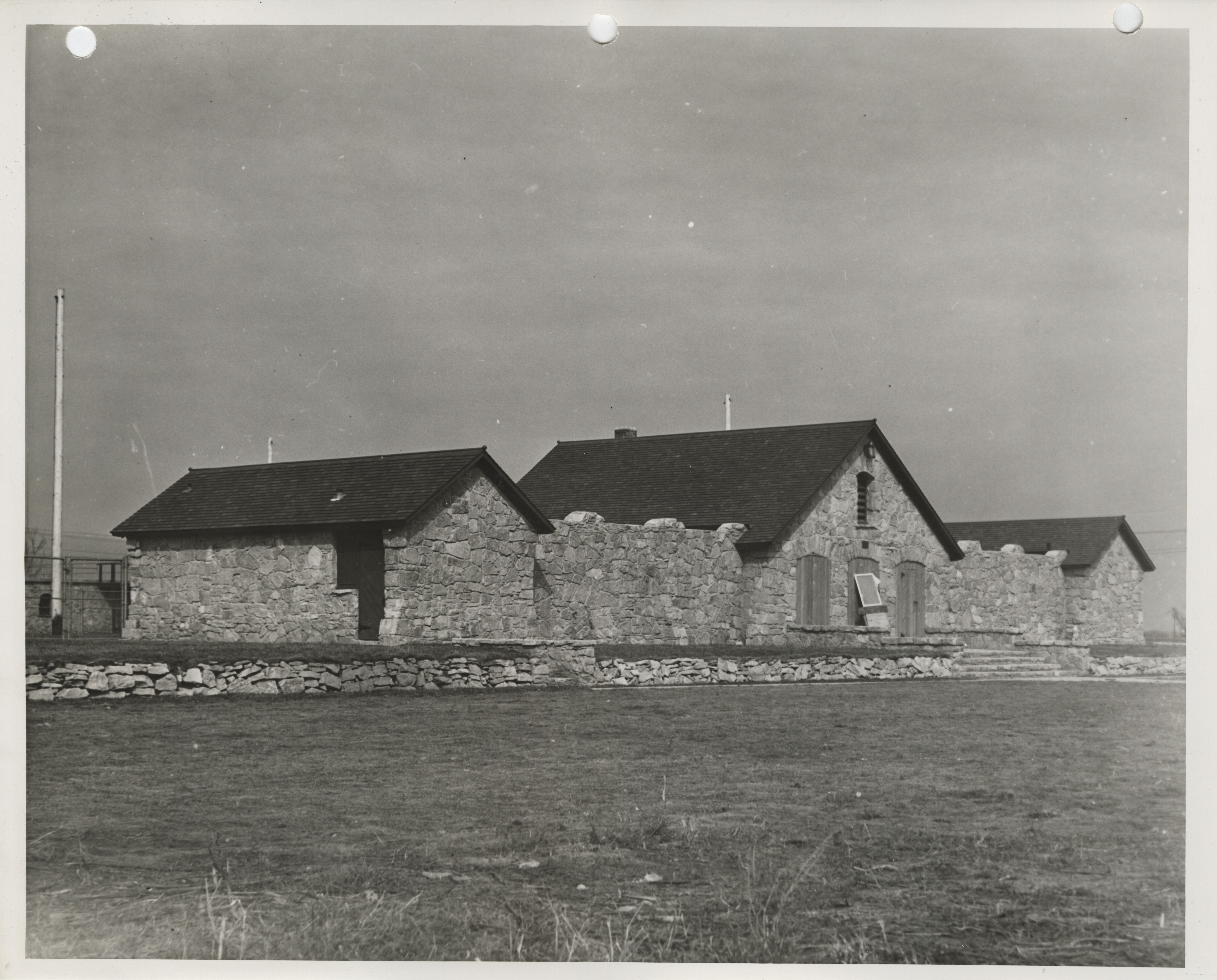 Photograph of the exterior view of the swimming pool and bathhouse in Pocahontas Item Info