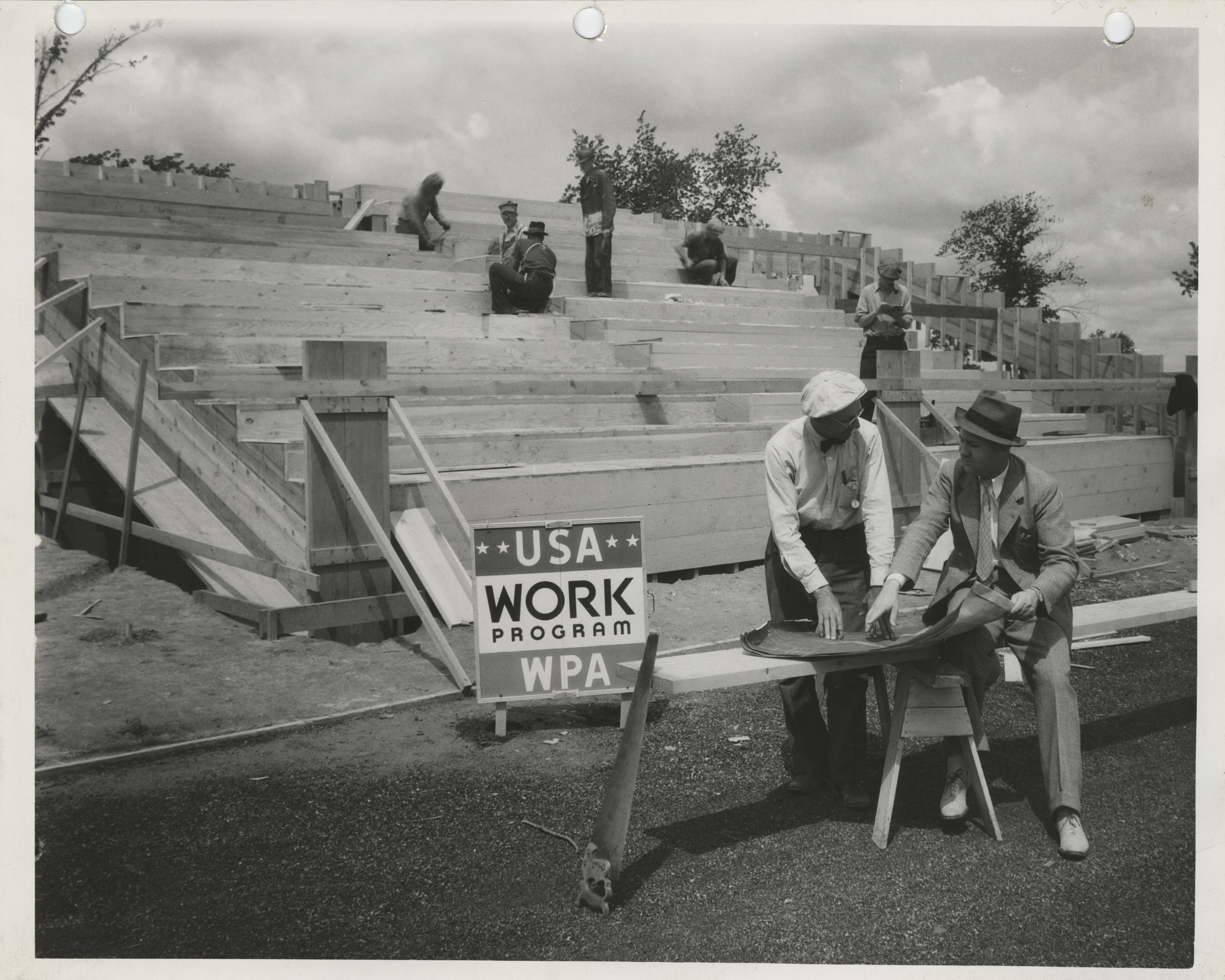 - "Photograph of bleachers under construction at the A.L. High School in Council Bluffs", Work Projects Administration (Iowa) Photographs, Iowa State University Library Digital Collections