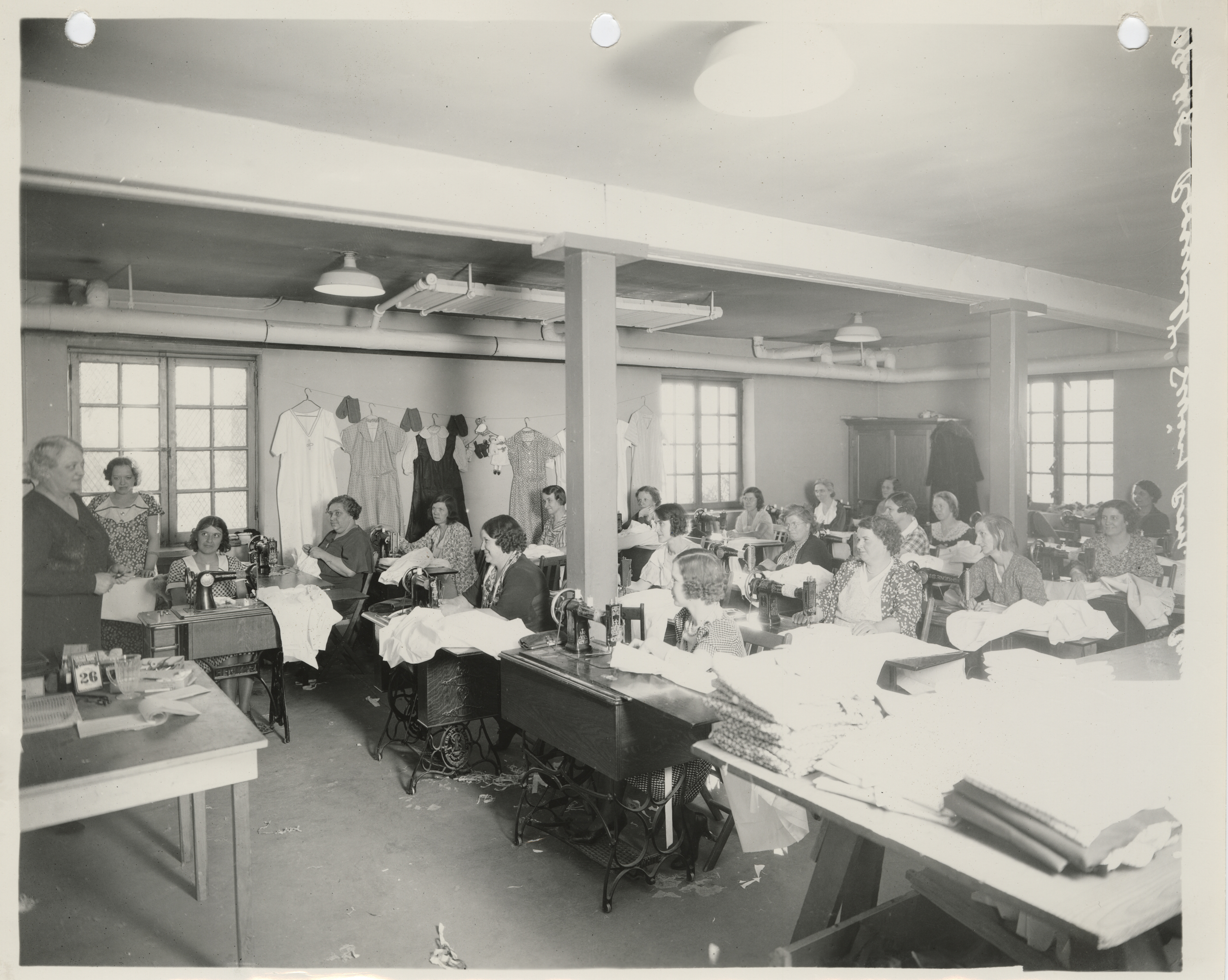 - Sewing Rooms. Pottawattamie County. Council Bluffs. Sewing Room. Project 45. (6 b/w photographs), 1935-1936