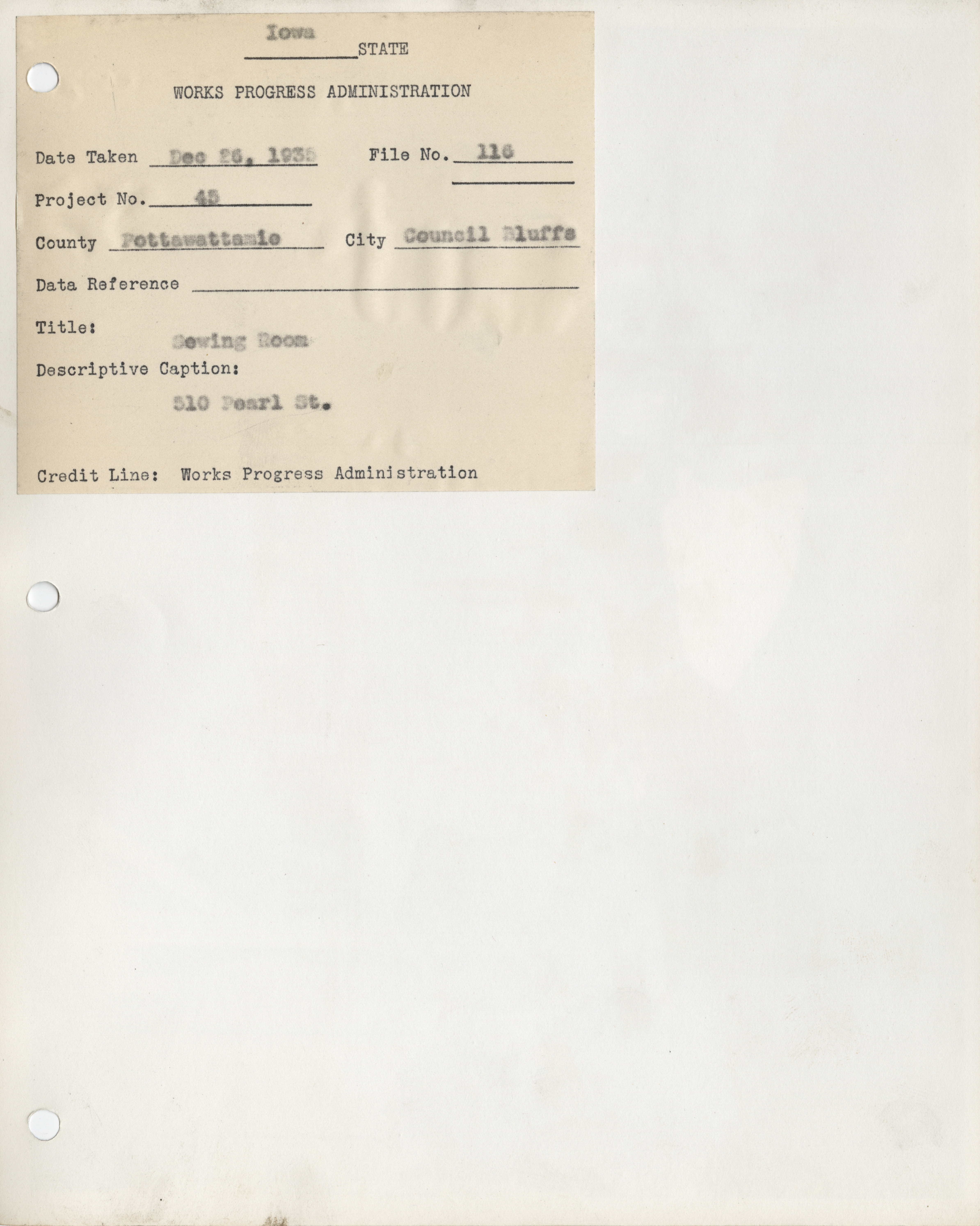 - Sewing Rooms. Pottawattamie County. Council Bluffs. Sewing Room. Project 45. (6 b/w photographs), 1935-1936
