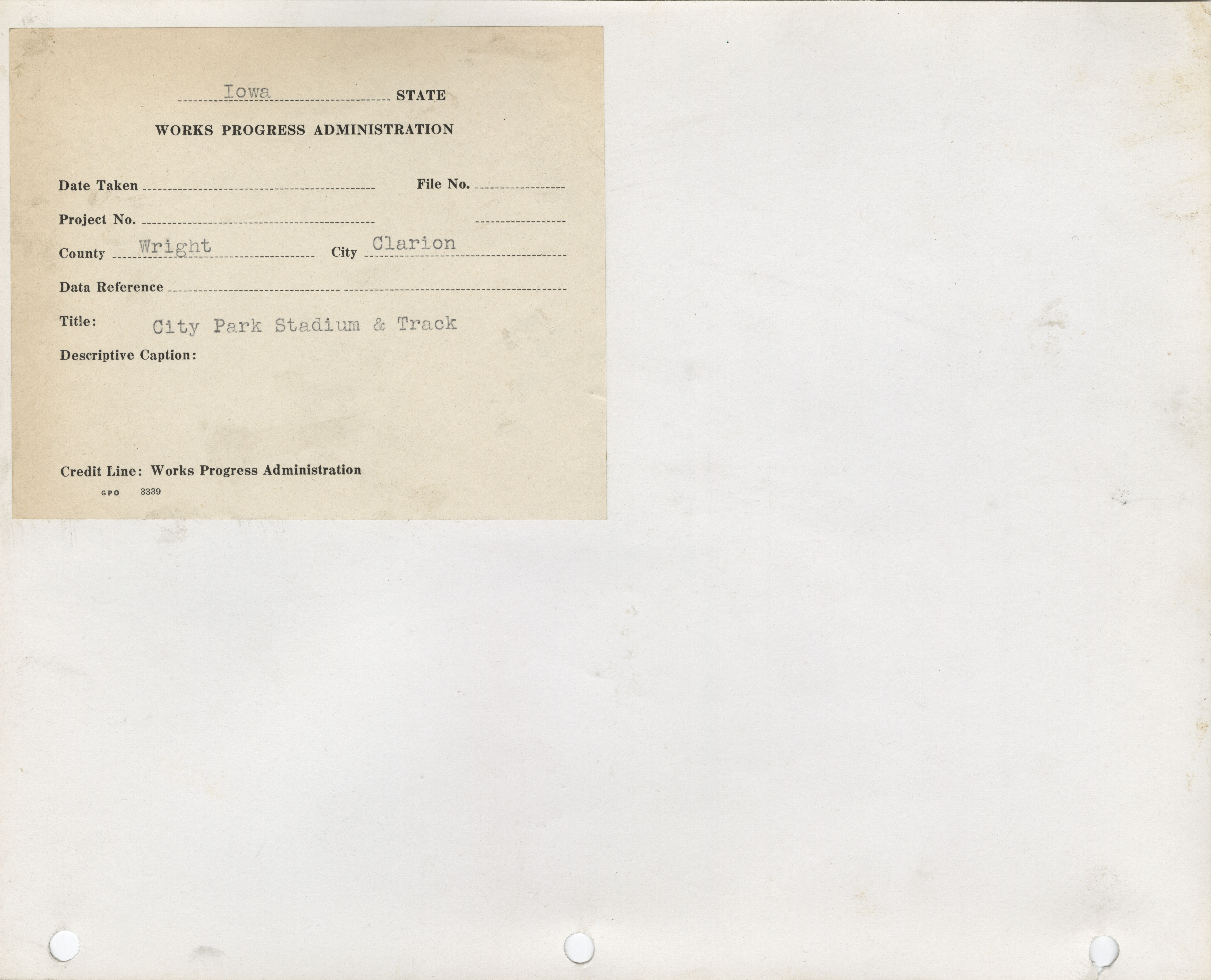 - "Photograph of the city park stadium and track in Clarion", Work Projects Administration (Iowa) Photographs, Iowa State University Library Digital Collections