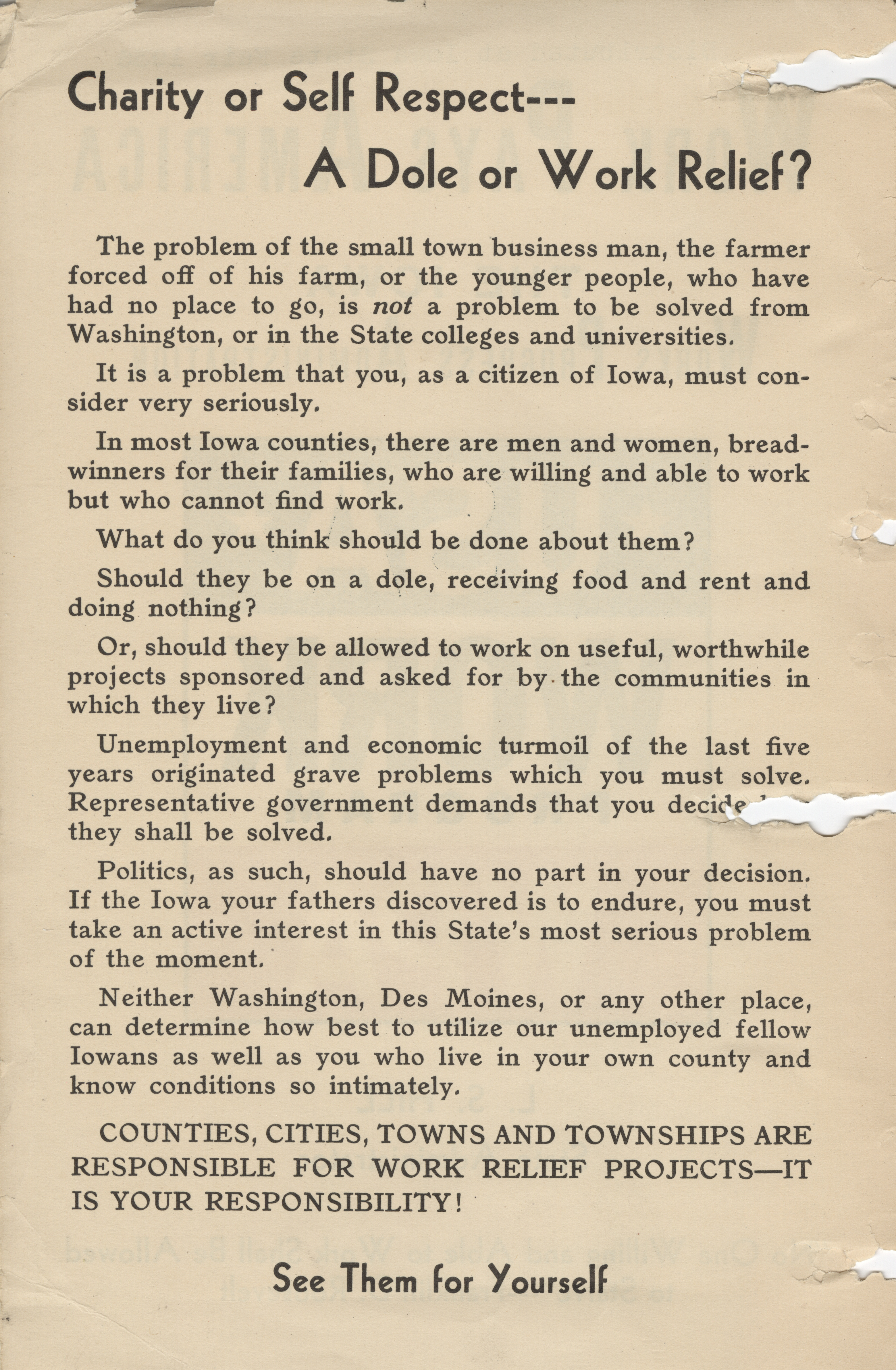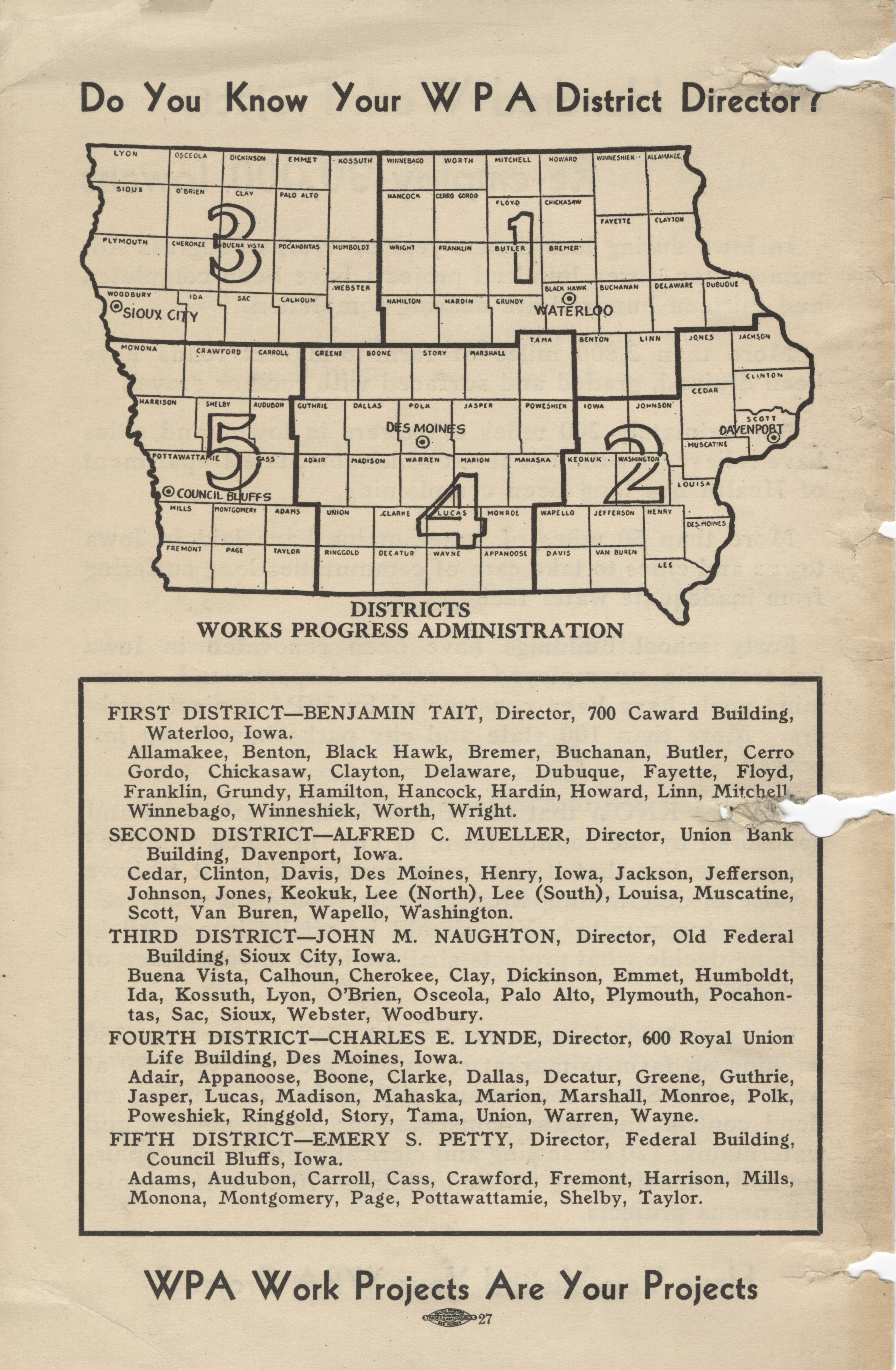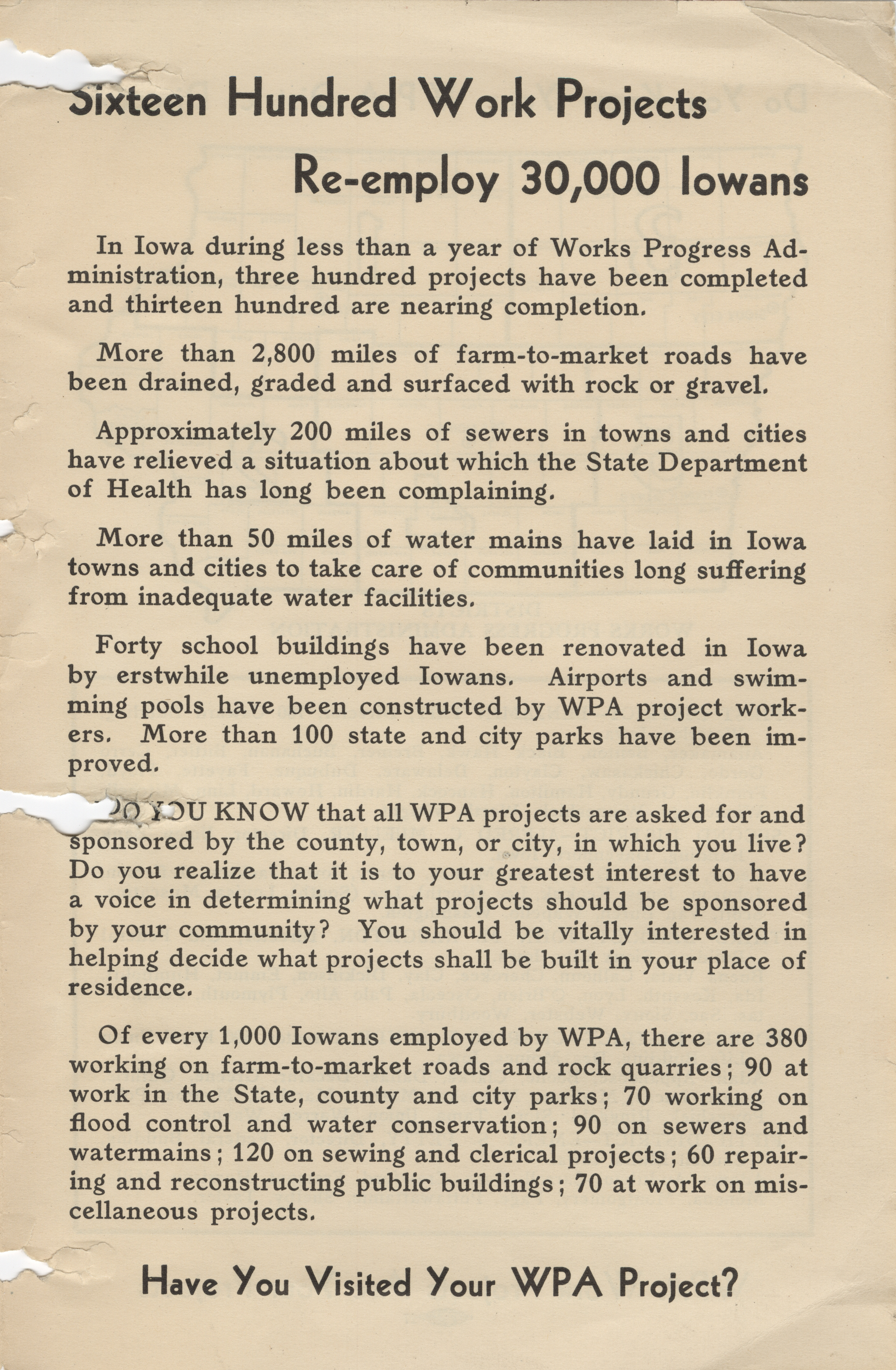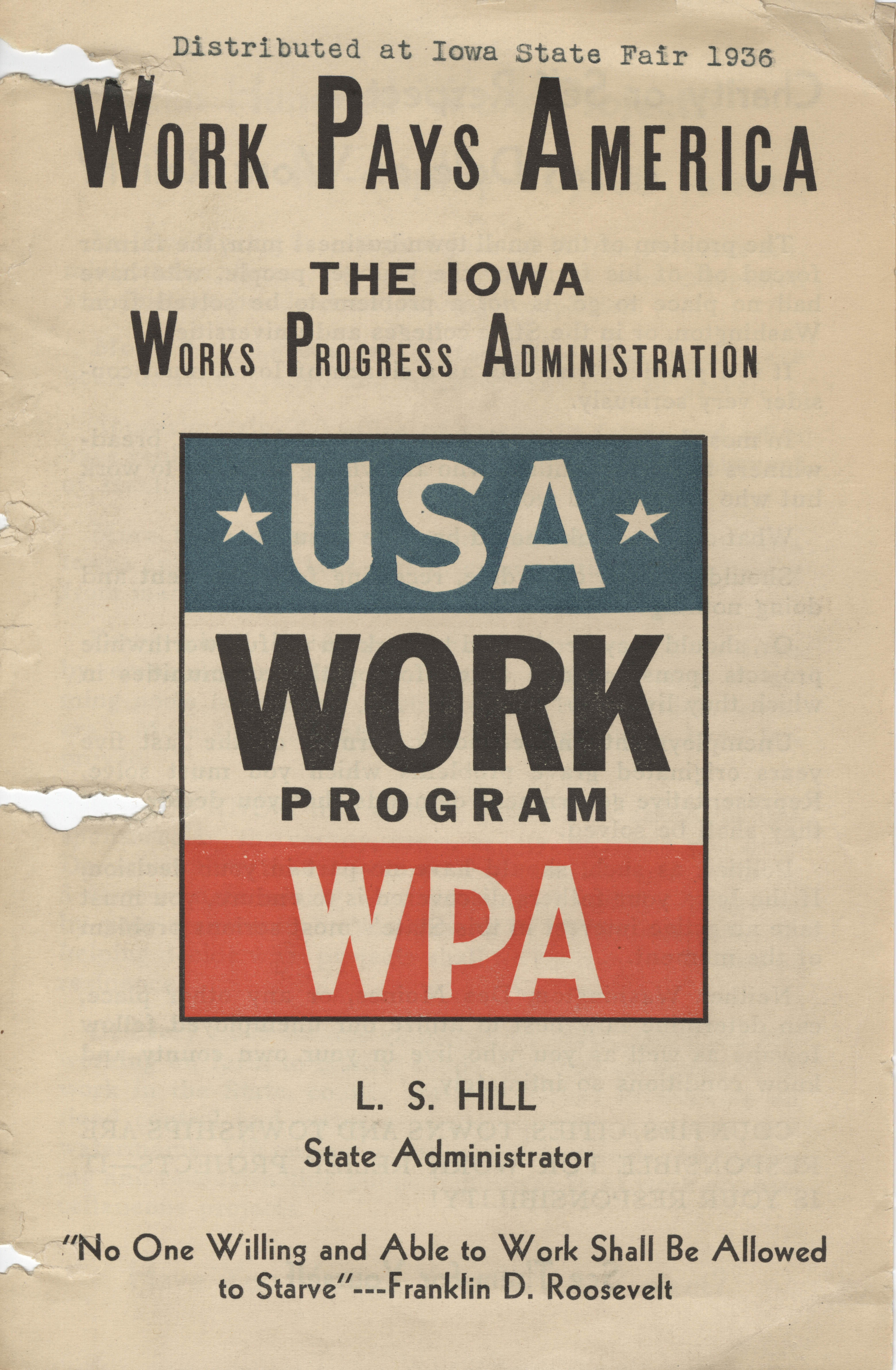 - "WPA brochure distributed at the Iowa State Fair, 1936", Work Projects Administration (Iowa) Photographs, Iowa State University Library Digital Collections